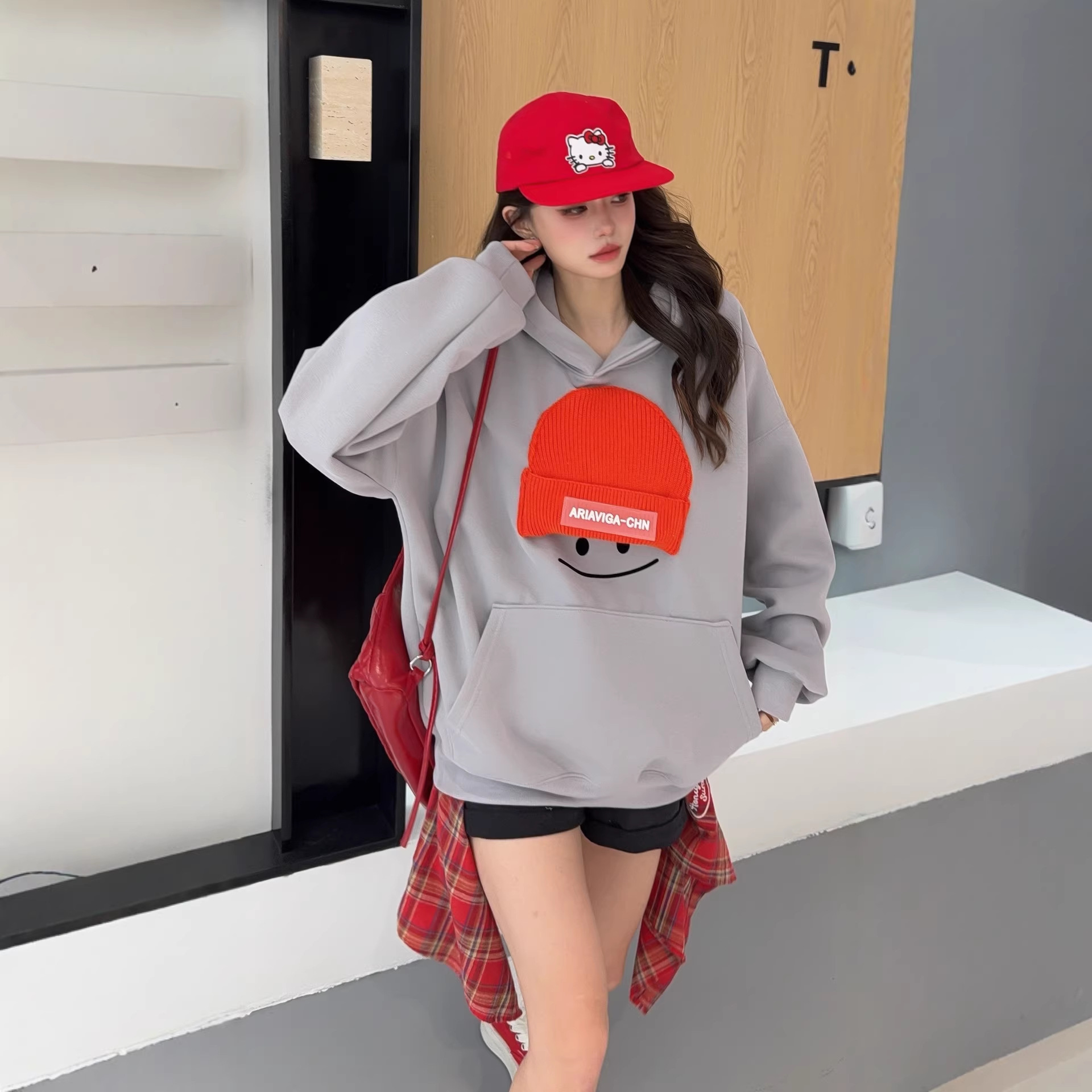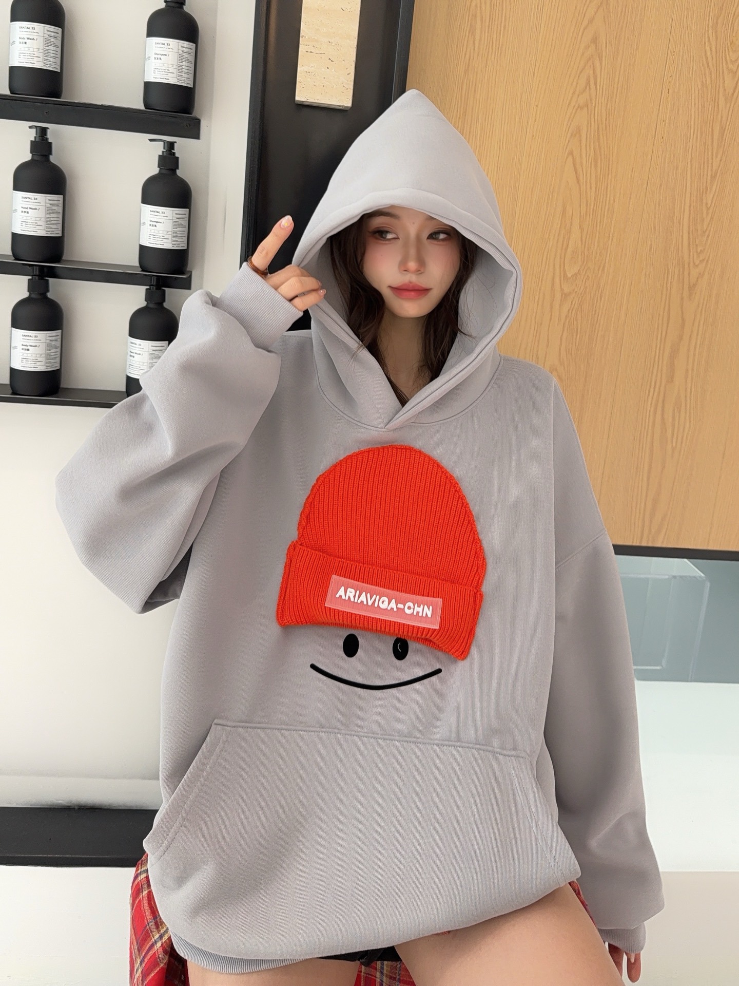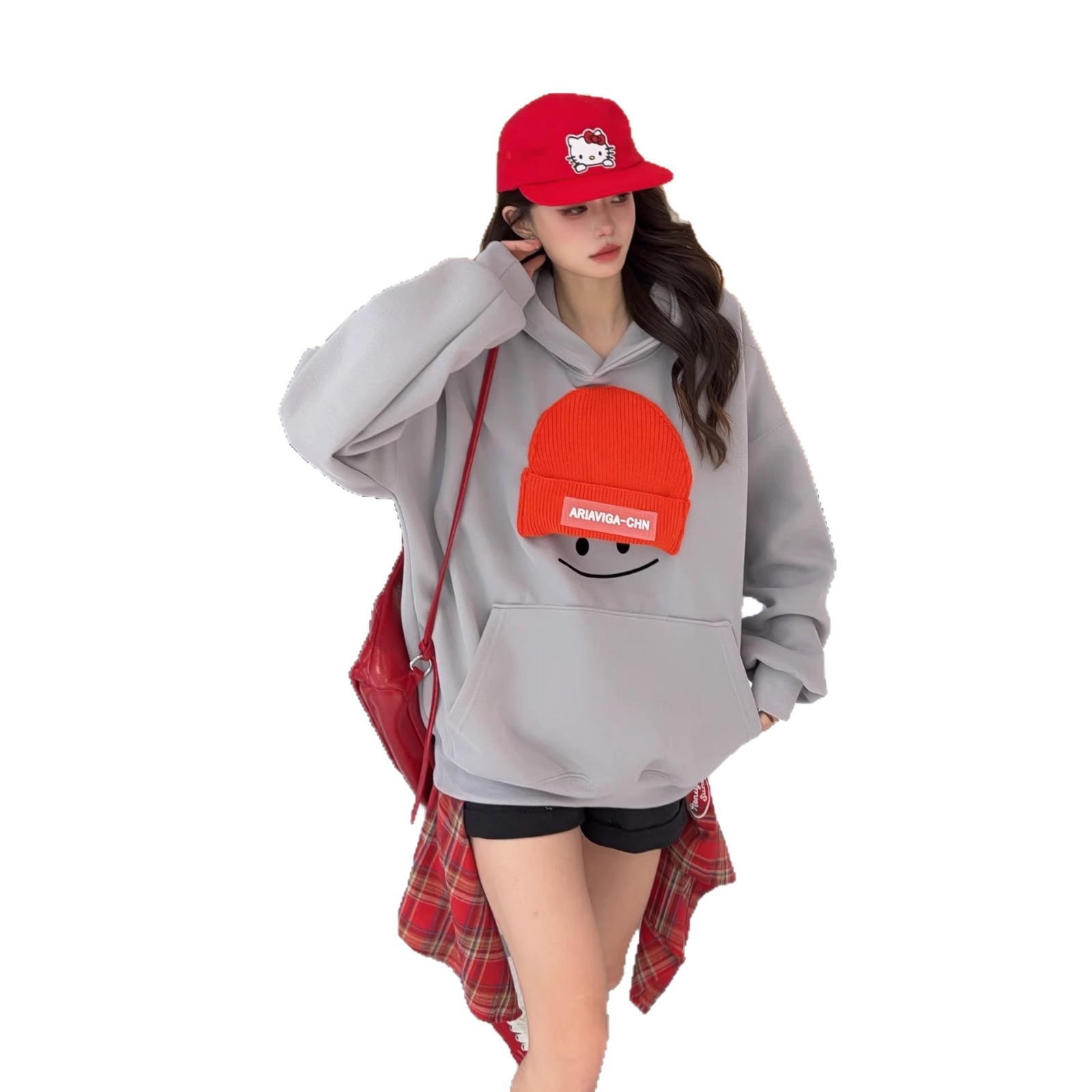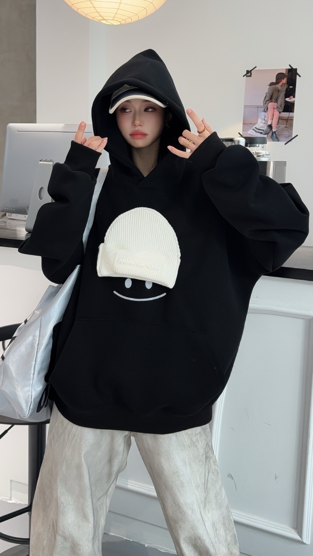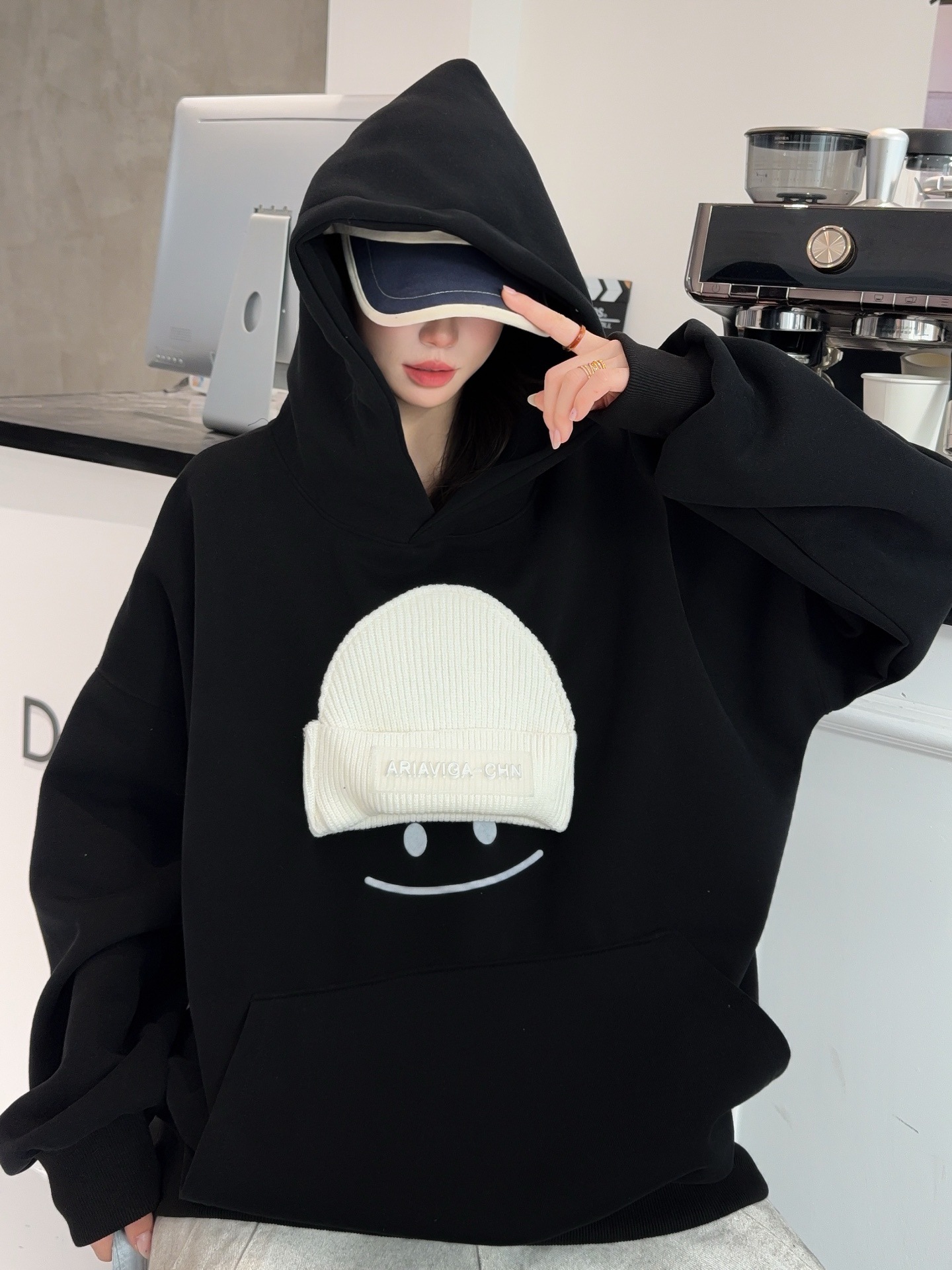 小帽笑脸连帽卫衣女2026新款爆款春季宽松大码上衣时尚洋气外套