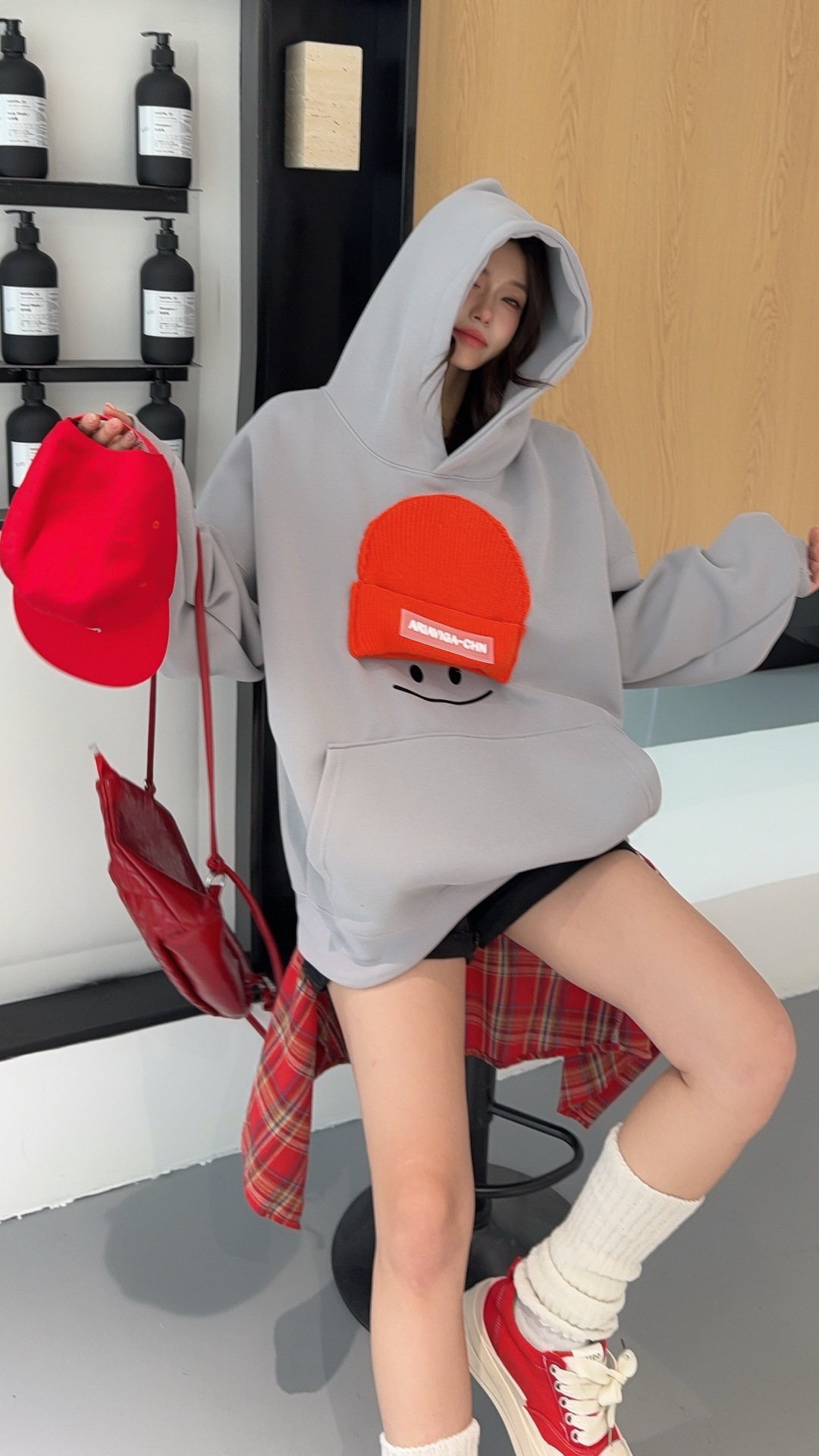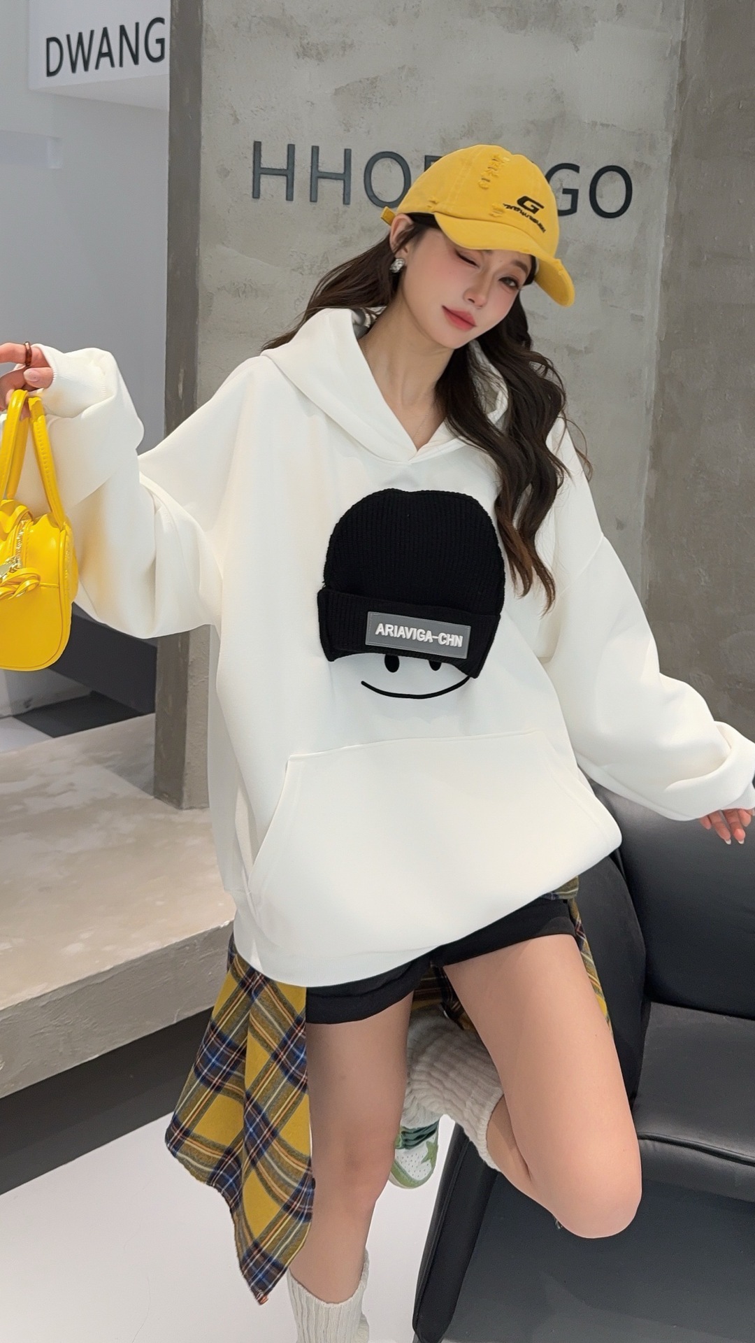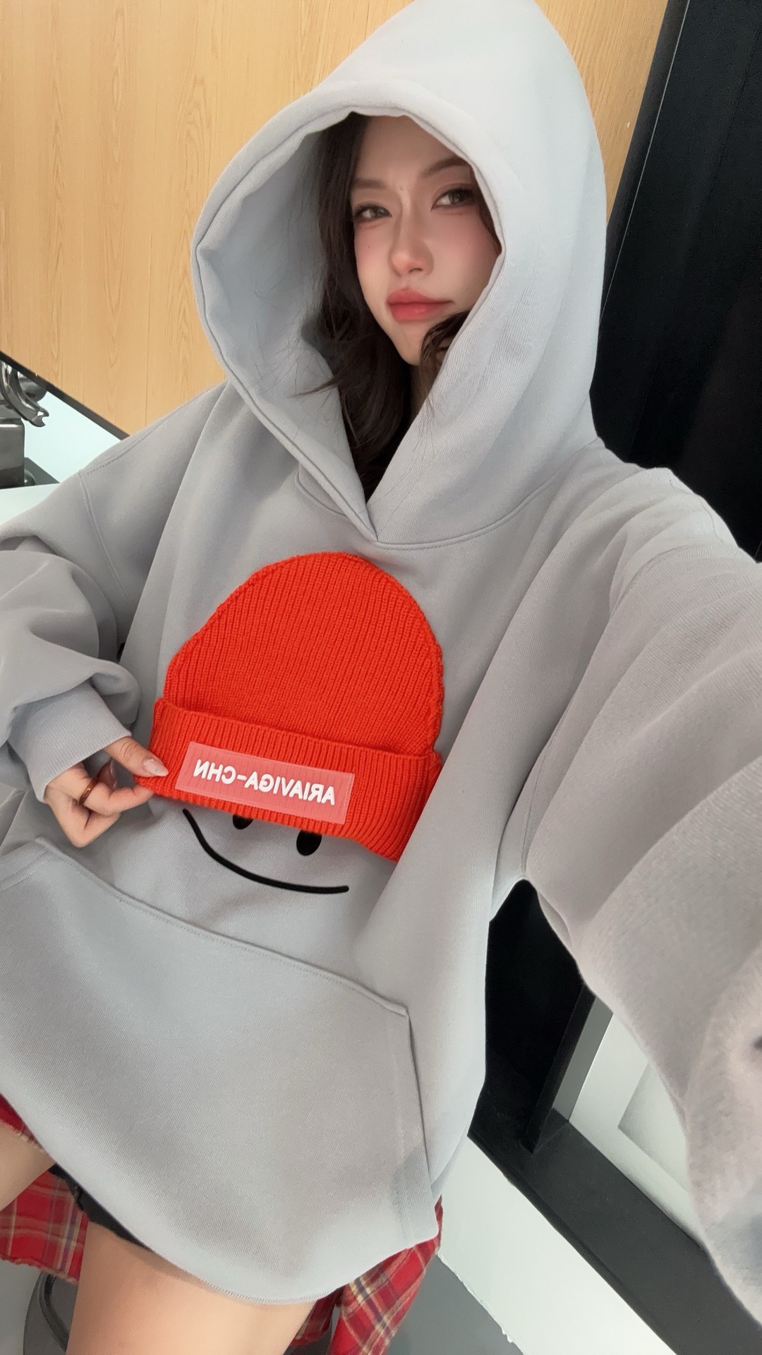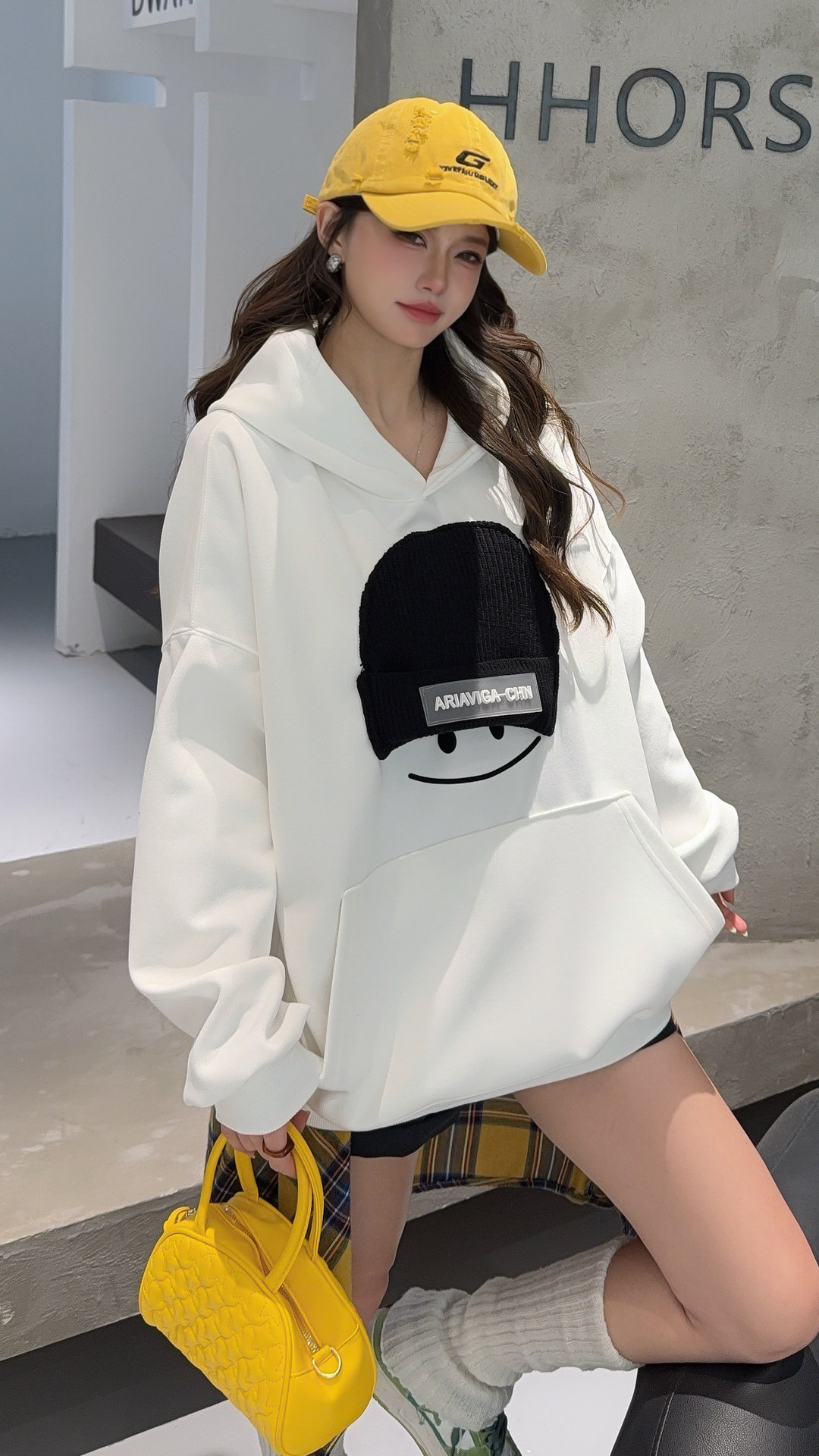 小帽笑脸连帽卫衣女2026新款爆款春季宽松大码上衣时尚洋气外套