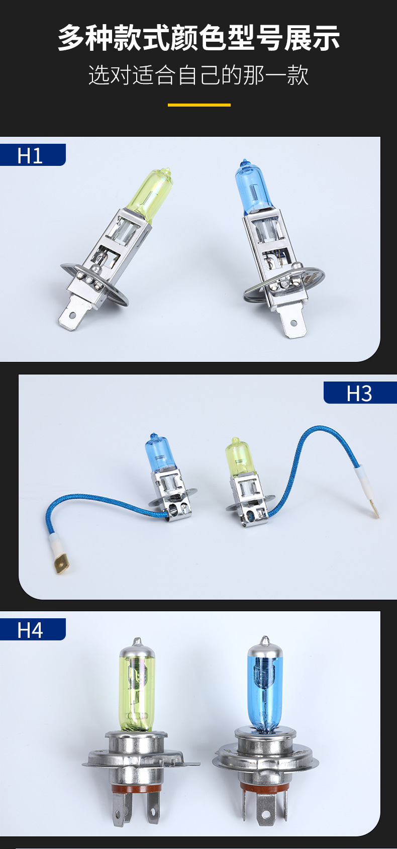 超白光H1 12V55W; 超白光H1 12V100W; 超白光H1 24V100W; 超白光H3 12V55W; 超白光H3 12V100W; 超白光H3 24V100W; 超白光H7 12V55W; 超白光H7 12V100W; 超白光H7 24V100W; 超白光H4 12V60/55W; 超白光H4 12V100/90W; 超白光H4 24V100/90W; 超白光HB3 9005 12V65W; 超白光HB4 9006 12V55W; 超白光H8 12V35W; 超白光H9 12V65W; 超白光H11 12V55W; 超白光9012 12V55W; 超白光880 12V27W; 超白光881 12V27W; 黄金光H1 12V55W; 黄金光H1 12V100W; 黄金光H1 24V100W; 黄金光H3 12V55W; 黄金光H3 12V100W; 黄金光H3 24V100W; 黄金光H7 12V55W; 黄金光H7 12V100W; 黄金光H7 24V100W; 黄金光H4 12V60/55W; 黄金光H4 12V100/90W; 黄金光H4 24V100/90W; 黄金光HB3 9005 12V65W; 黄金光HB4 9006 12V55W; 黄金光H8 12V35W; 黄金光H9 12V65W; 黄金光H11 12V55W; 黄金光9012 12V55W; 黄金光880 12V27W; 黄金光881 12V27W