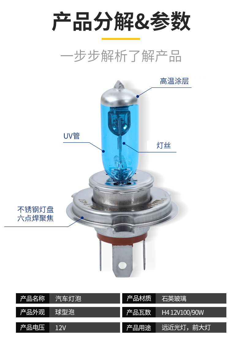 汽车照明灯泡 前大灯卤素灯防雾灯泡 汽车灯泡超白光黄金光H1H4H7