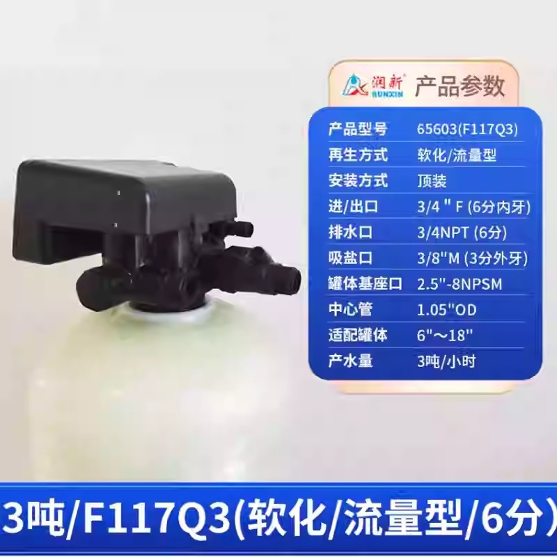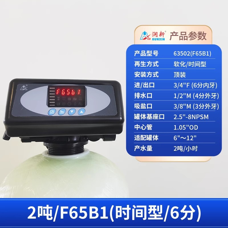 F63C1(63504)4吨时间型软化阀; F63C3(63604)4吨流量型软化阀; F63P1(64504)4吨时间型软化阀; F63P3(64604)4吨流量型软化阀; F65B1(63502)2吨时间型软化阀; F65B3(63602)2吨流量型软化阀; F65P1(64502)2吨时间型软化阀; F65P3(64602)2吨流量型软化阀; F69A3(73502)2吨流量型软化阀; F117Q1(65503)3吨时间型软化阀; F117Q3 (65603)3吨流量型软化阀; F116Q1 (65505)5吨时间型软化阀; F116Q3 (65605) 5吨流量型软化阀; F92A1-LED(73505)5吨时间型软化阀; F133A1(63508)8吨时间型软化阀; F74A1(63510)10吨时间型软化阀; F74B1(63510B)10吨时间型软化阀