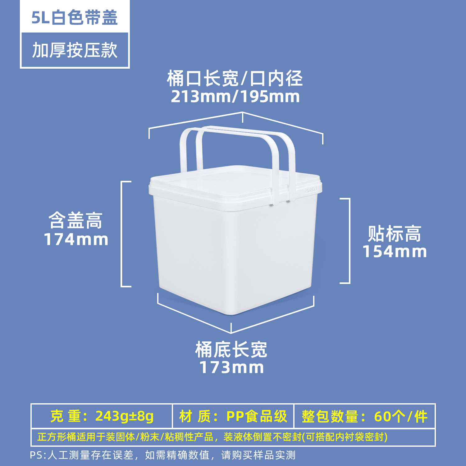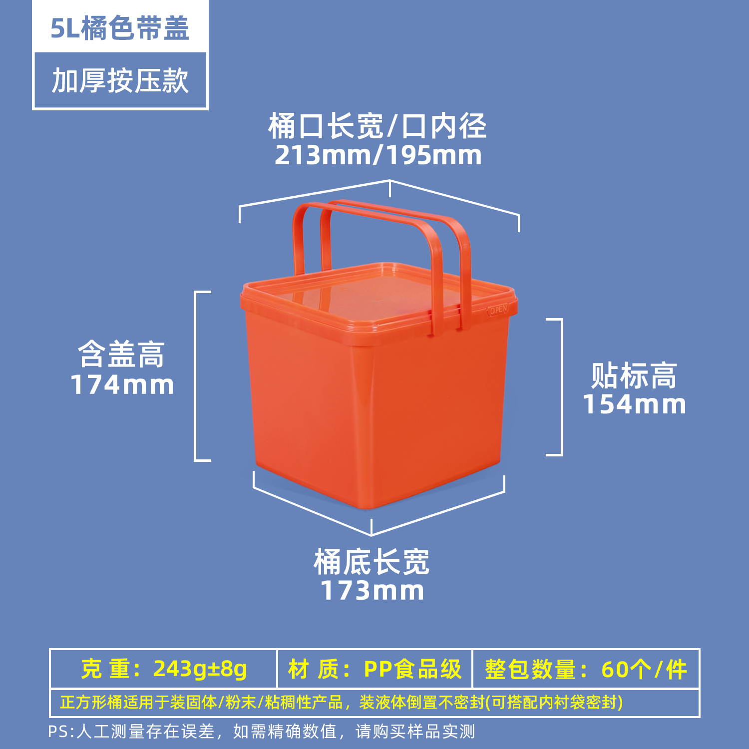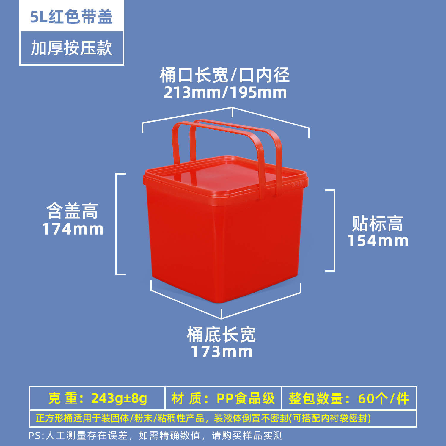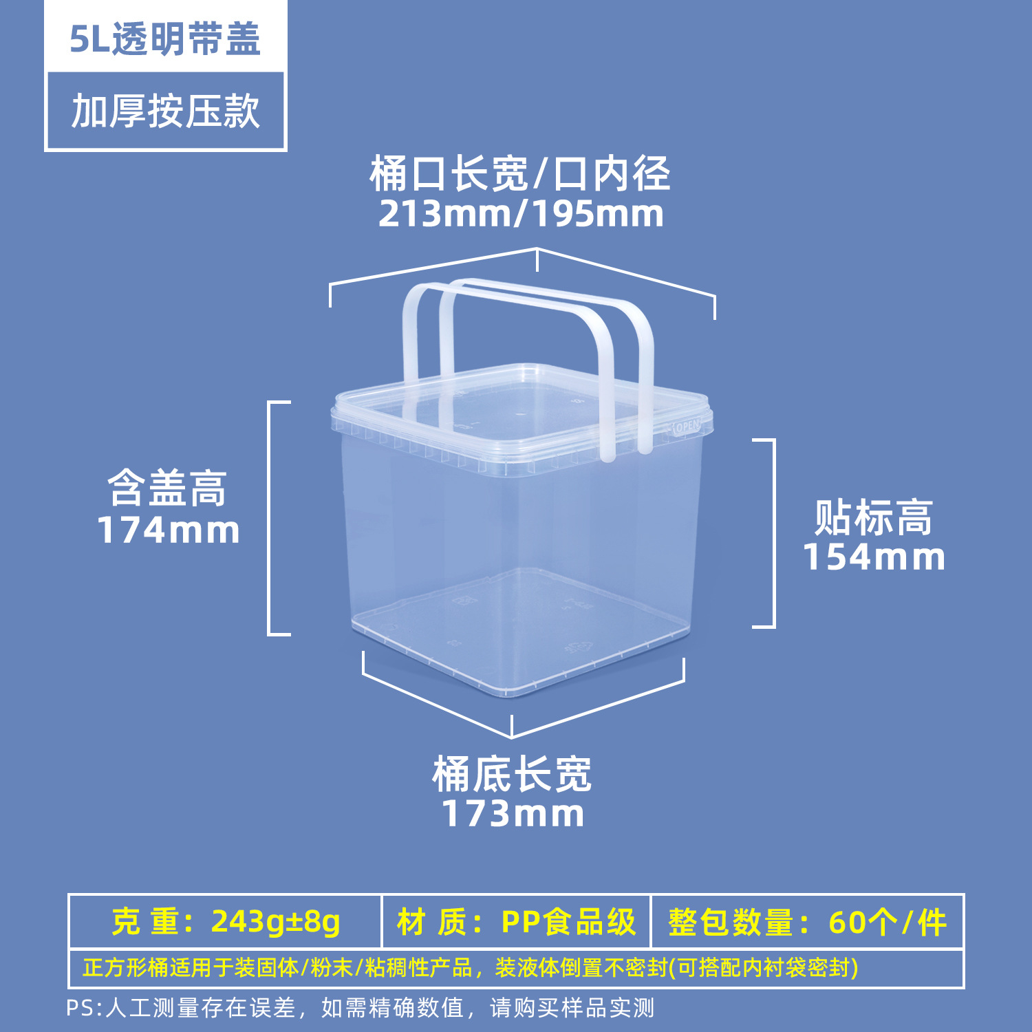 Пищевой пластиковый контейнер для маринада 0,3-5 л, герметичная упаковка для соуса, прозрачная упаковка для еды на вынос, пластиковая бочка.