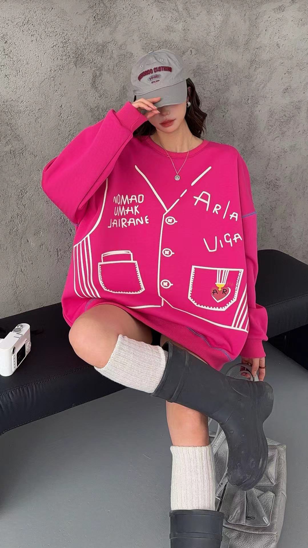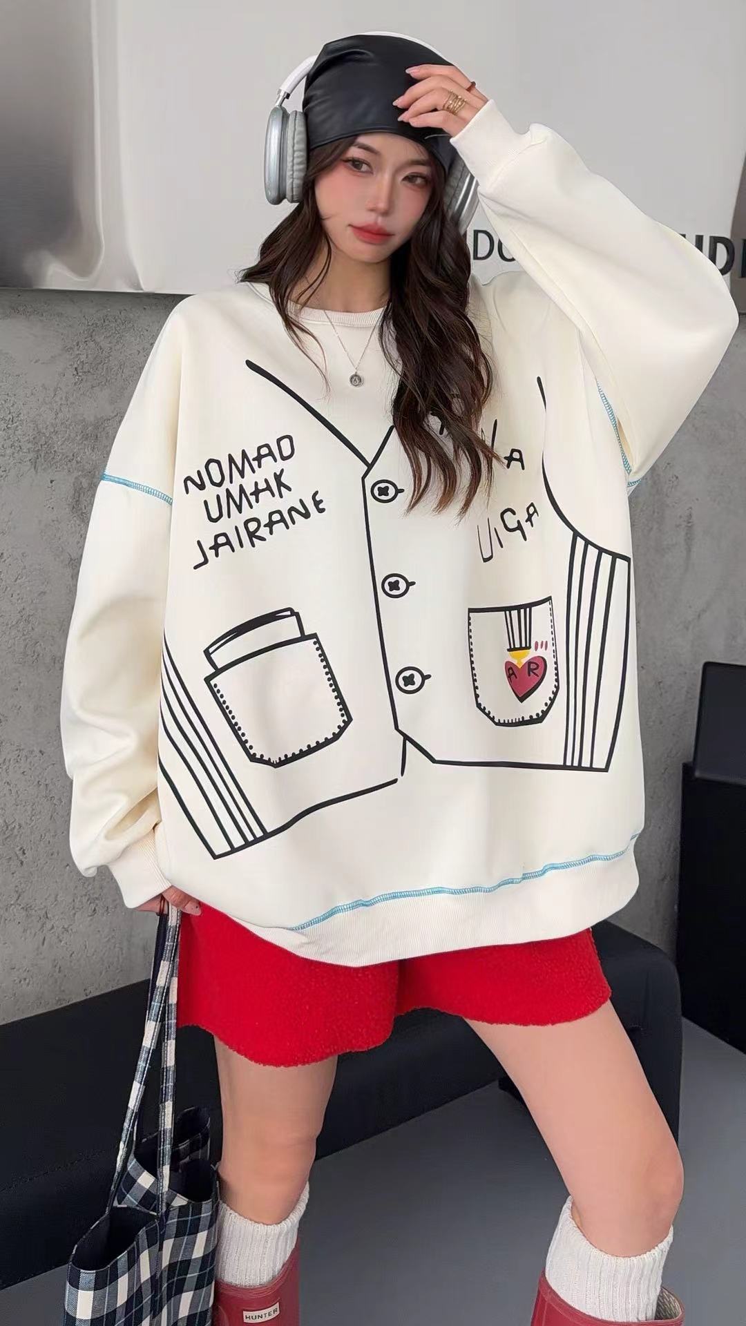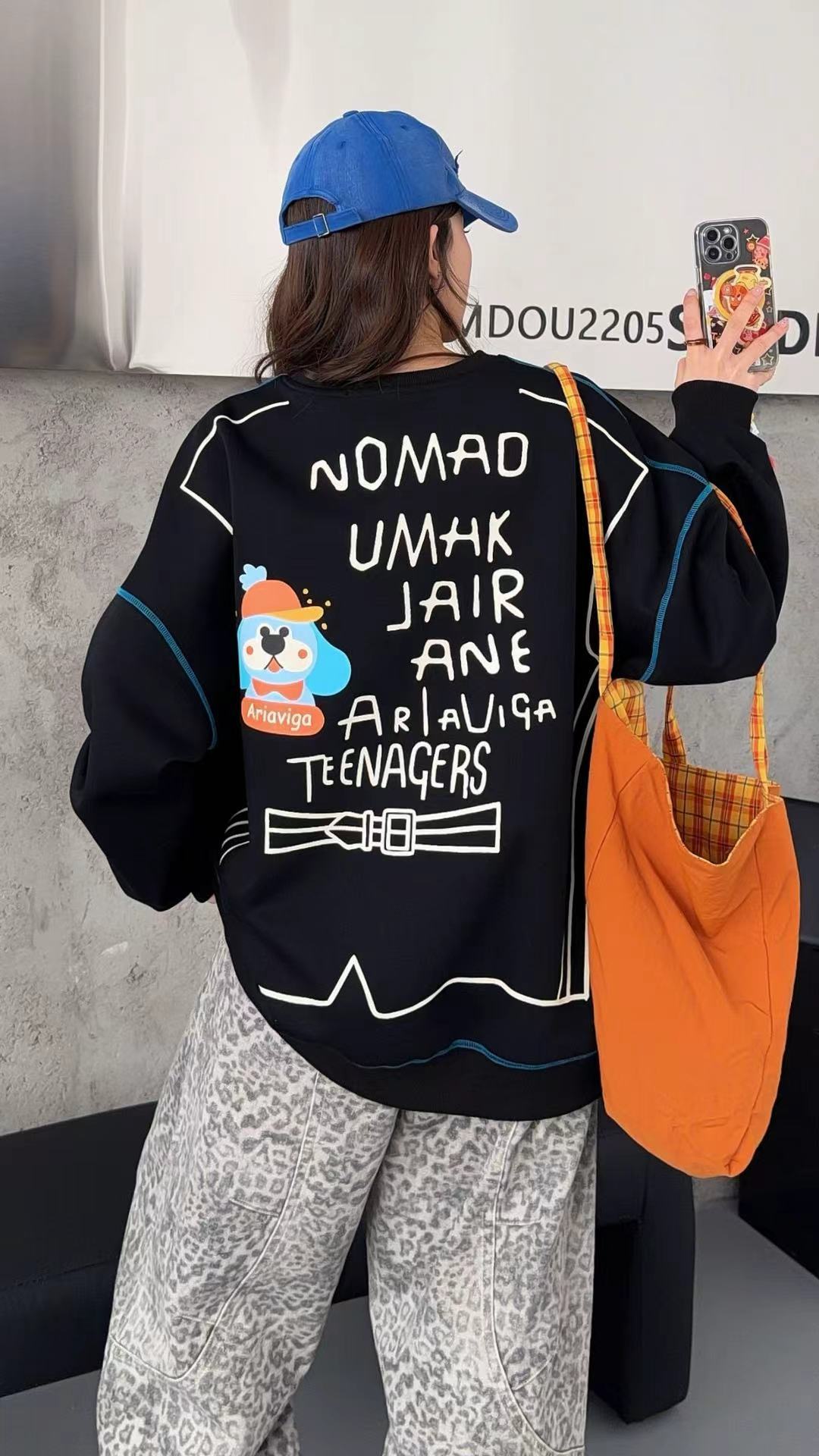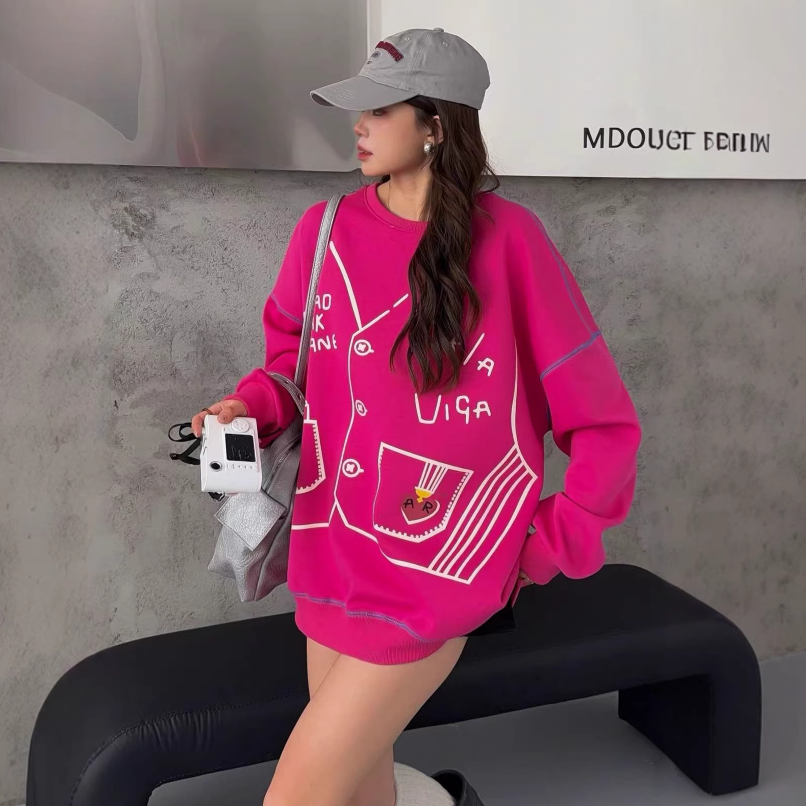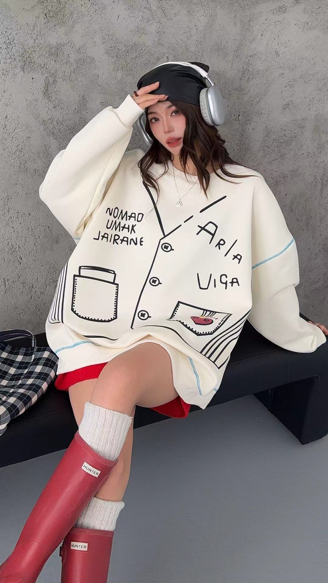 欧货大码涂鸦时尚洋气设计感慵懒街头上衣宽松春季新款百搭卫衣女