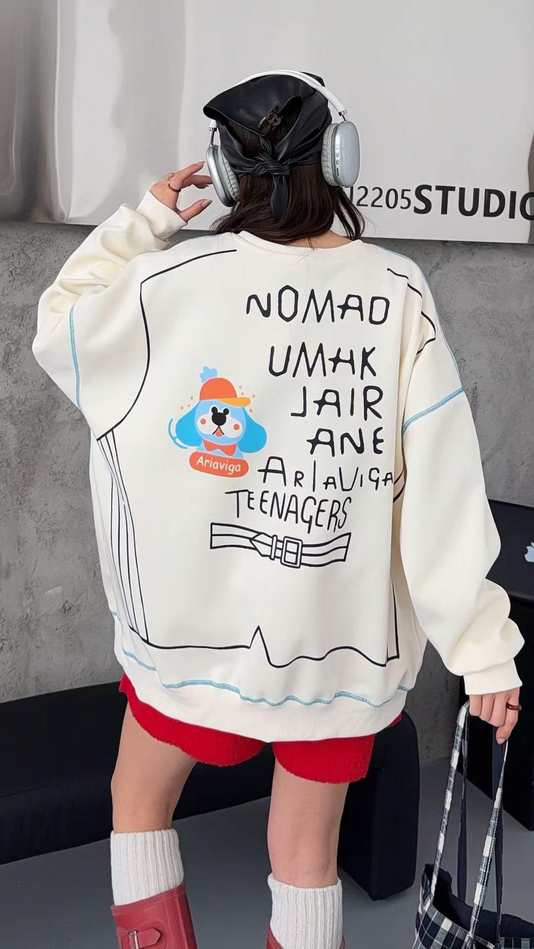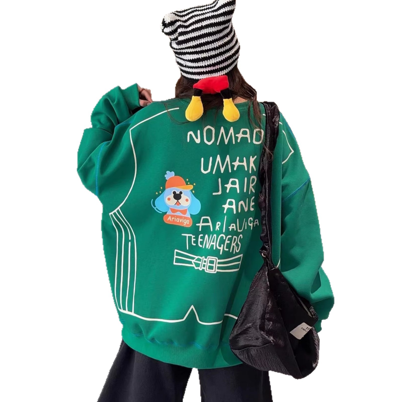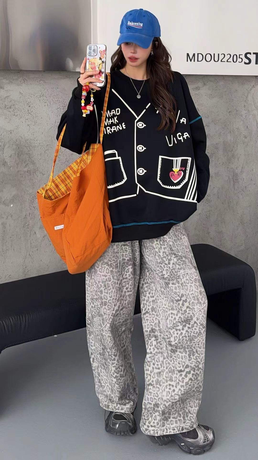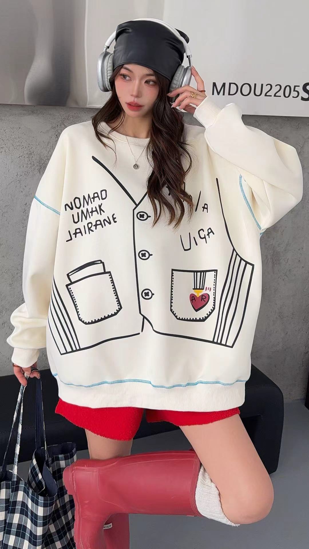 欧货大码涂鸦时尚洋气设计感慵懒街头上衣宽松春季新款百搭卫衣女