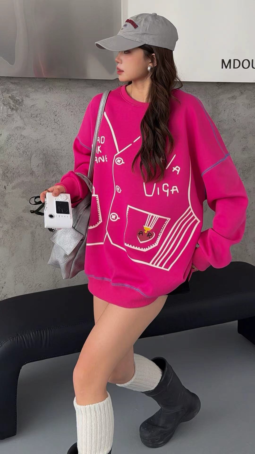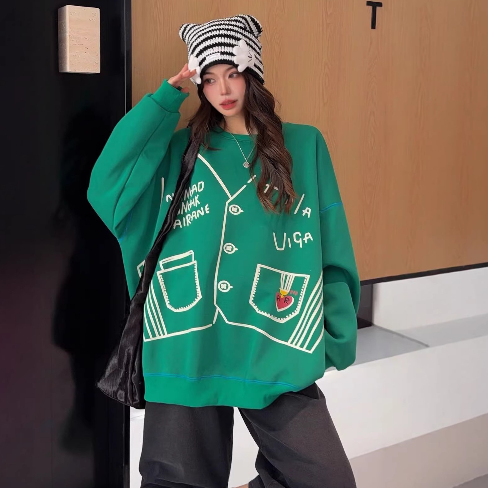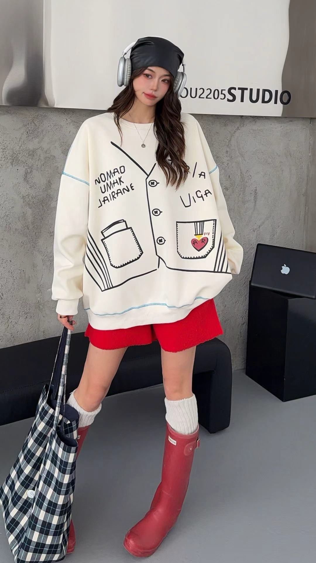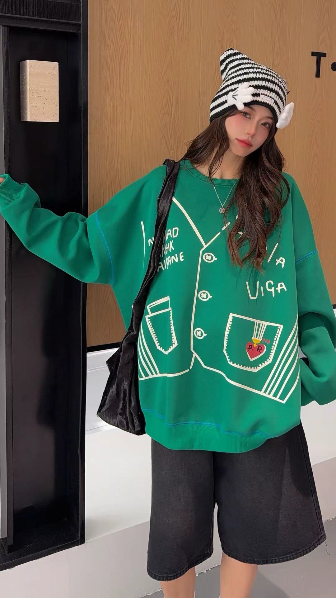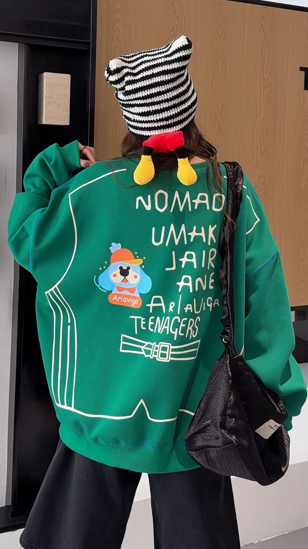 欧货大码涂鸦时尚洋气设计感慵懒街头上衣宽松春季新款百搭卫衣女