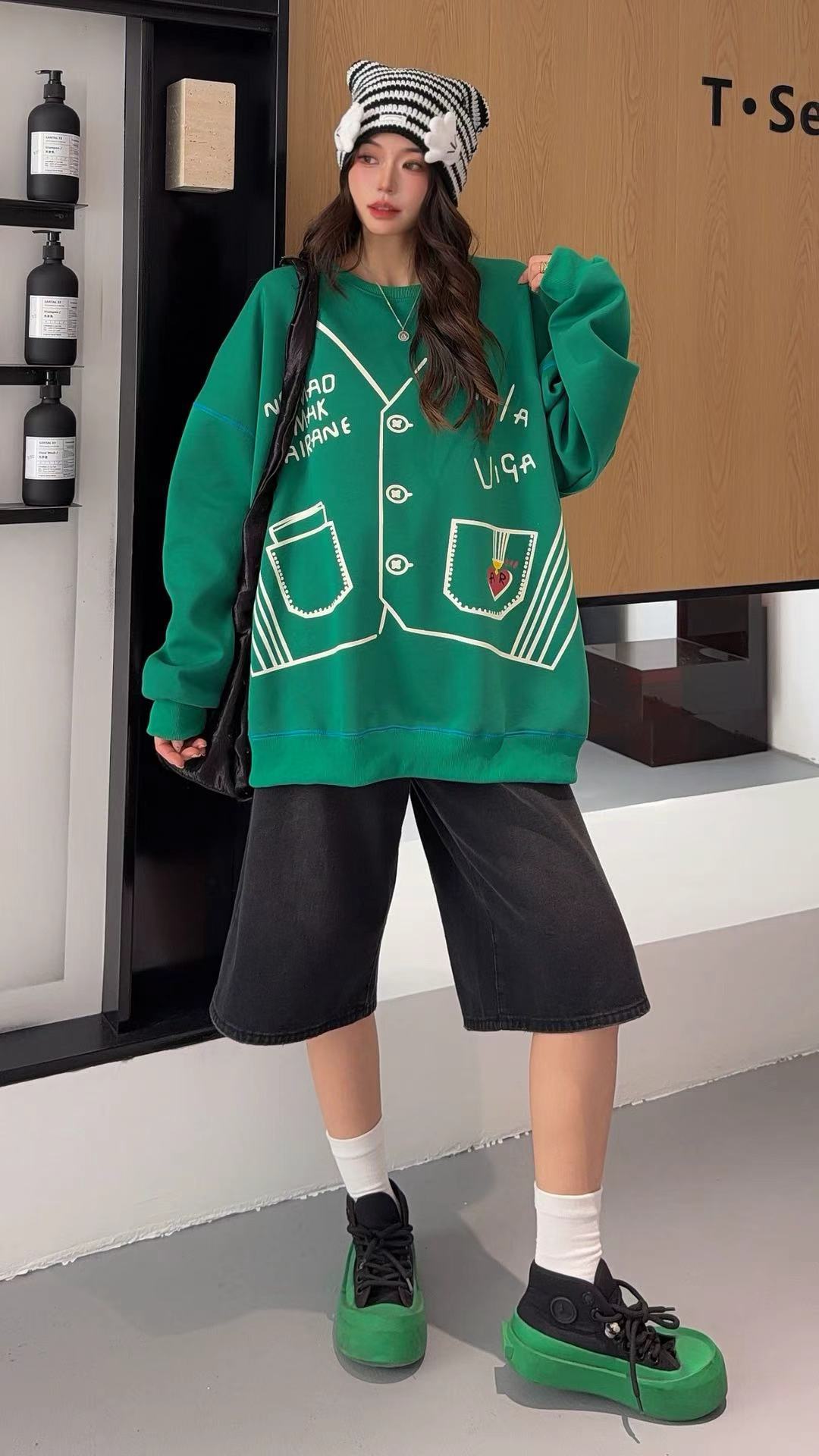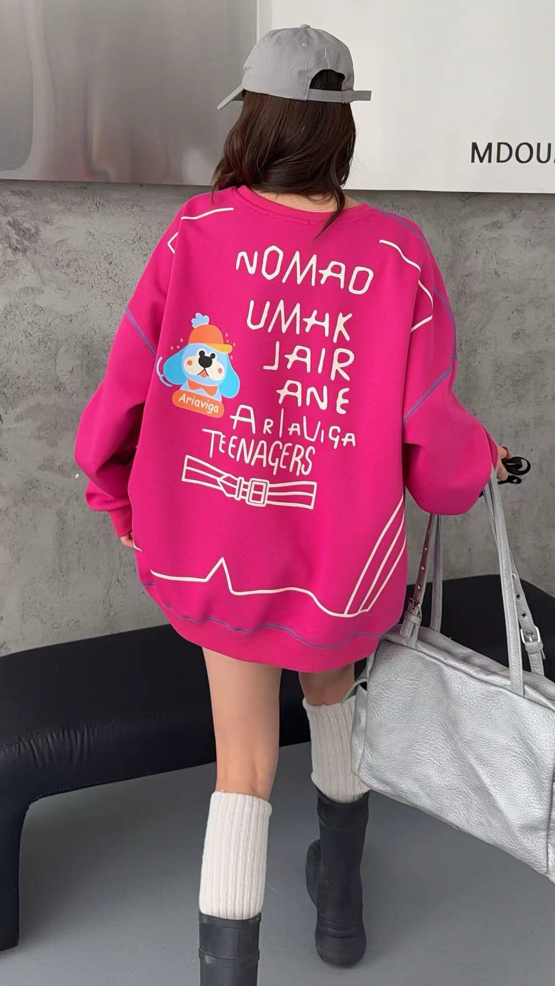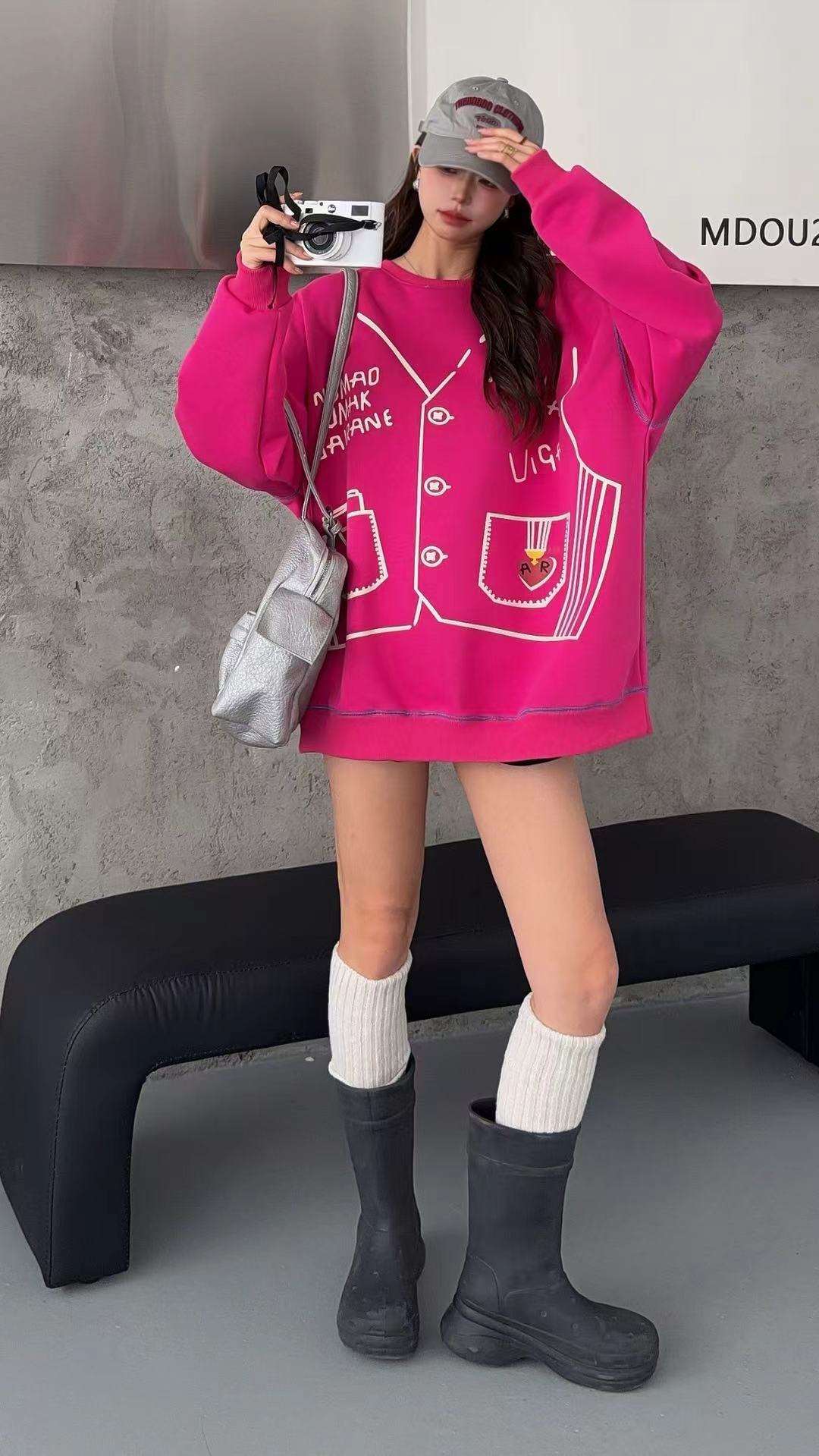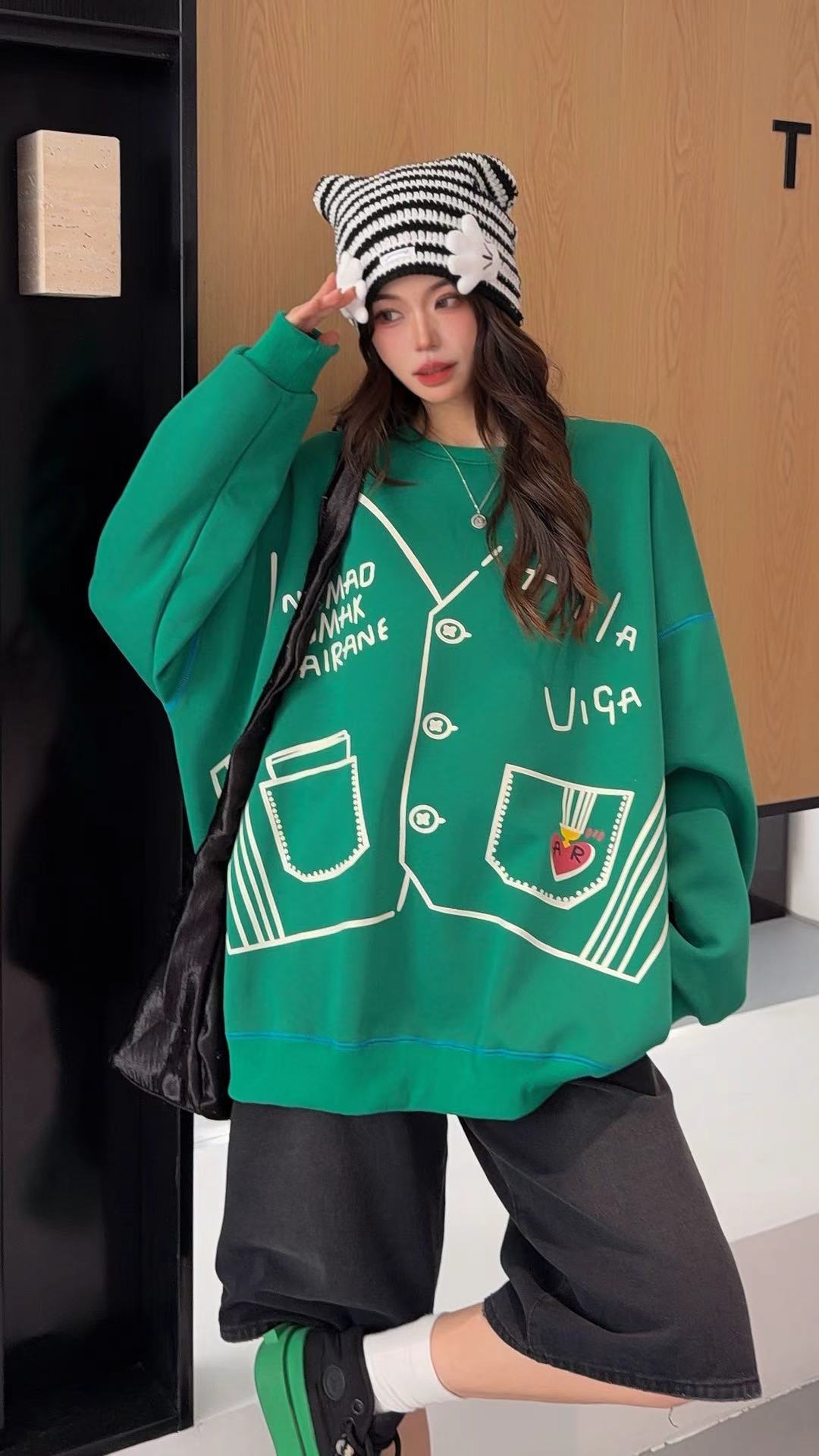 欧货大码涂鸦时尚洋气设计感慵懒街头上衣宽松春季新款百搭卫衣女