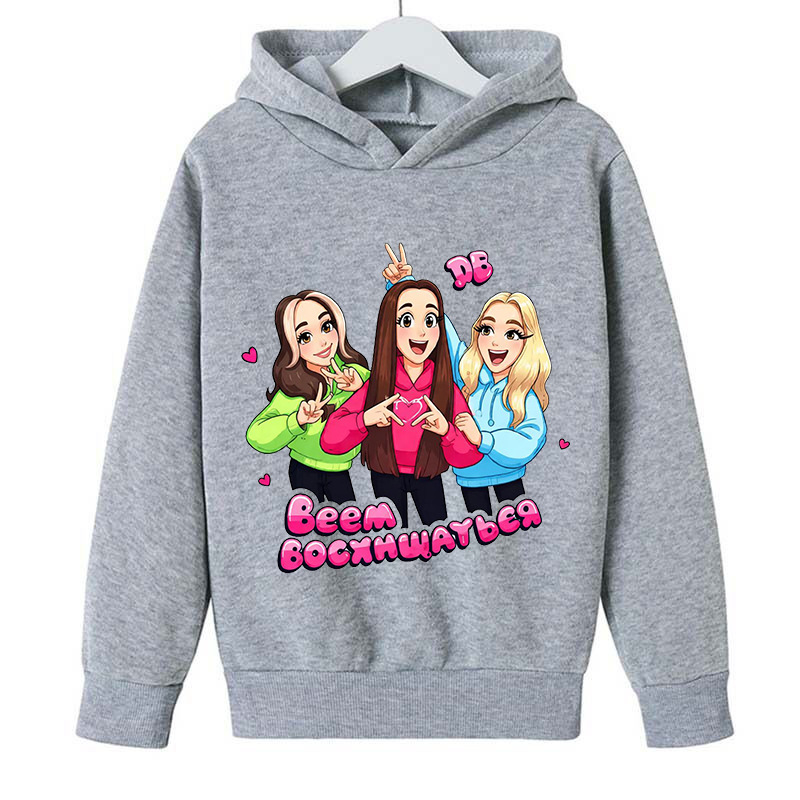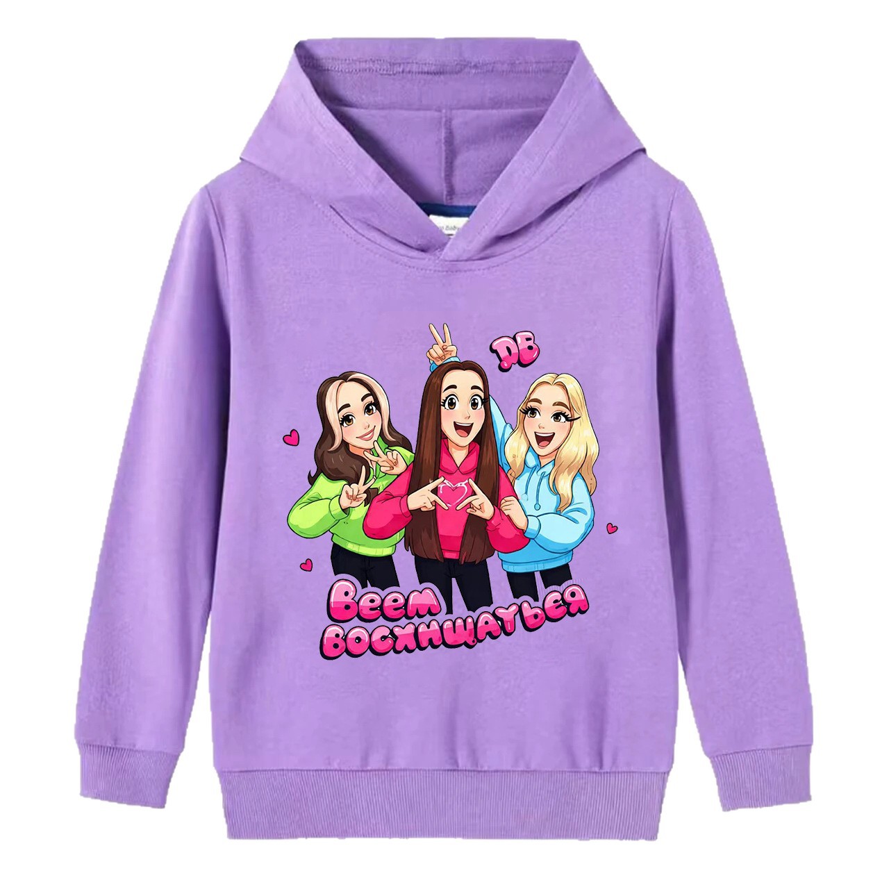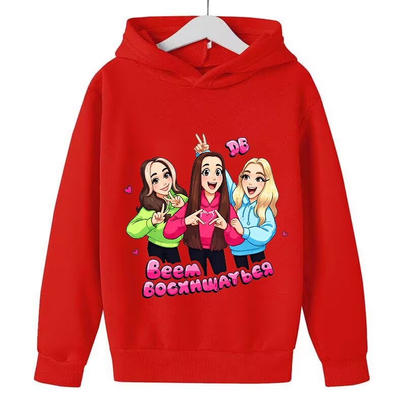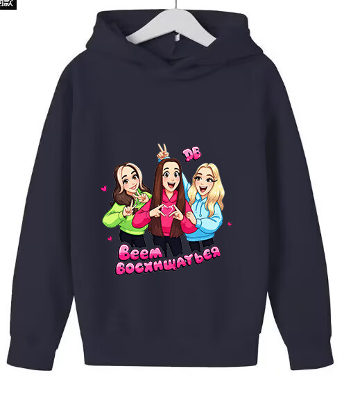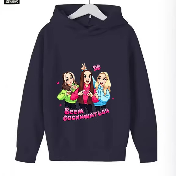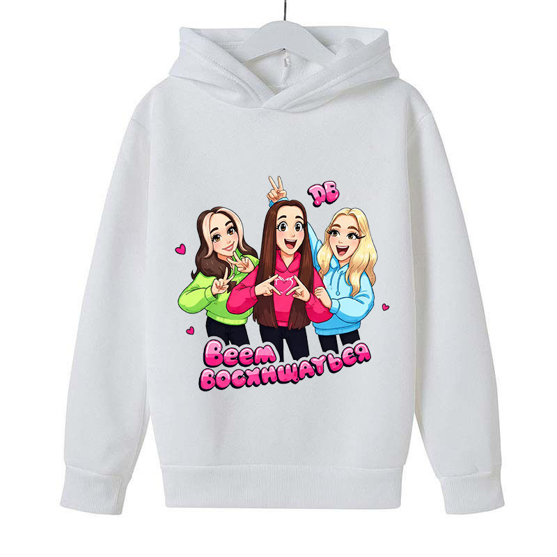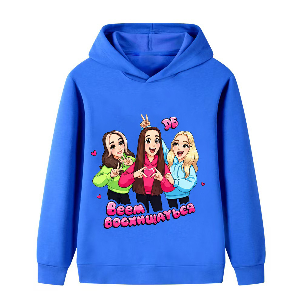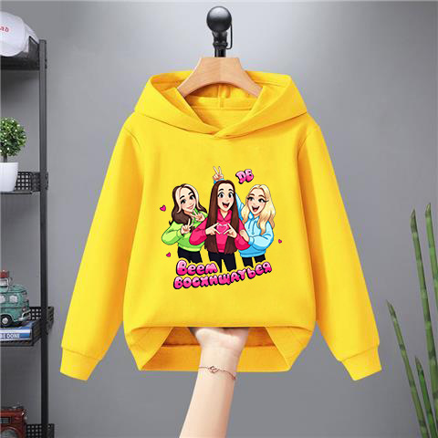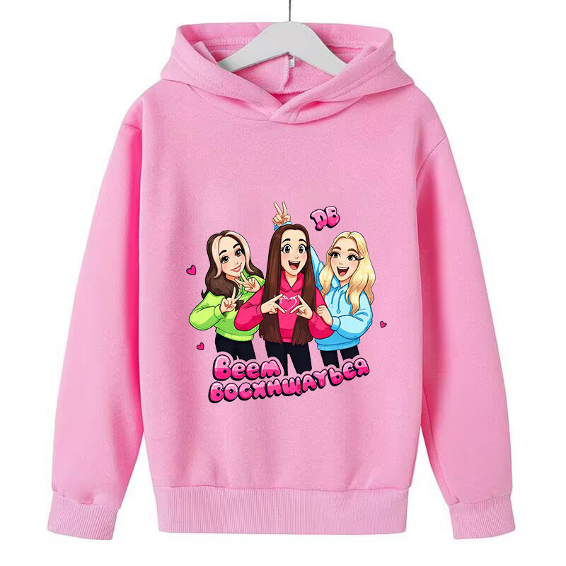 少女心闺蜜装连帽卫衣 女生三人卡通图案款 粉色友谊主题卫衣批发