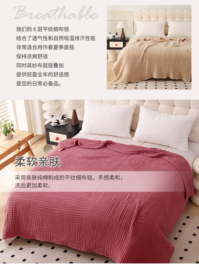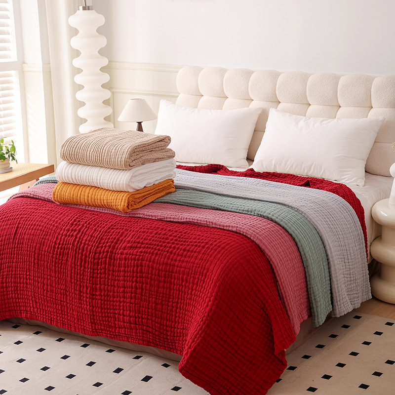 跨境定制床盖毯大尺寸平纹细布空调毯A类纯棉沙发床盖透气棉纱布