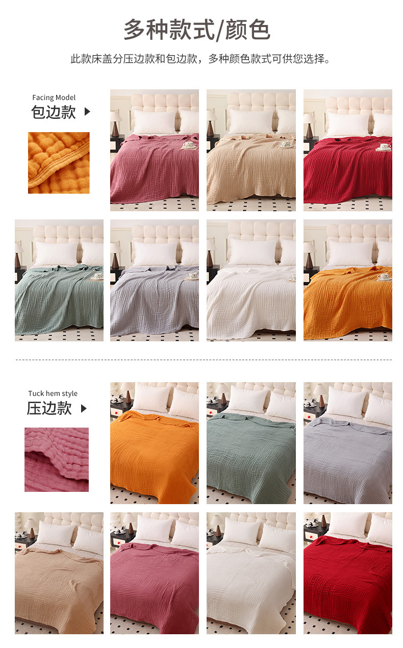 此款床盖毯因要经过水洗,高温烘干,纱布面料会有一定的缩率,产品标注尺寸均为拉伸尺寸,请广大客户知晓!