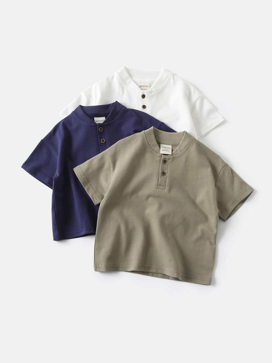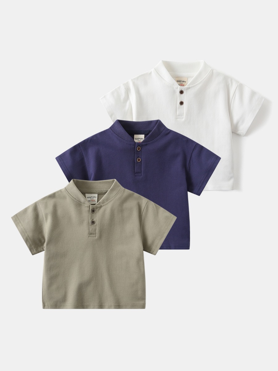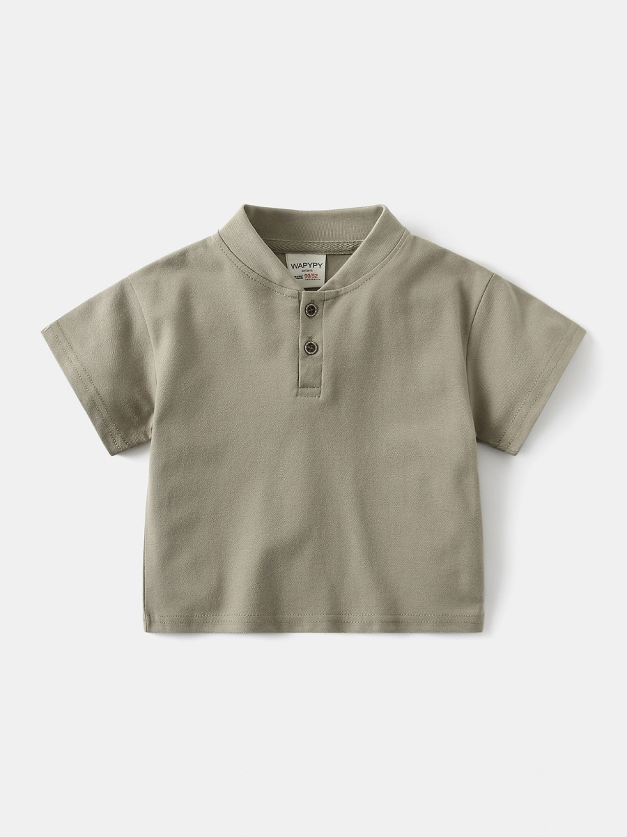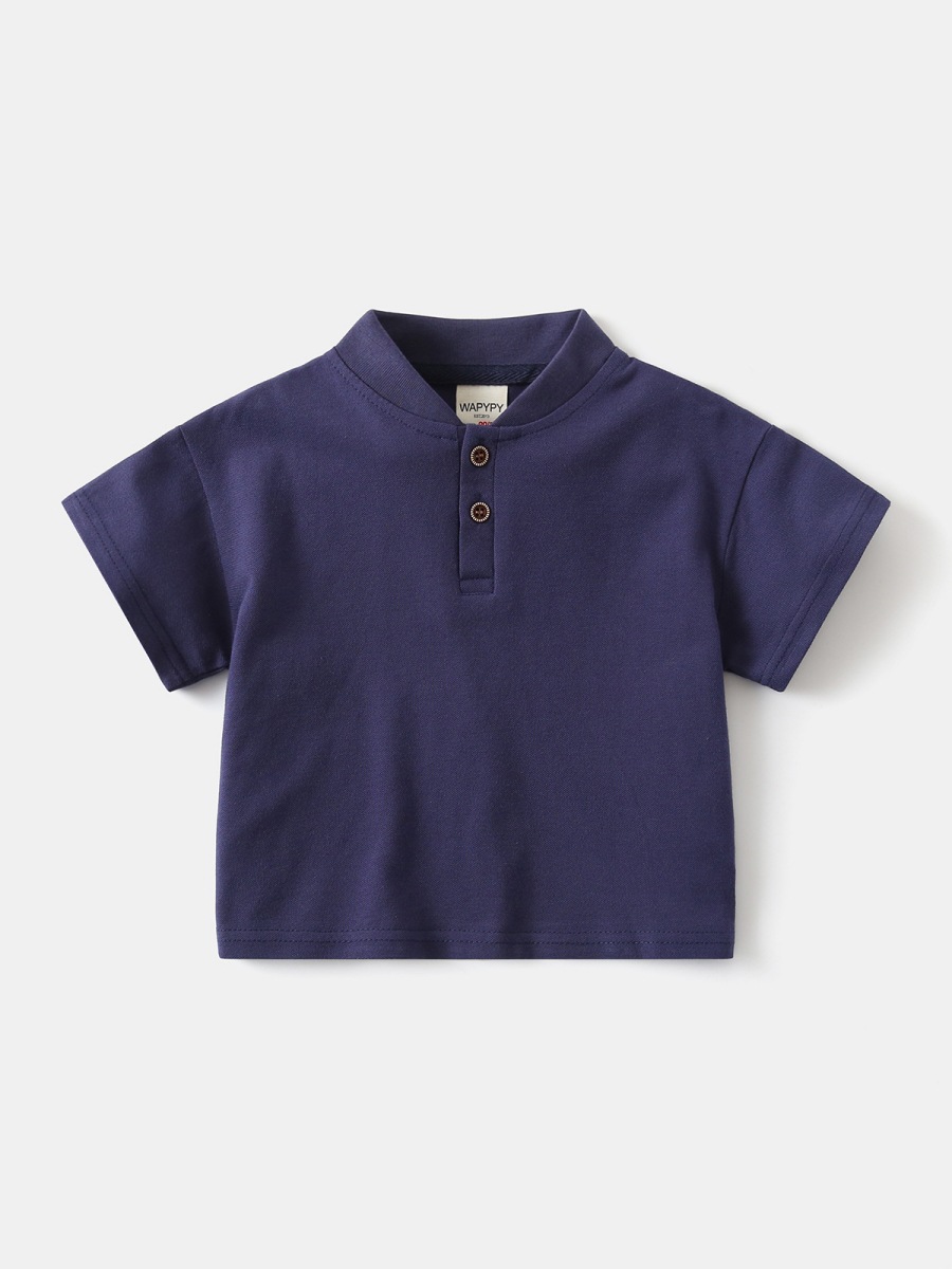 男童立领新款短袖polo衫2026夏季儿童百搭帅气纯色T恤宽松韩版潮