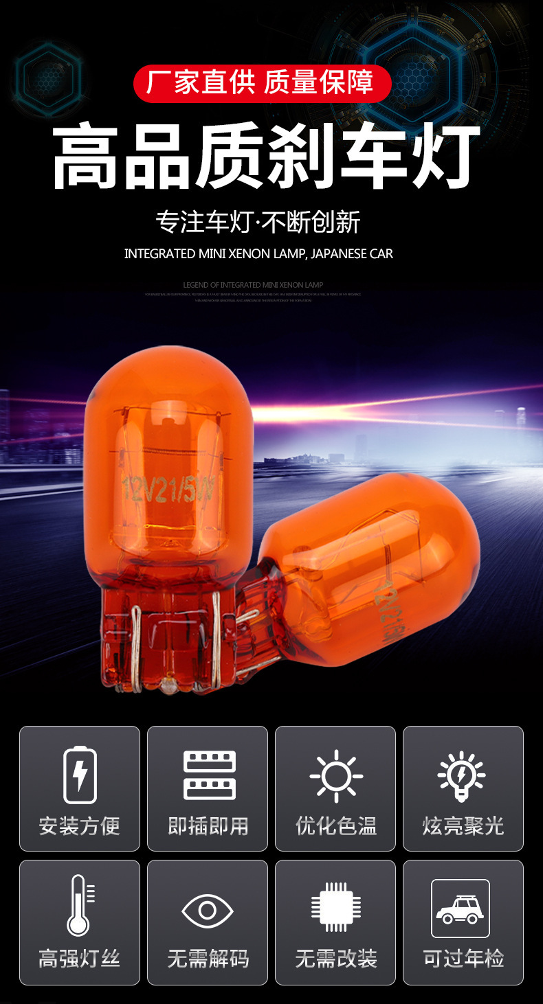 T10 12V5W T20 12V21/5W 汽车刹车灯泡 倒车灯泡 后雾灯 插片灯泡