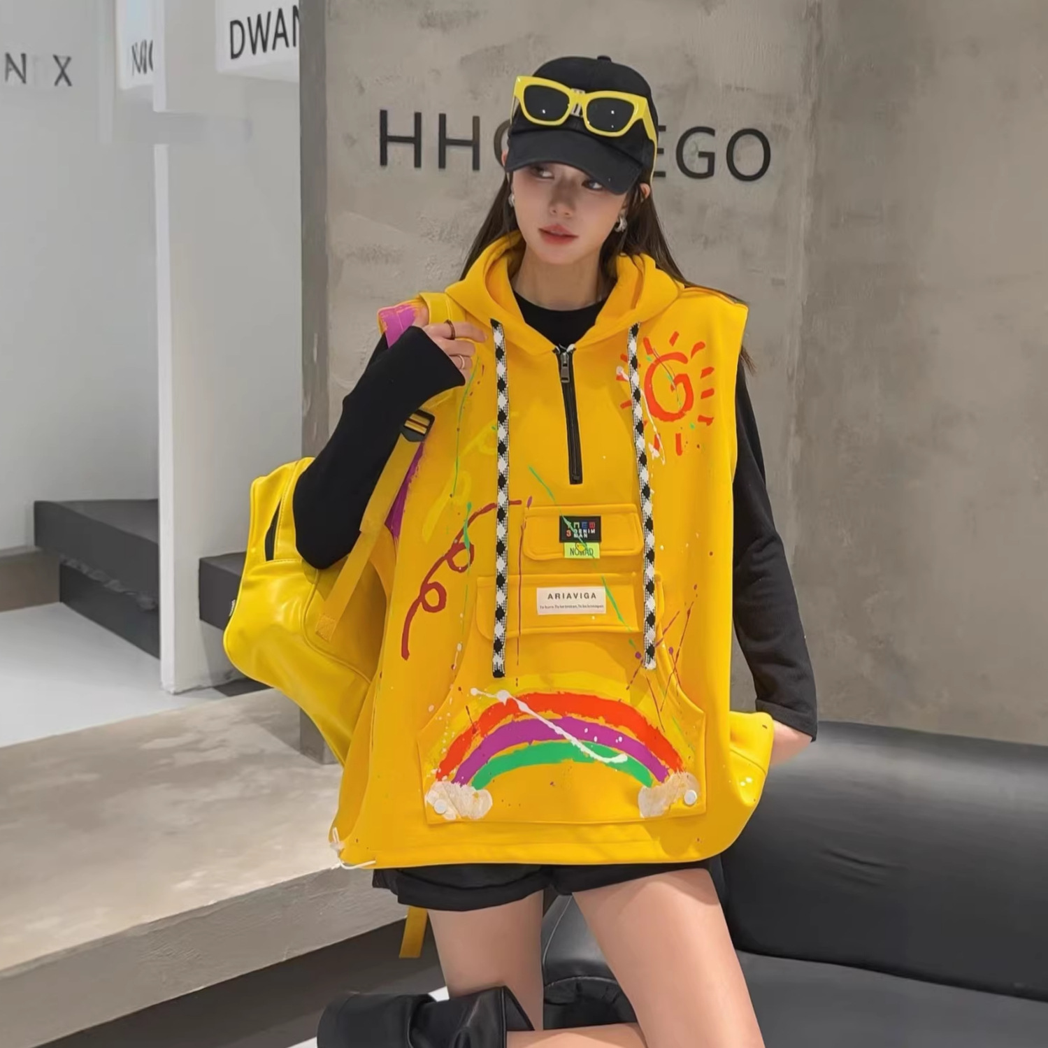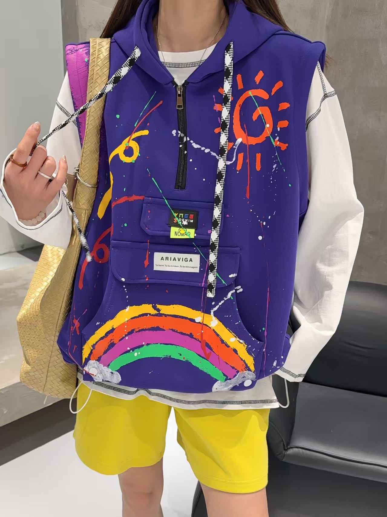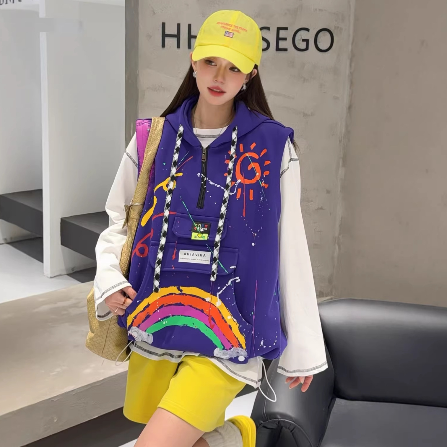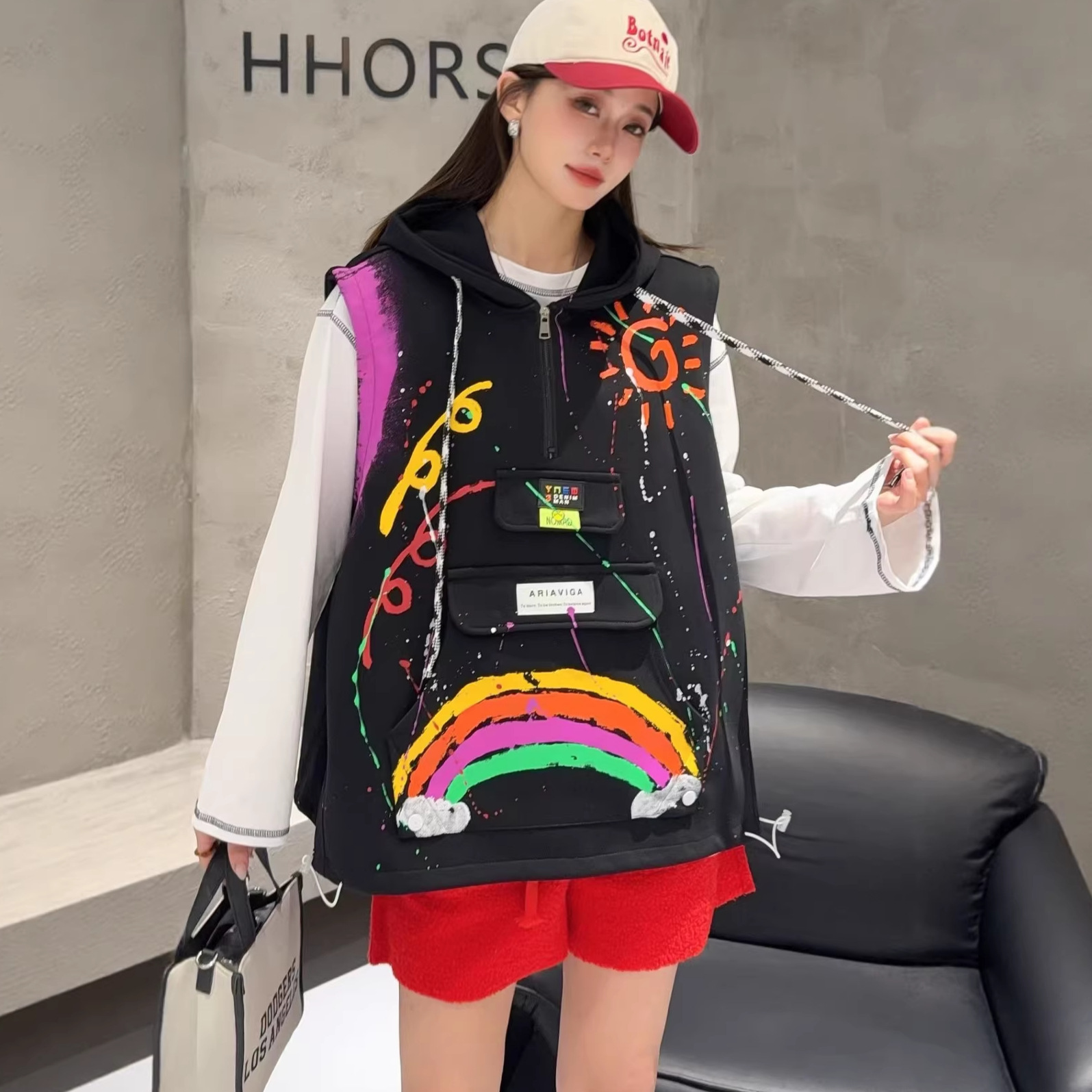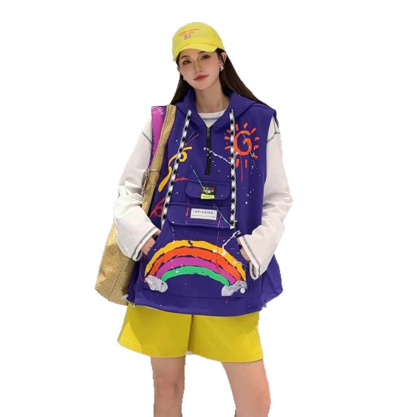 2026春秋设计感叠穿连帽马甲女大码宽松涂鸦洋气百搭马夹背心外套