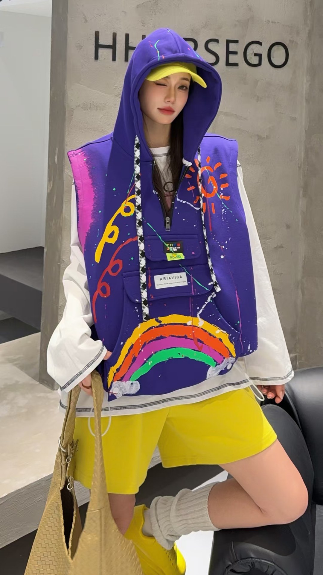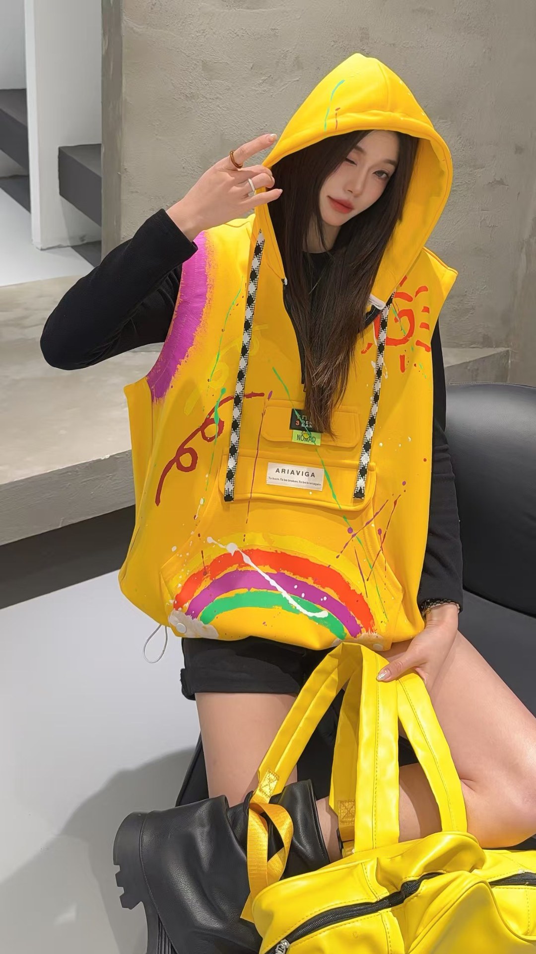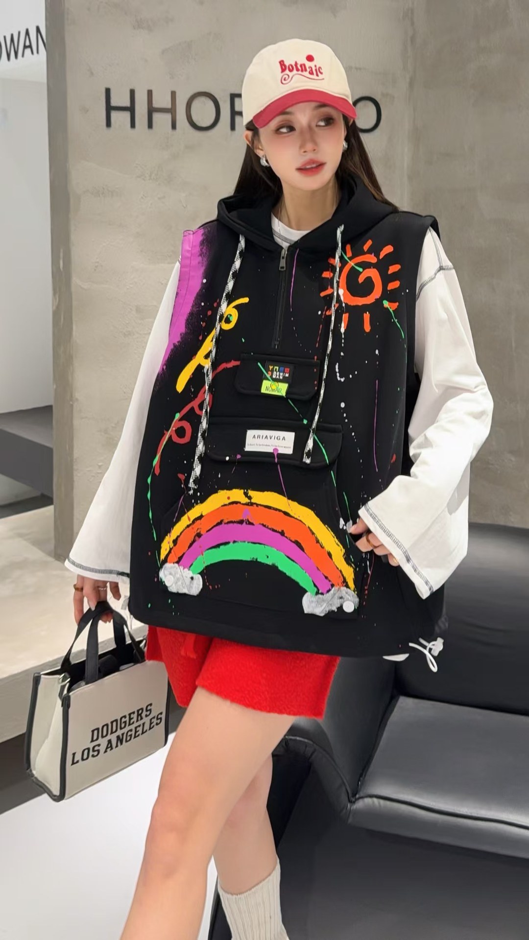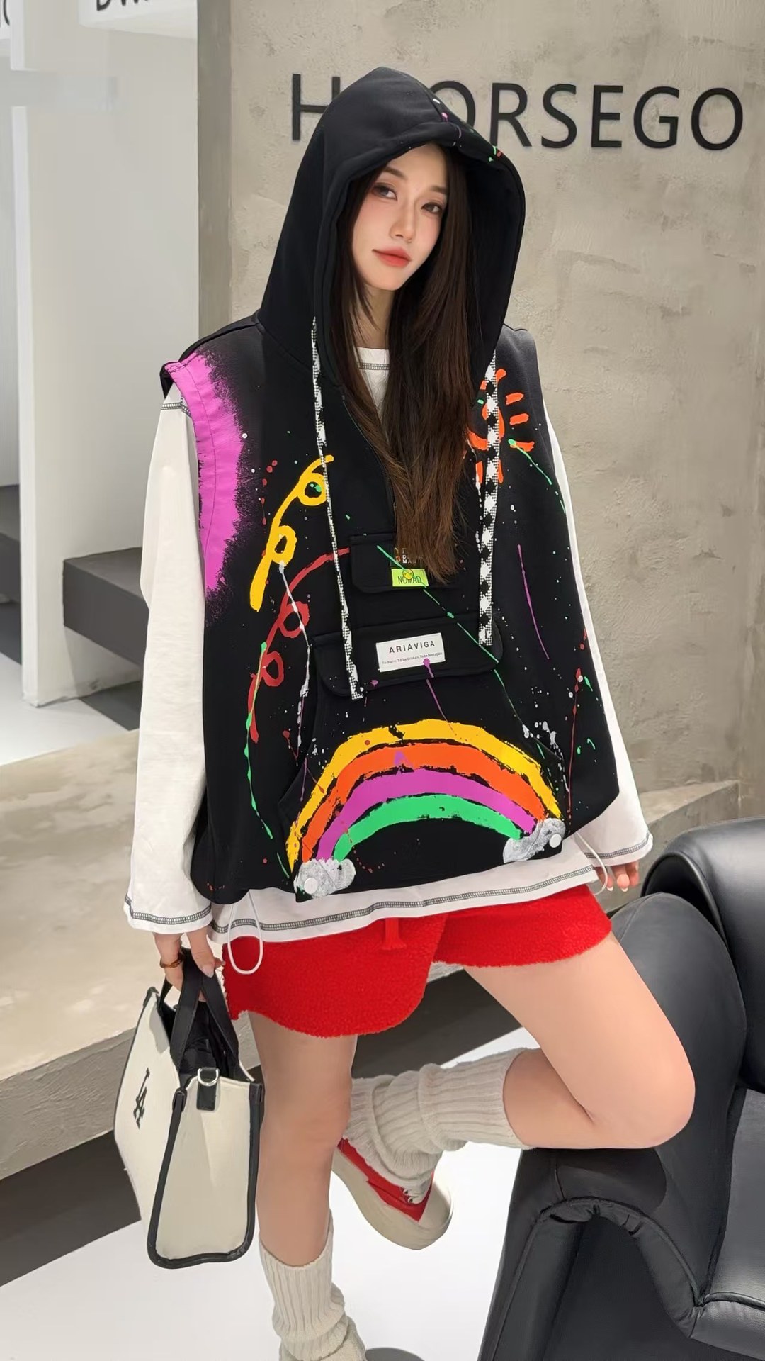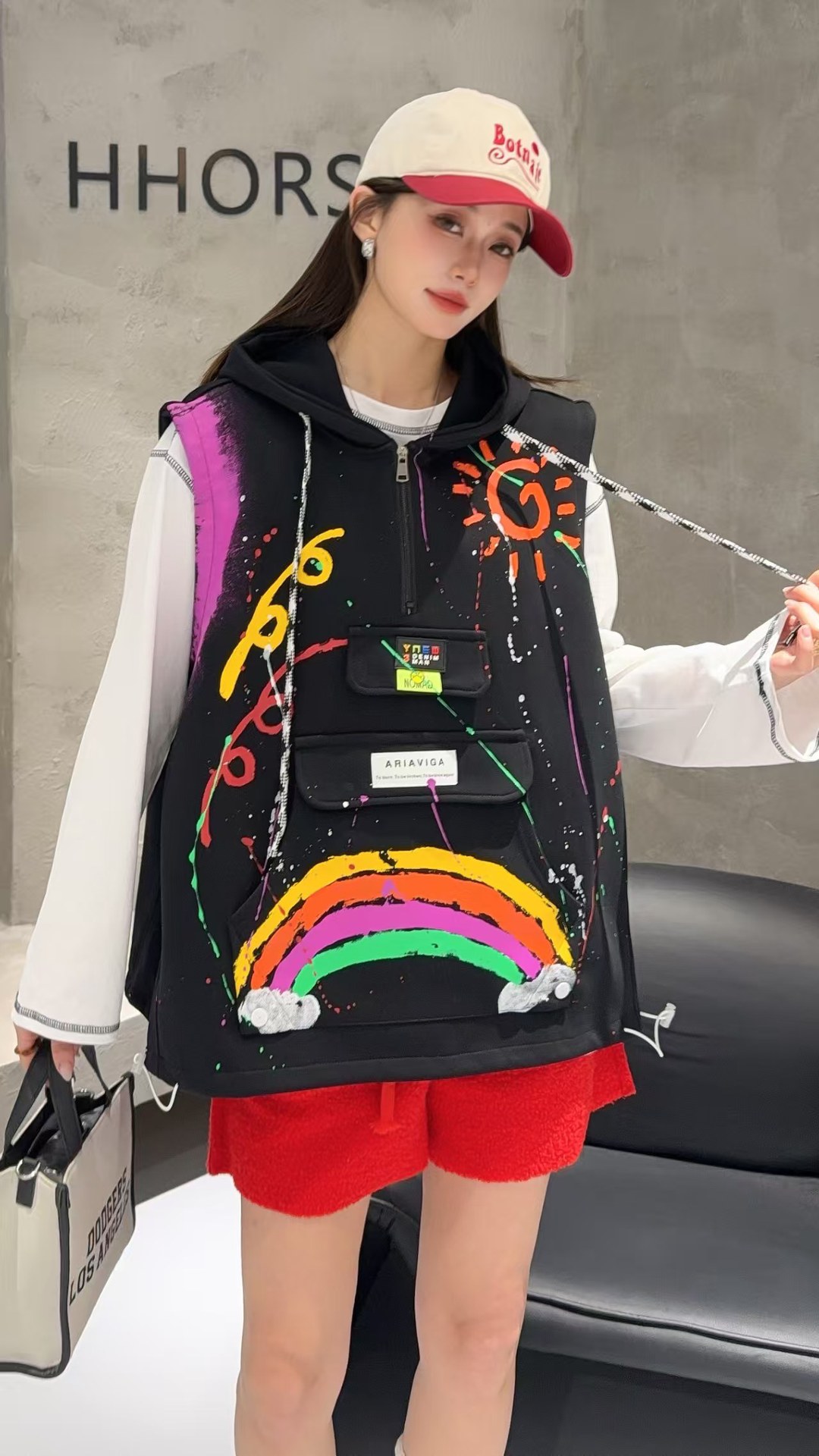 2026春秋设计感叠穿连帽马甲女大码宽松涂鸦洋气百搭马夹背心外套