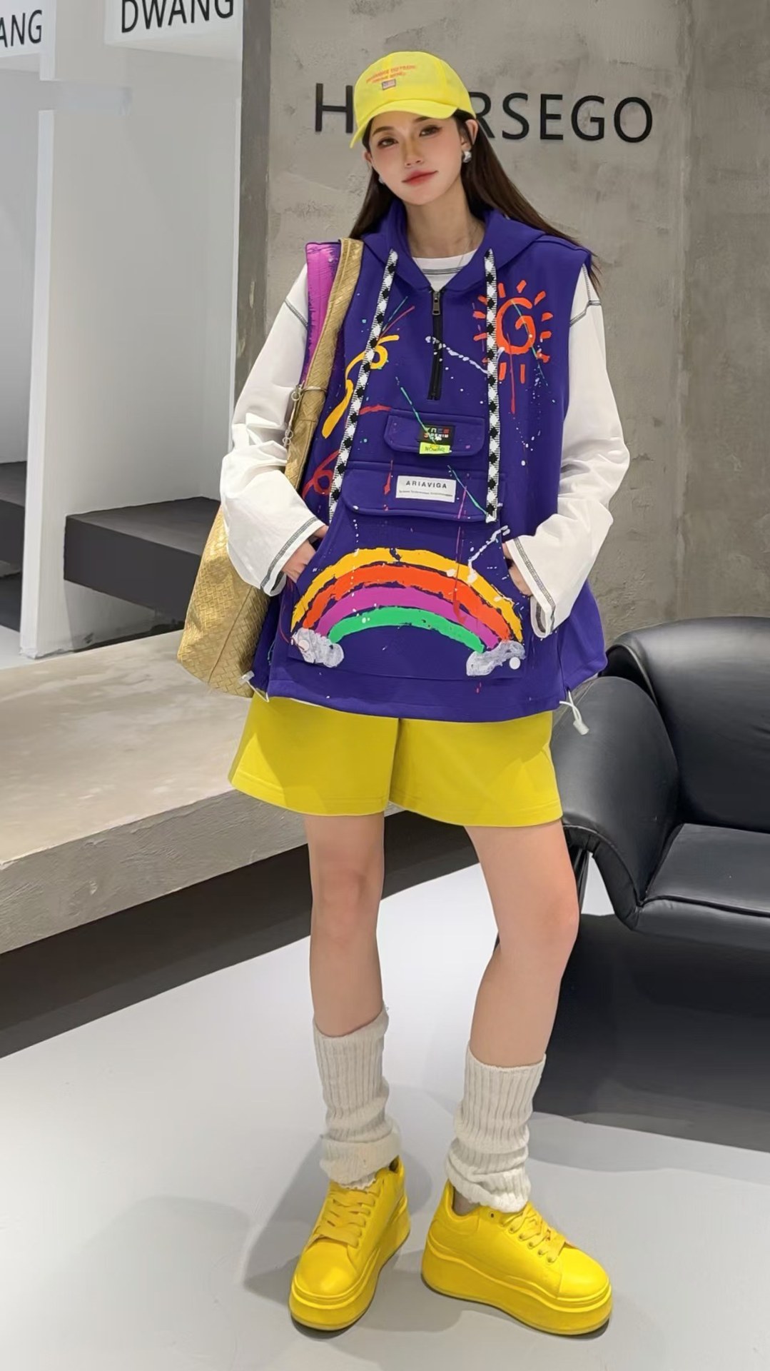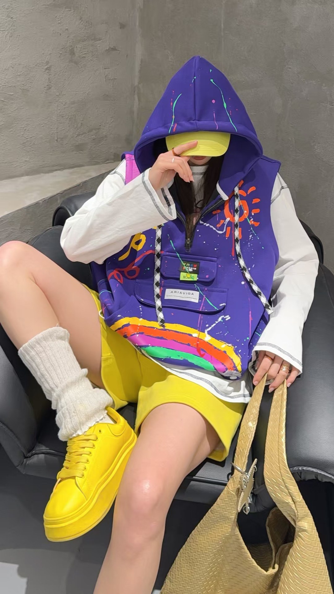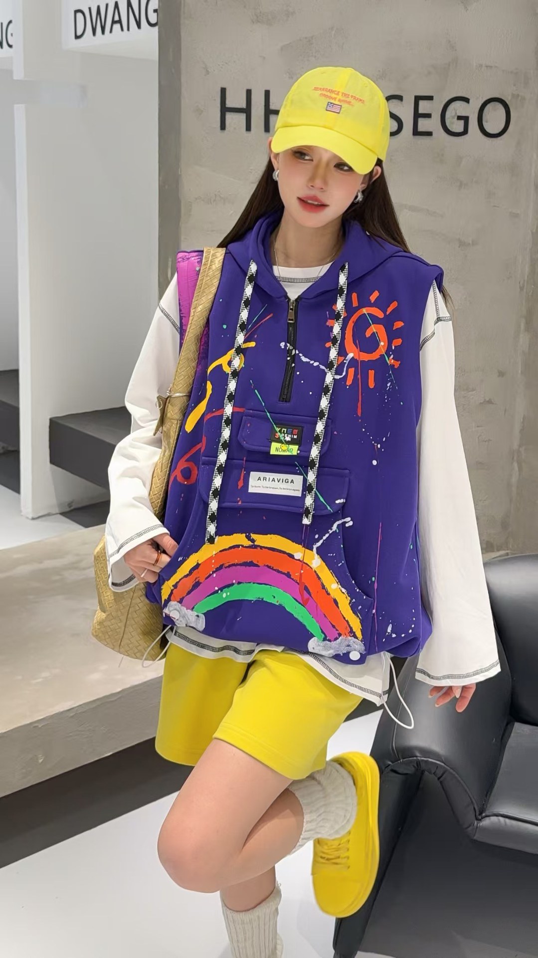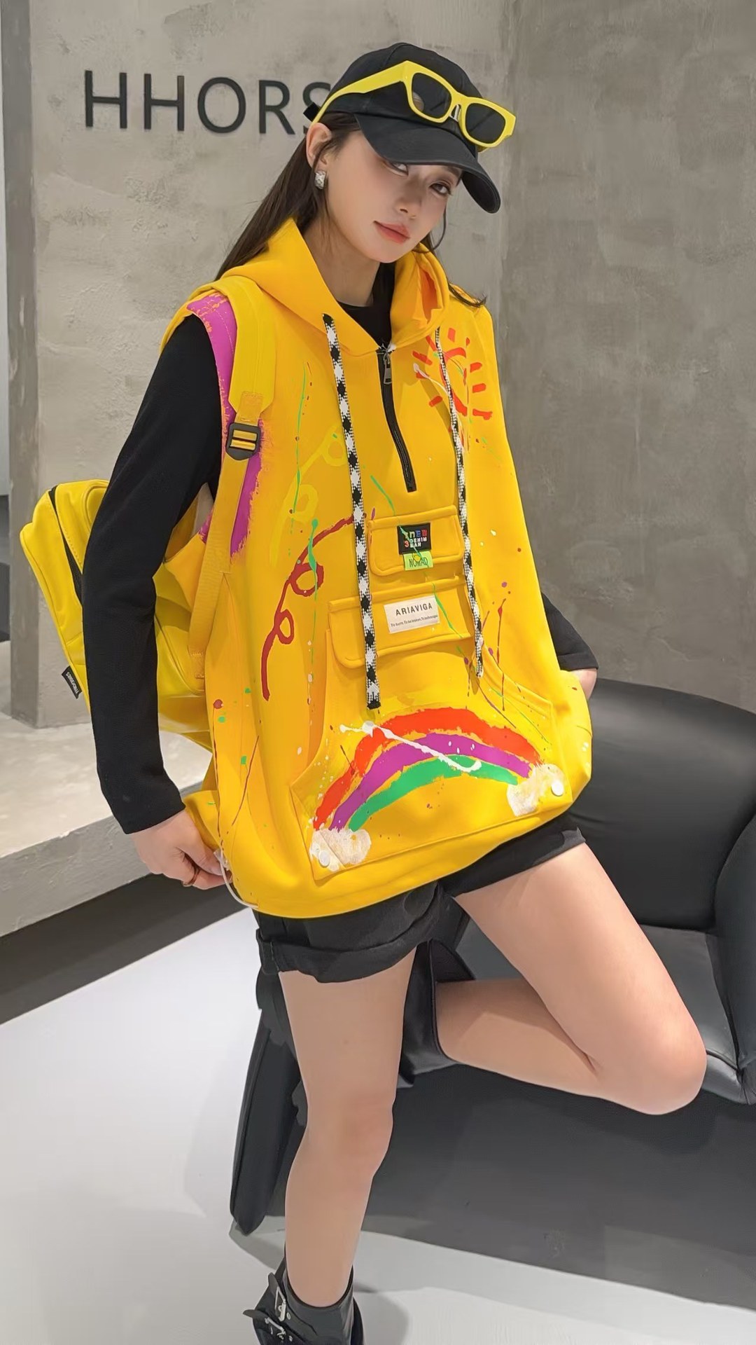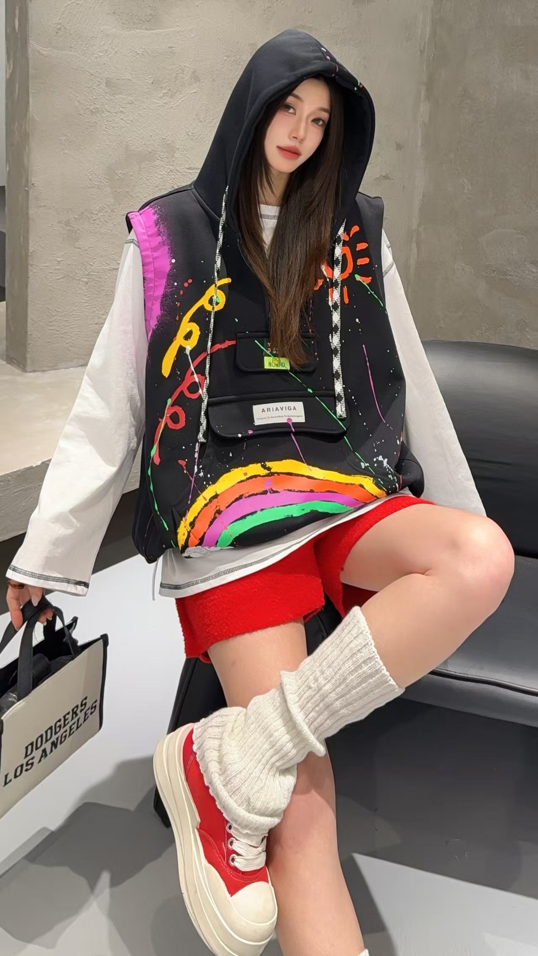 2026春秋设计感叠穿连帽马甲女大码宽松涂鸦洋气百搭马夹背心外套