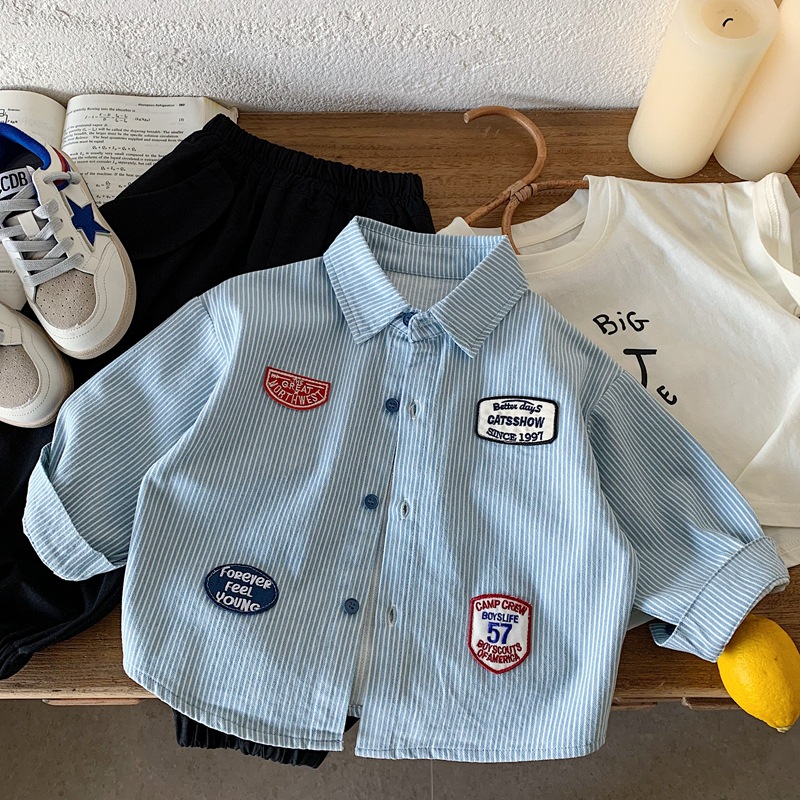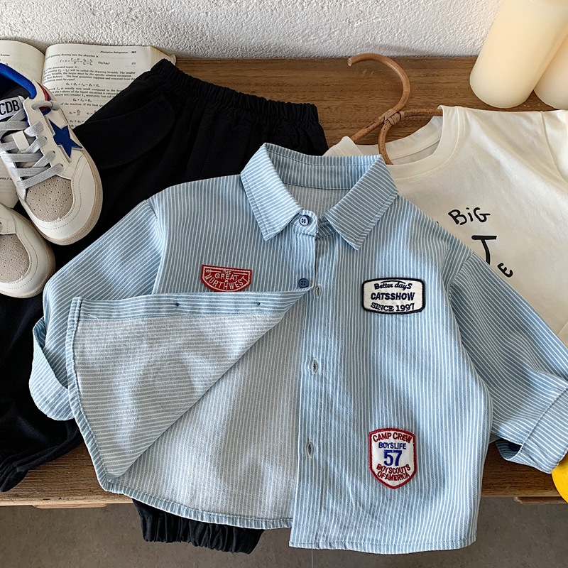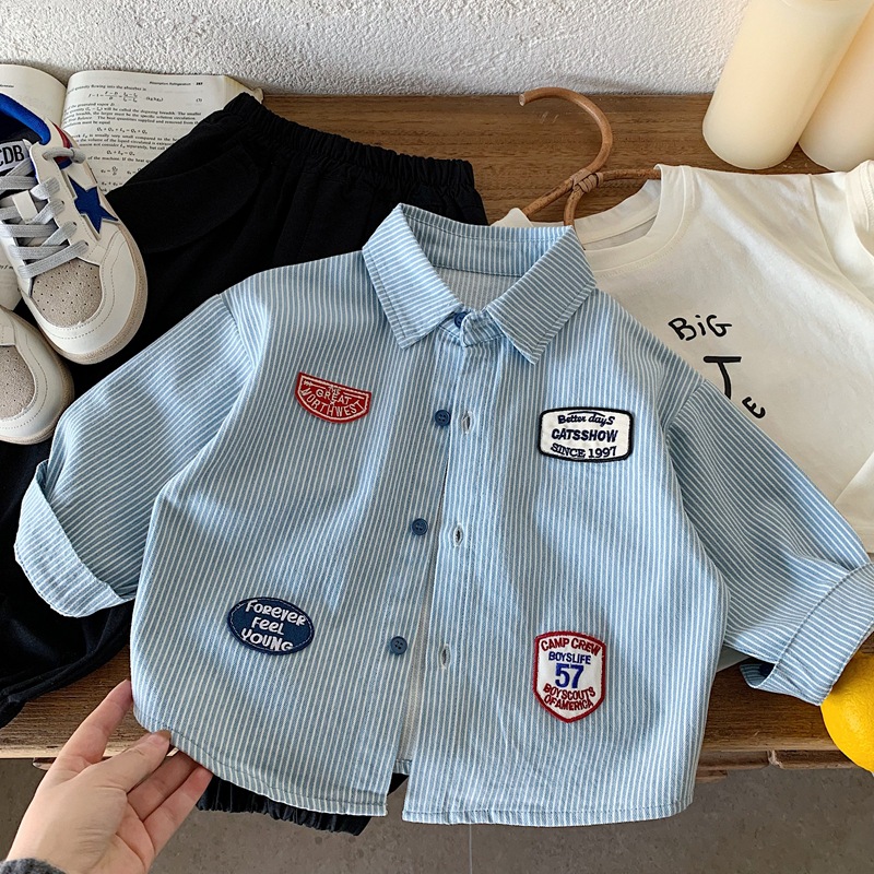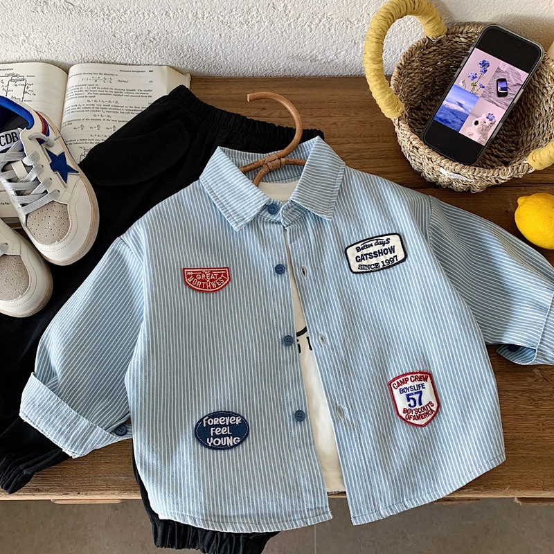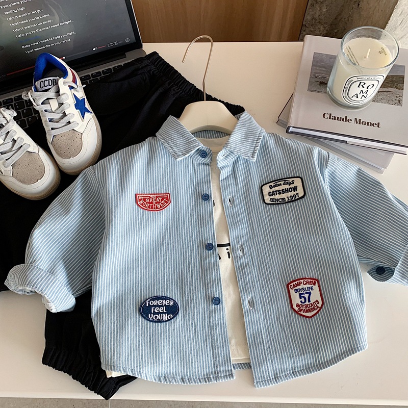 日系童装男童牛仔衬衫春秋款儿童外套2026新款中小童长袖衬衣潮酷