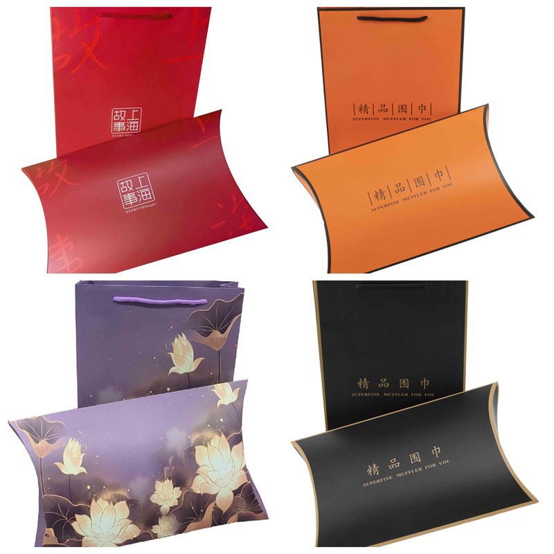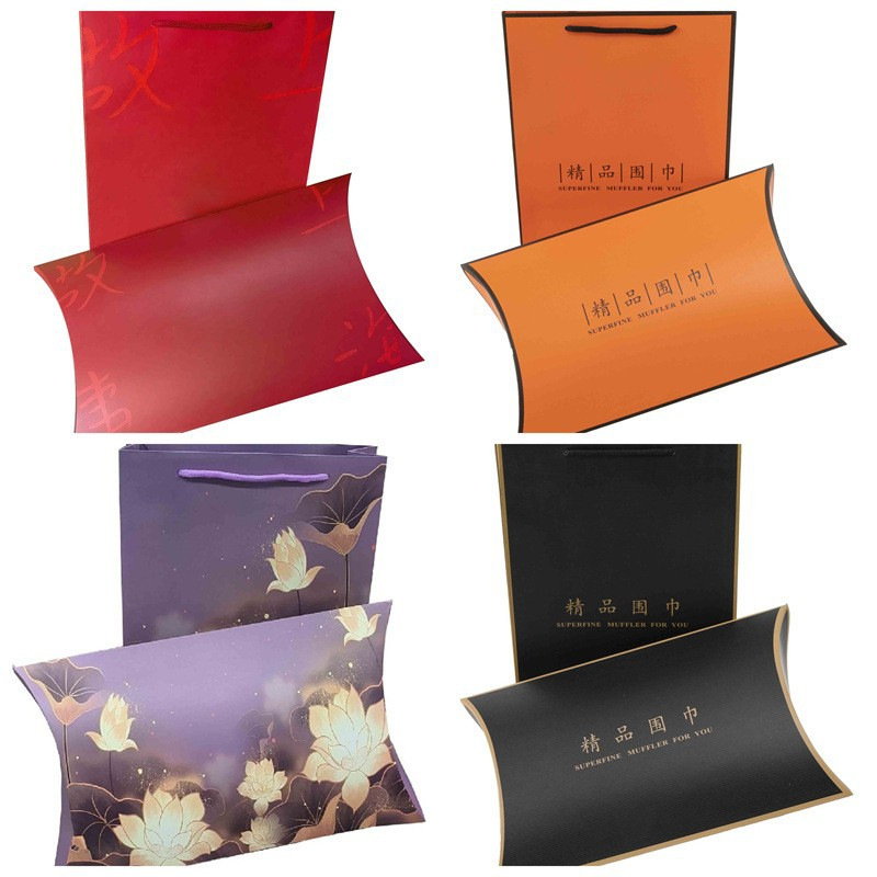 精品围巾礼盒手提袋丝绸丝巾服装礼品包装盒套装现货批发印刷logo