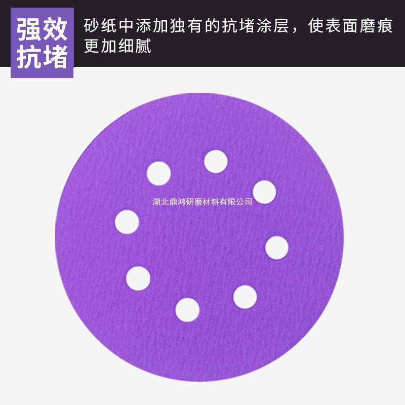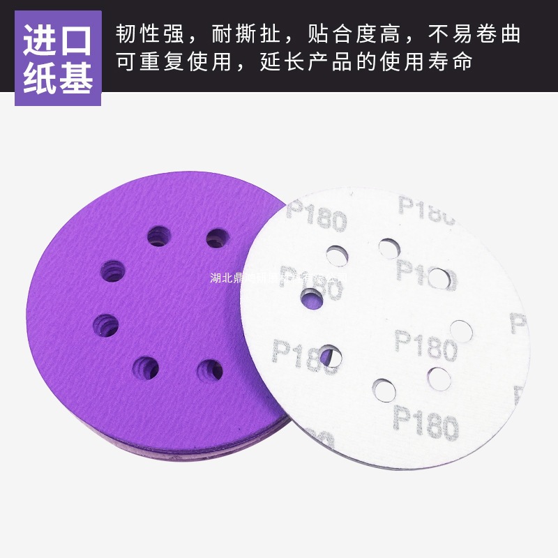 5寸8孔紫砂纸 背绒砂纸 圆盘砂汽车气磨抛光砂碟干磨植绒砂纸片