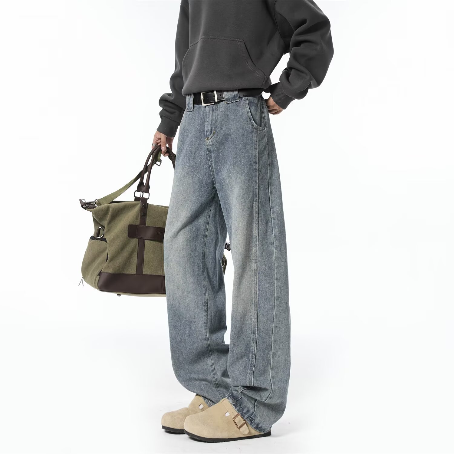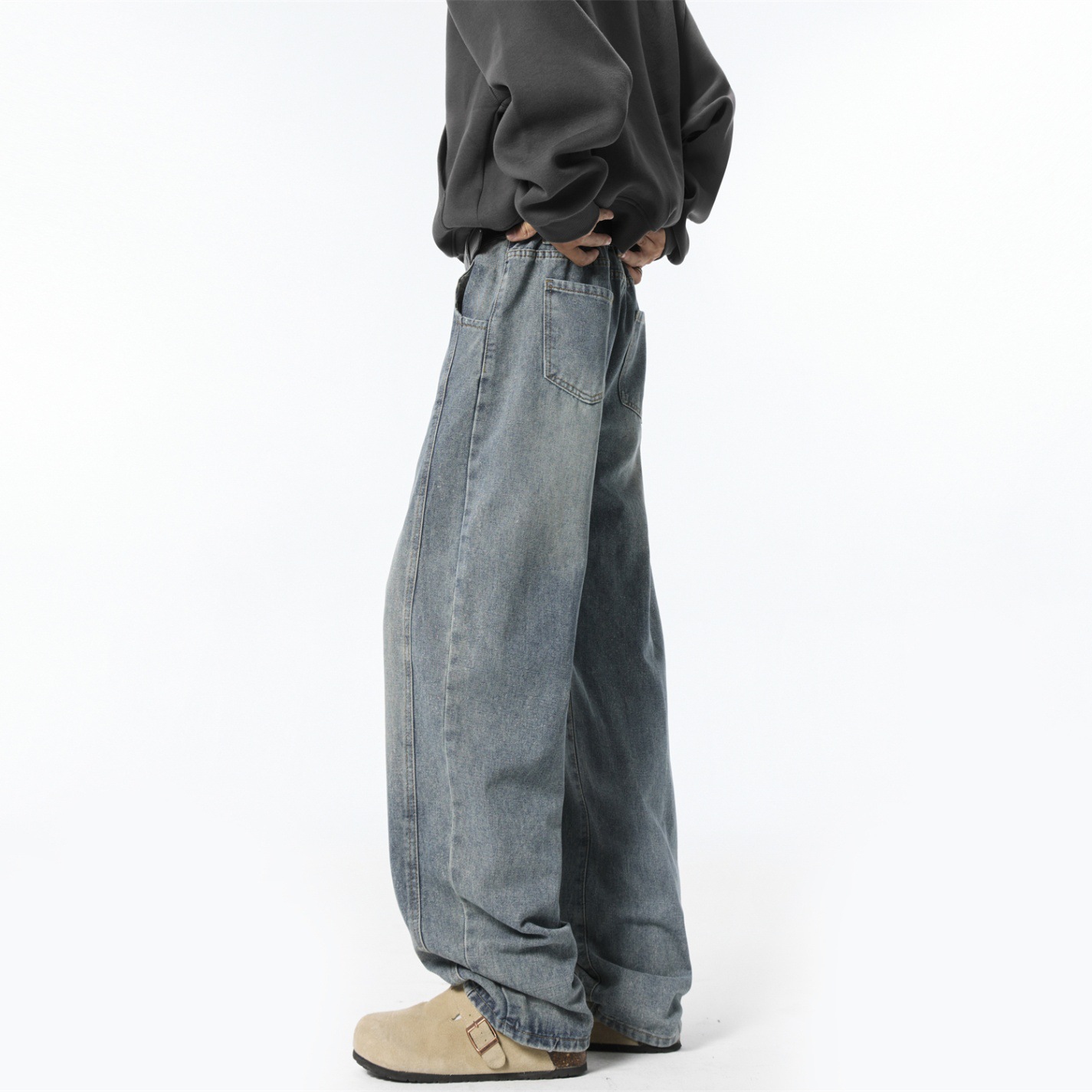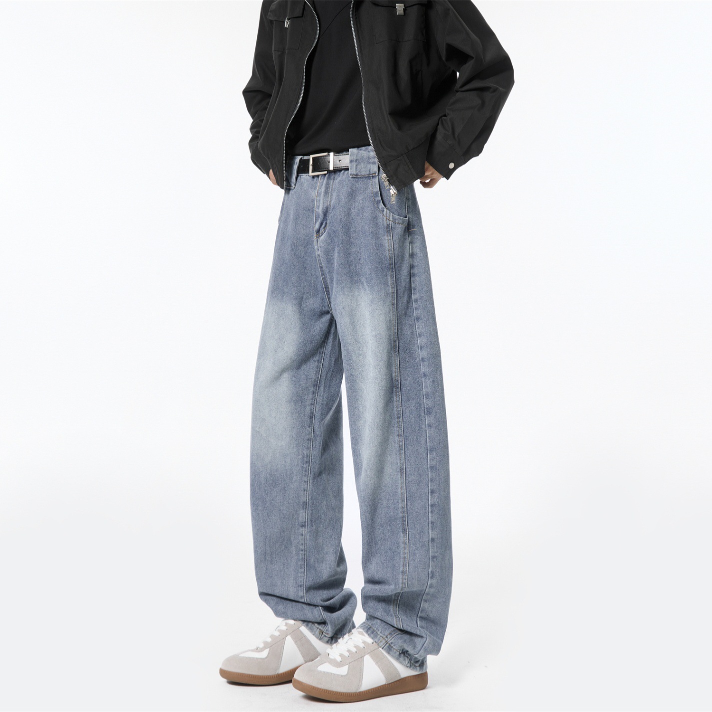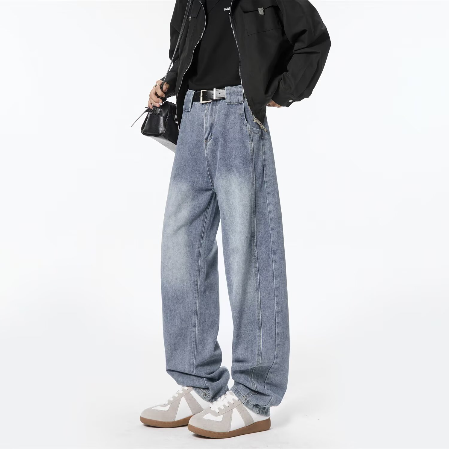 美式高街阔腿牛仔裤男秋季宽松直筒休闲长裤拖地裤子男生水洗复古