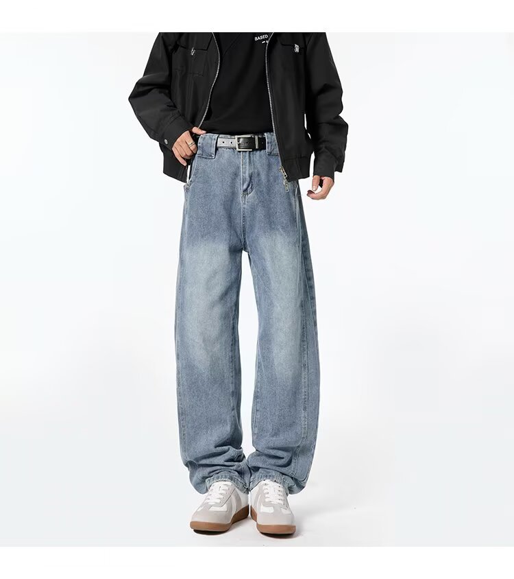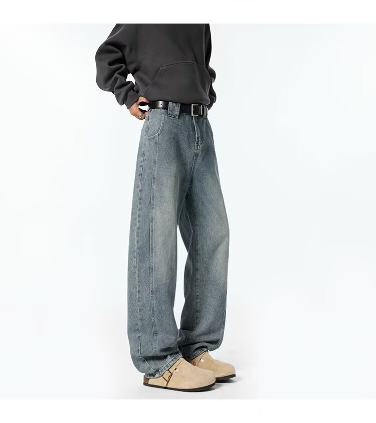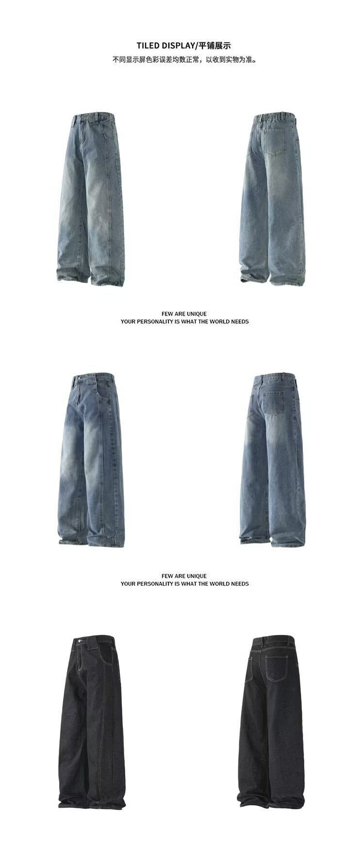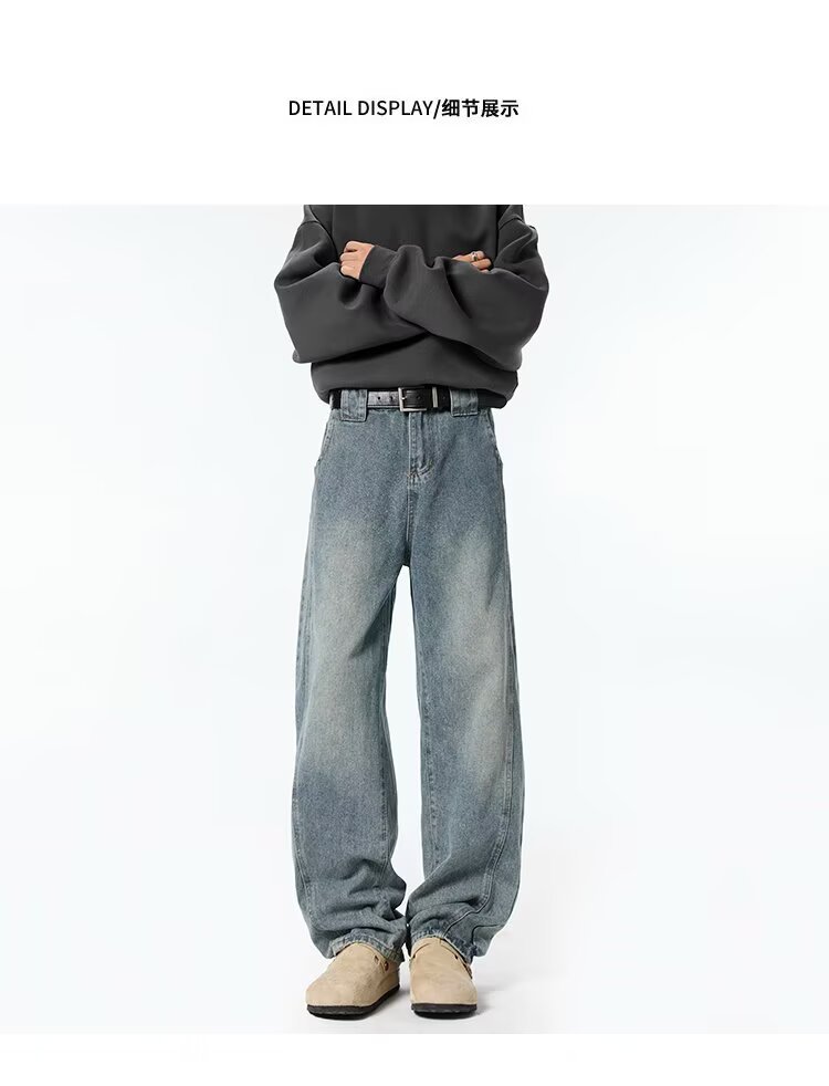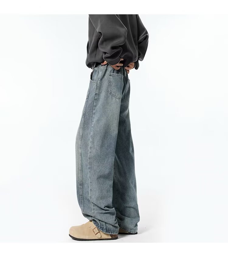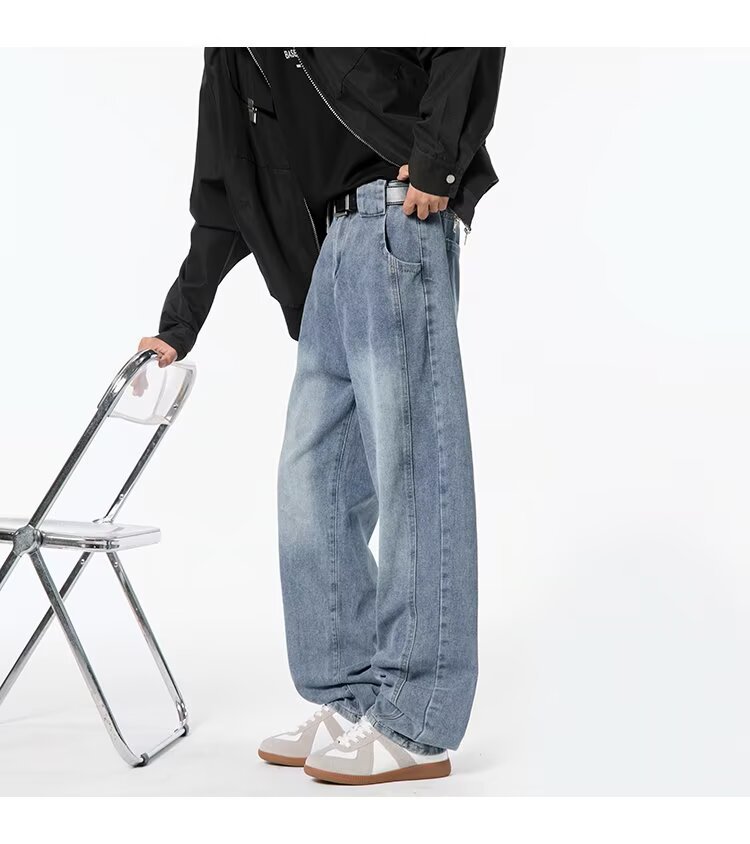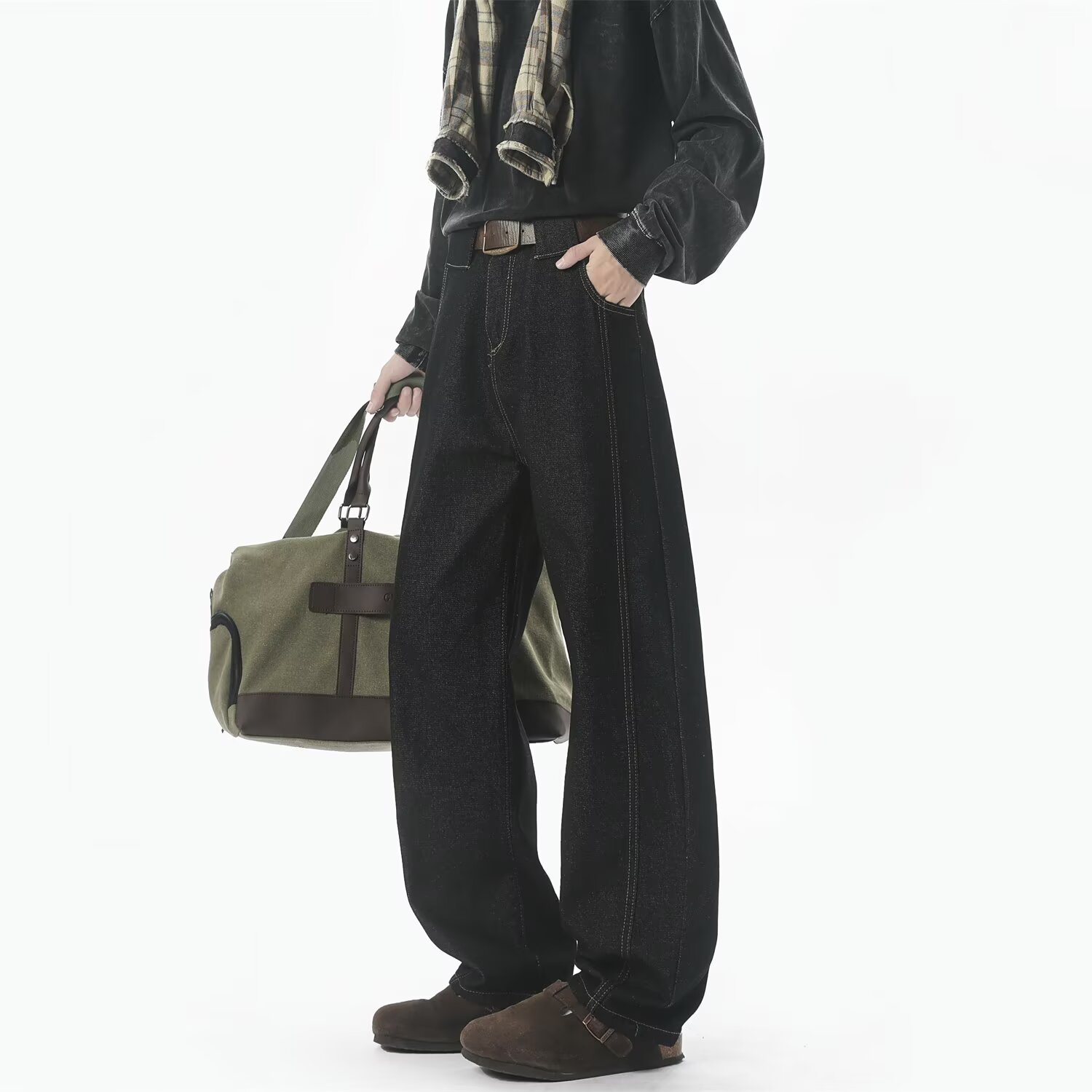 美式高街阔腿牛仔裤男秋季宽松直筒休闲长裤拖地裤子男生水洗复古
