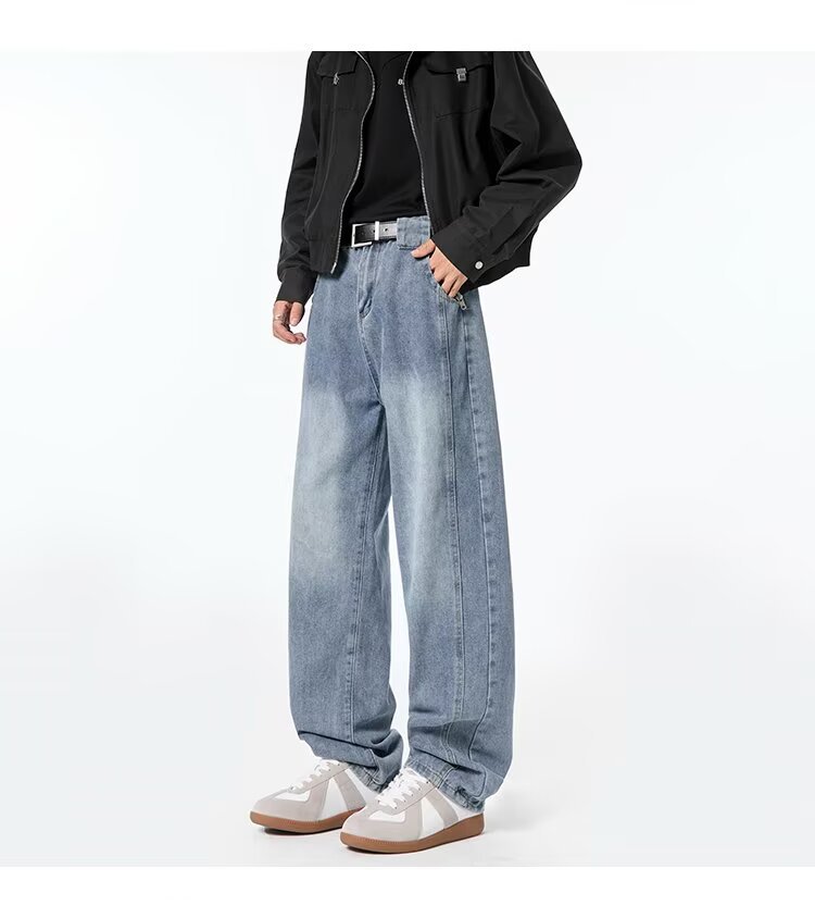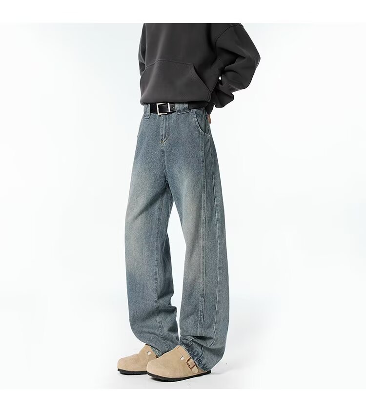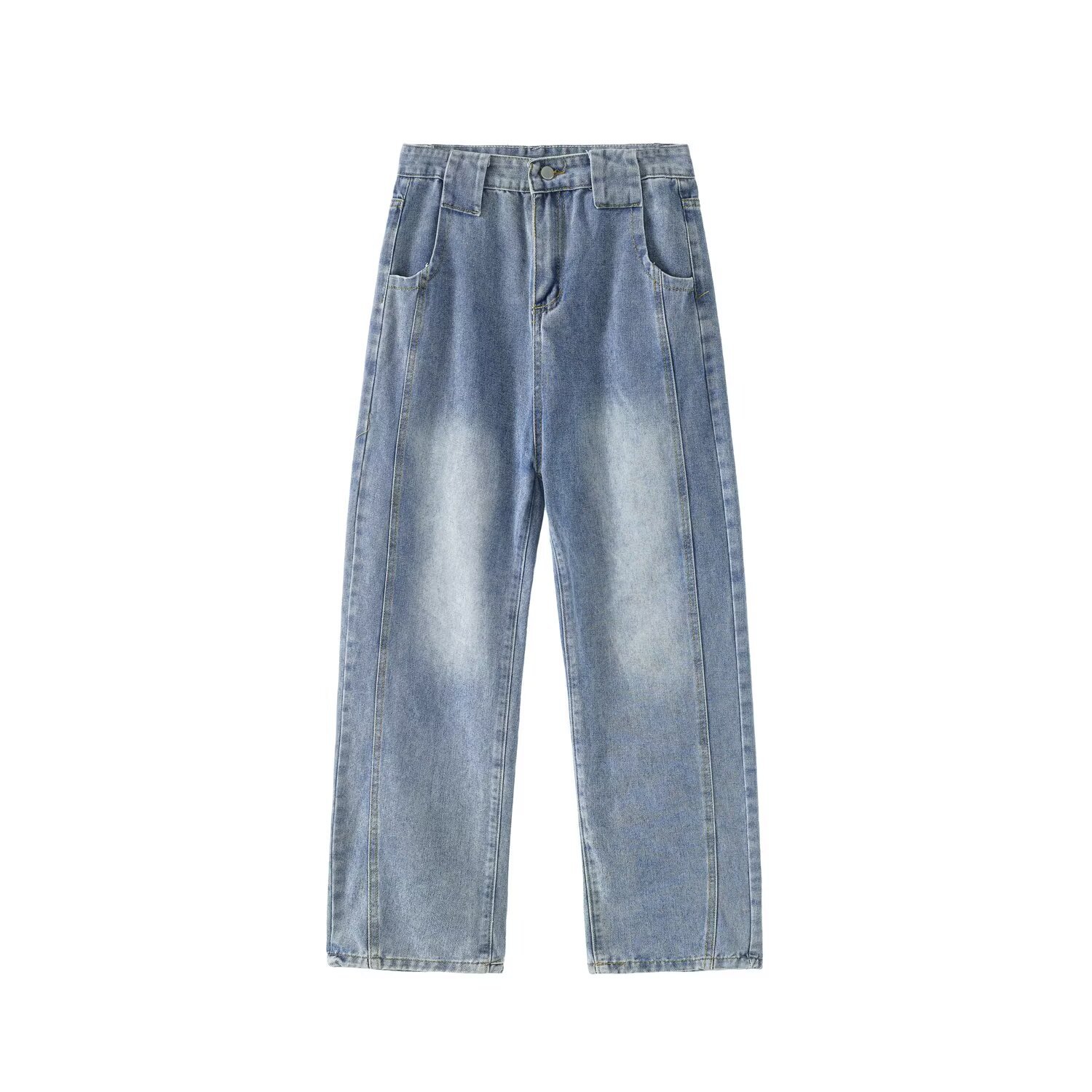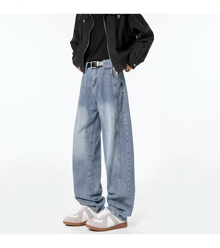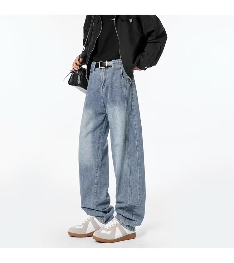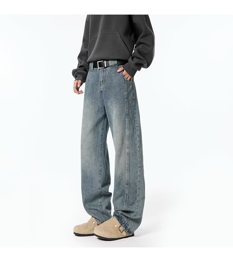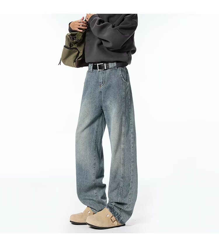 美式高街阔腿牛仔裤男秋季宽松直筒休闲长裤拖地裤子男生水洗复古