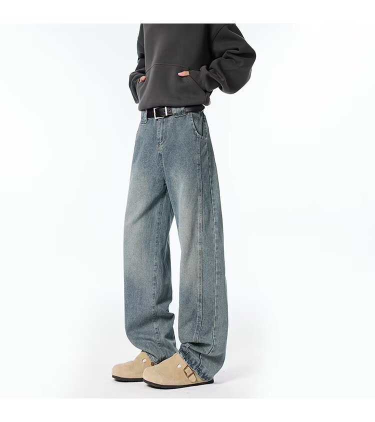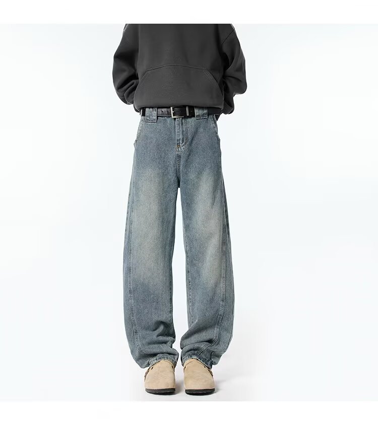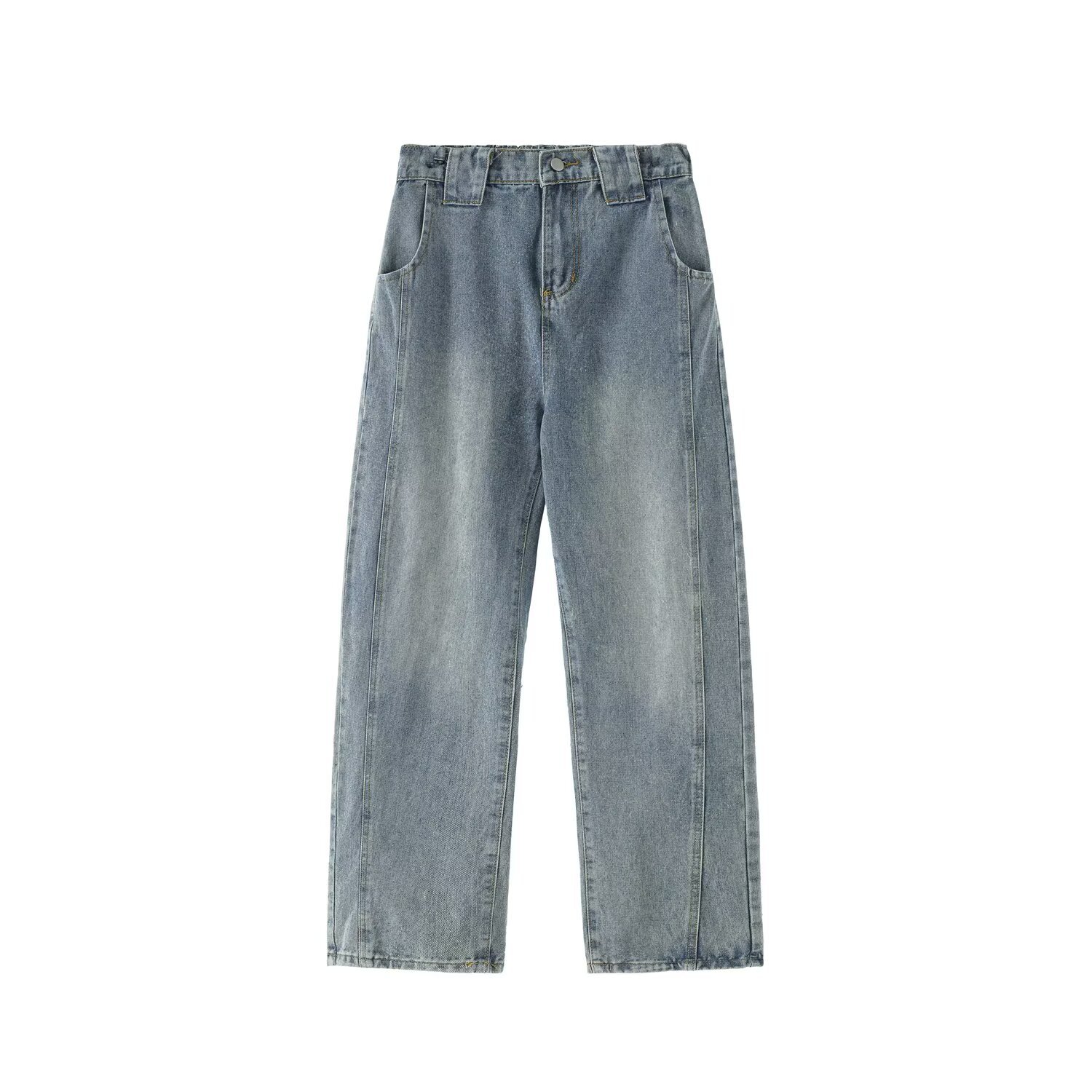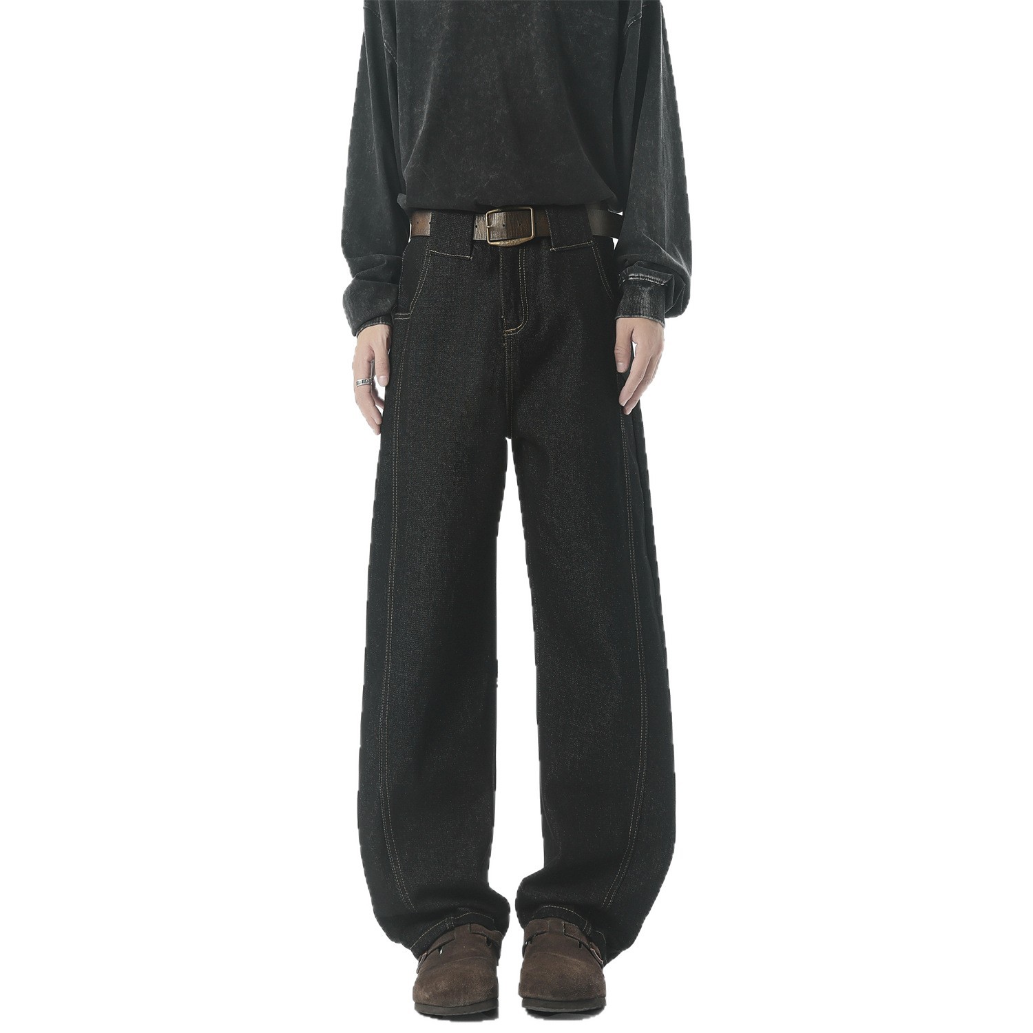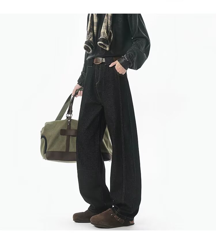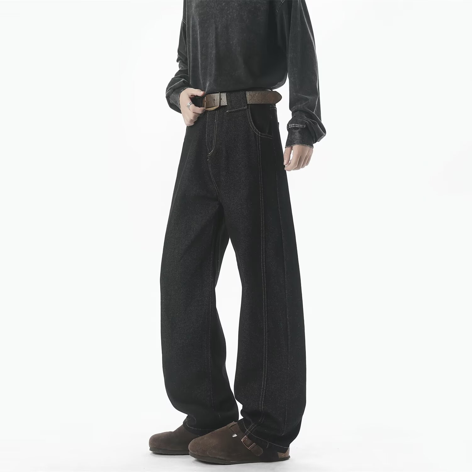 美式高街阔腿牛仔裤男秋季宽松直筒休闲长裤拖地裤子男生水洗复古