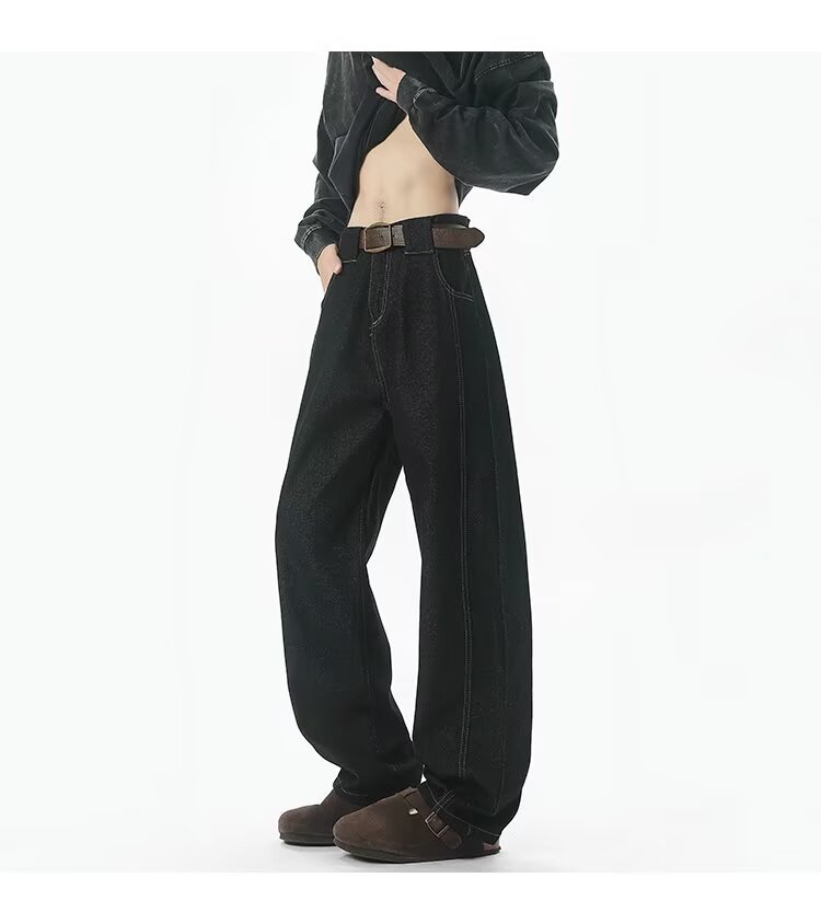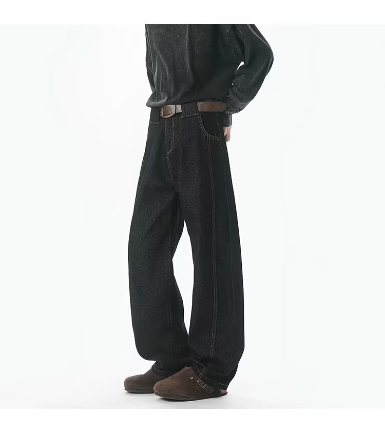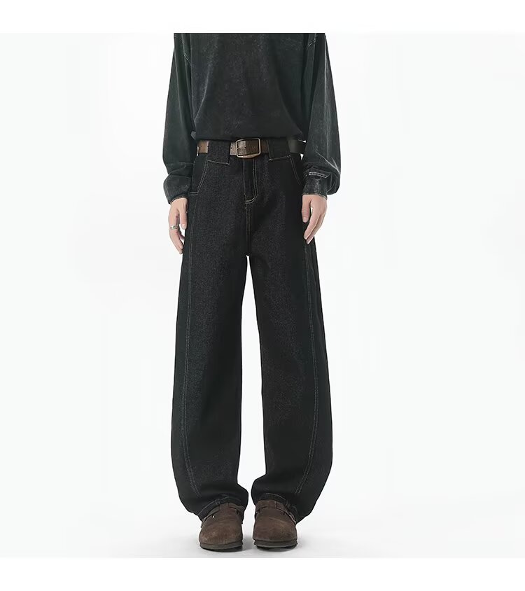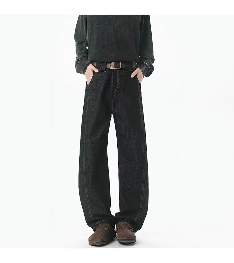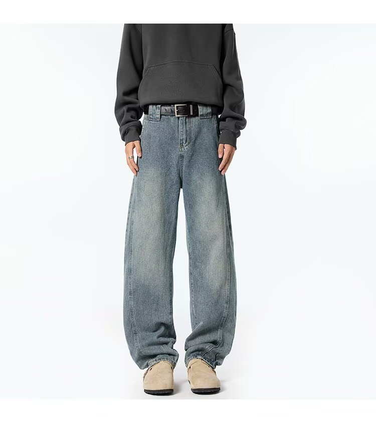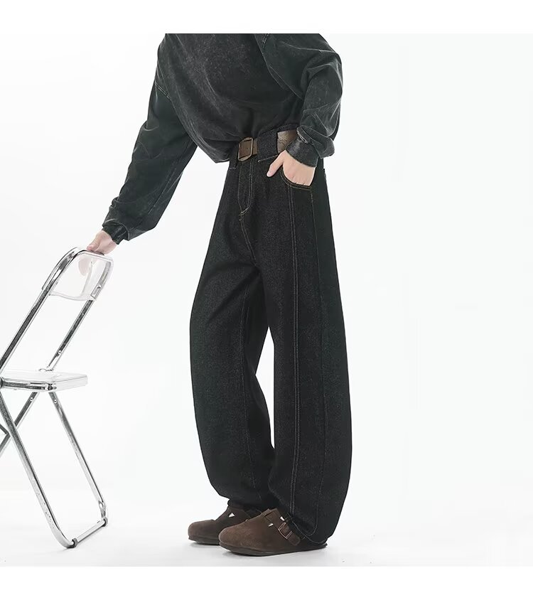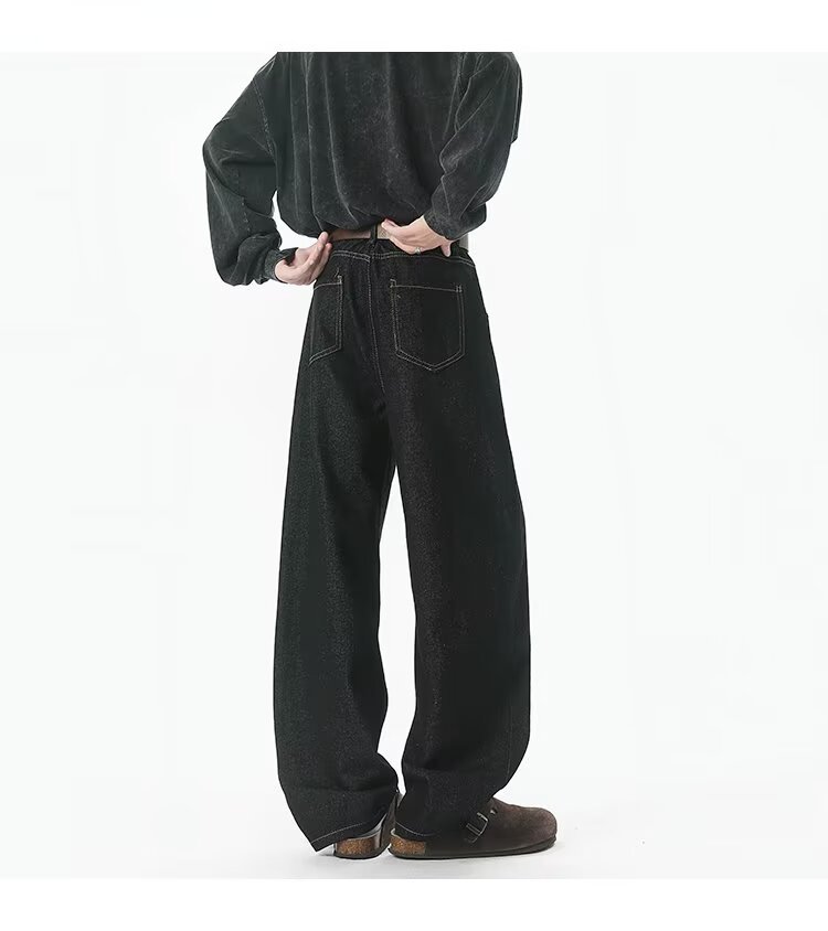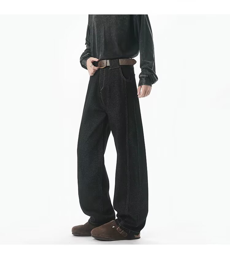 美式高街阔腿牛仔裤男秋季宽松直筒休闲长裤拖地裤子男生水洗复古