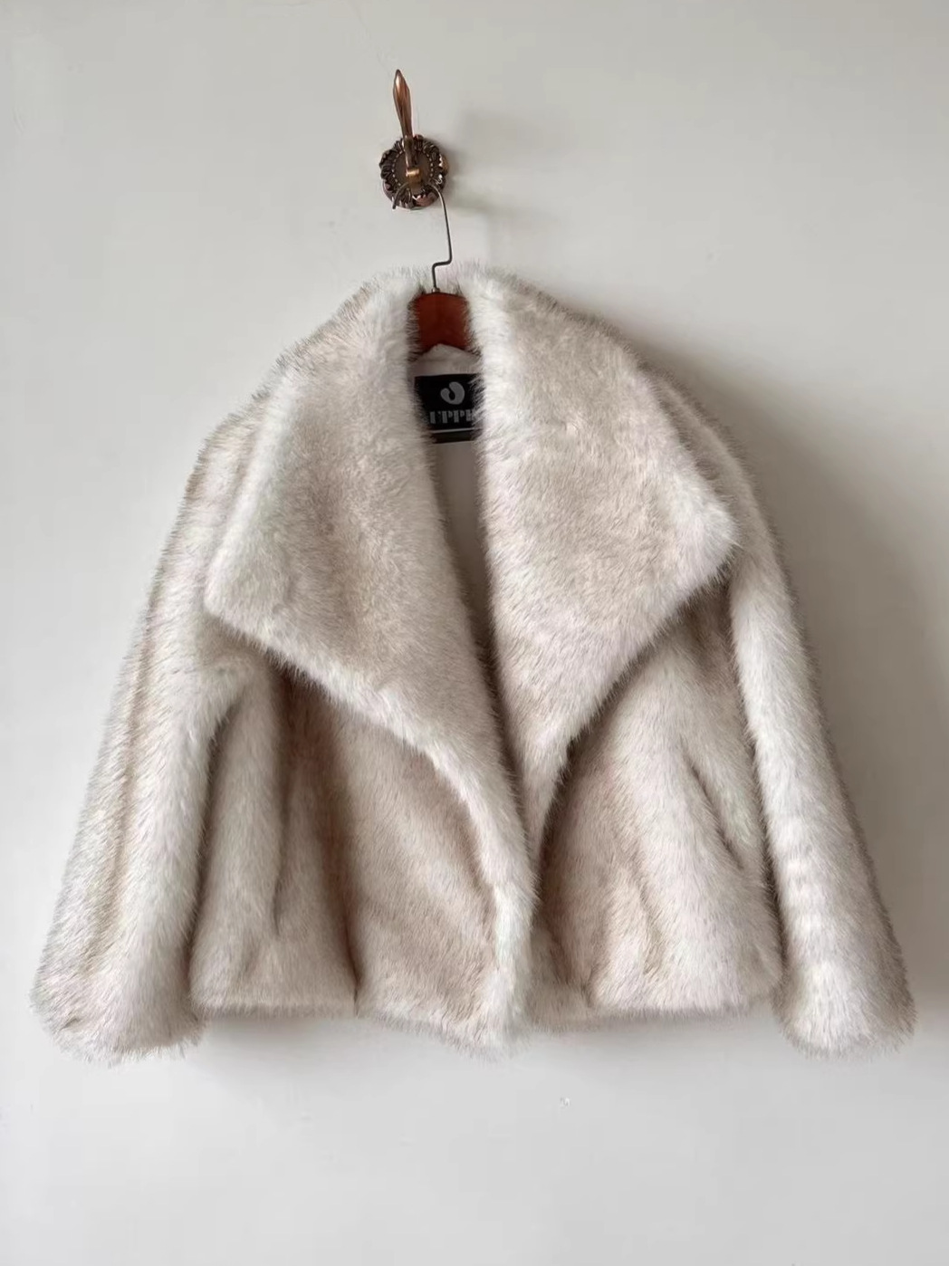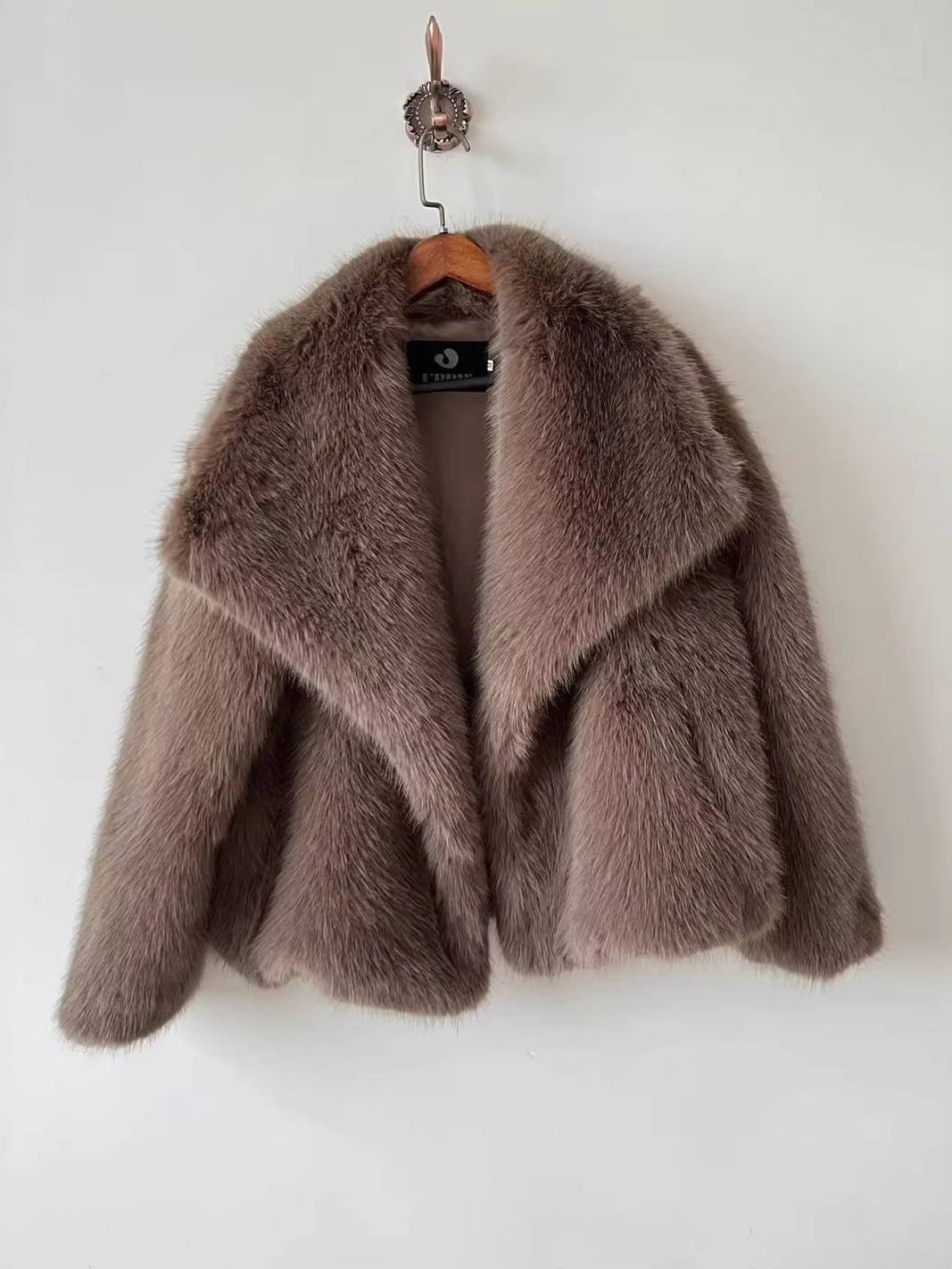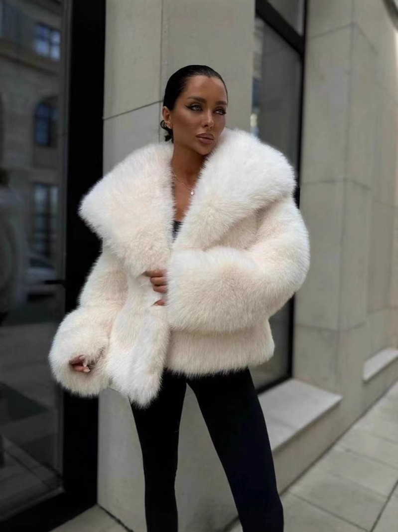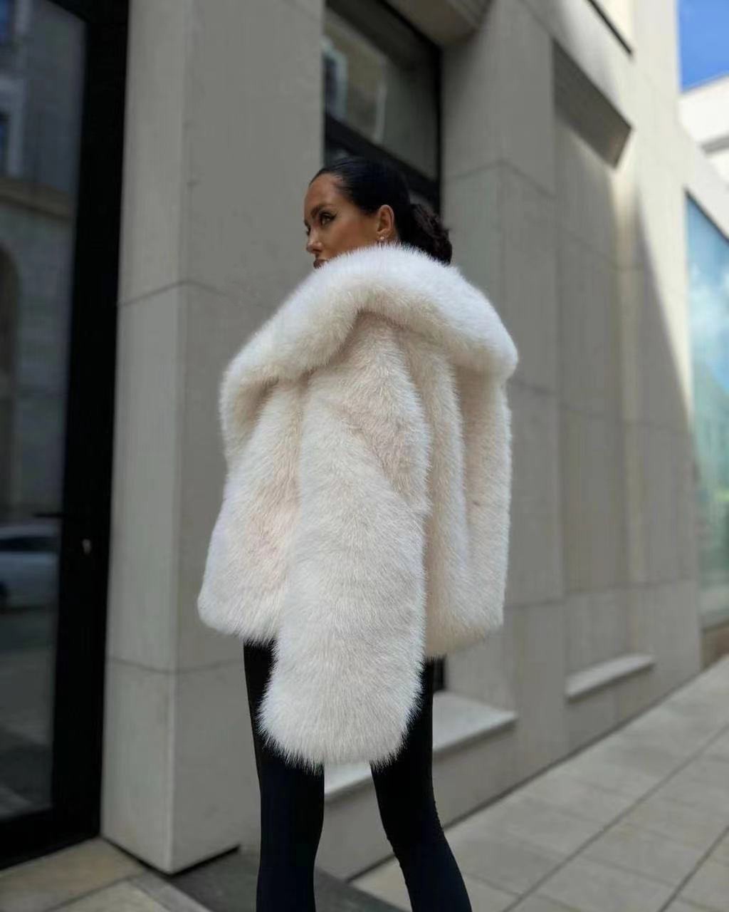跨境冬季保暖仿皮草外套大翻领柔软狐狸毛外套时尚高品质毛毛女装
