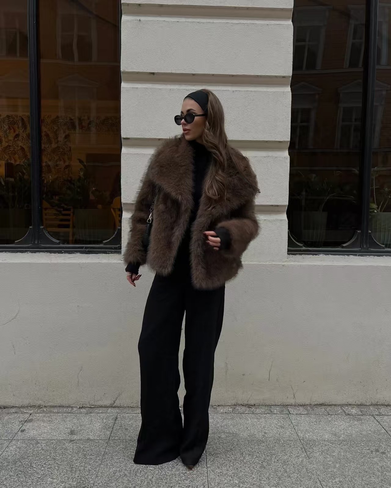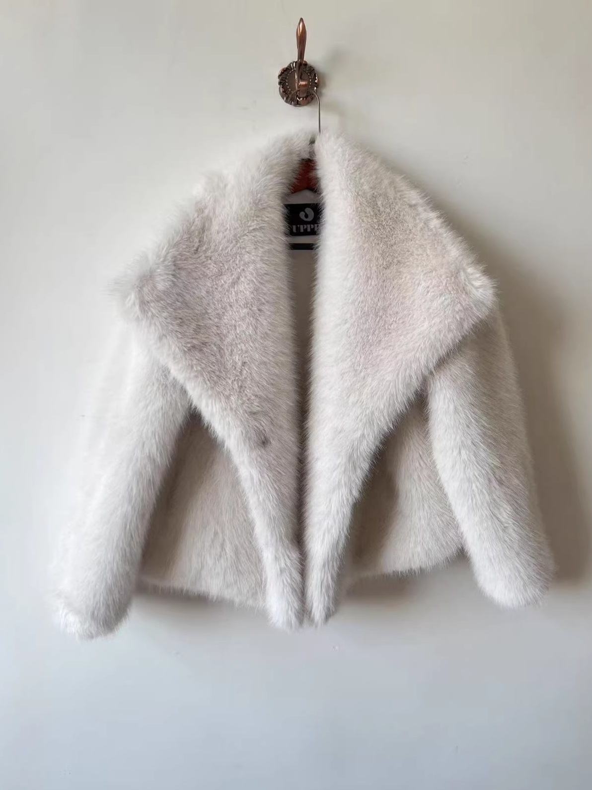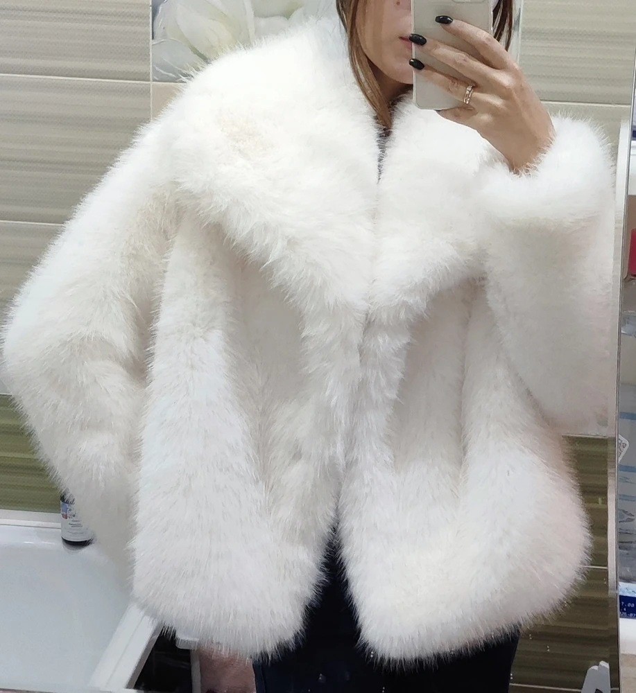 跨境冬季保暖仿皮草外套大翻领柔软狐狸毛外套时尚高品质毛毛女装