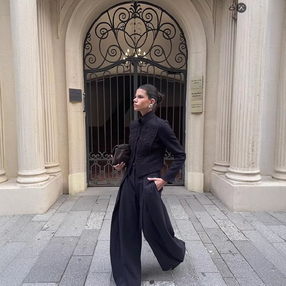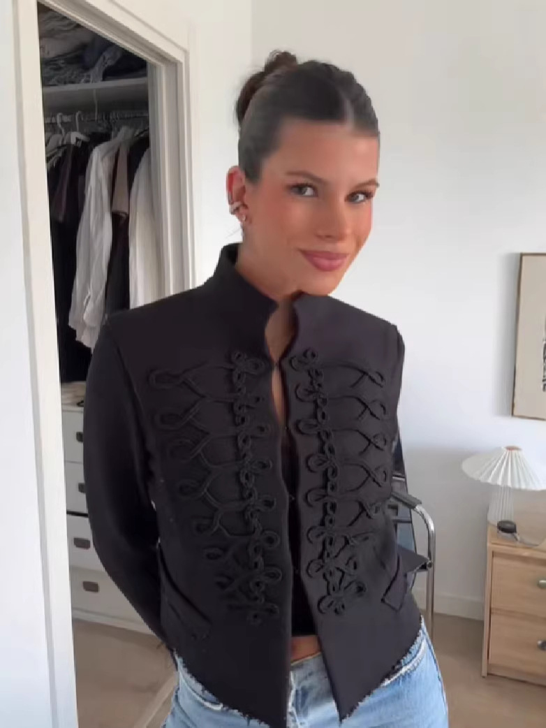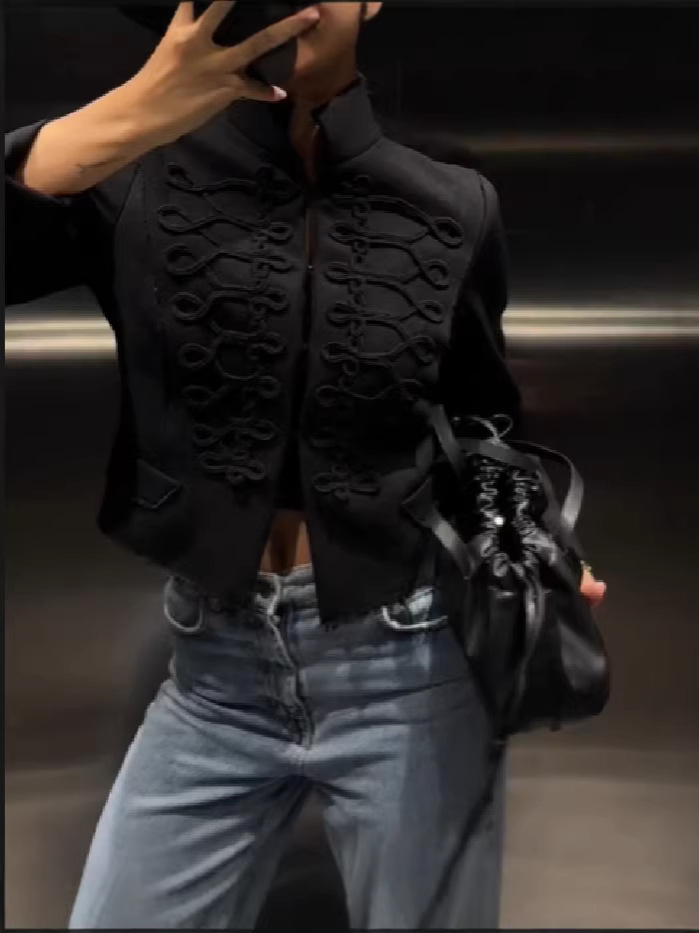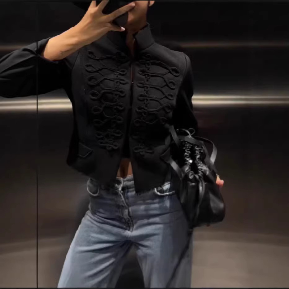 跨境速卖通2026春季新款个性复古立领盘扣短款新中式外套女