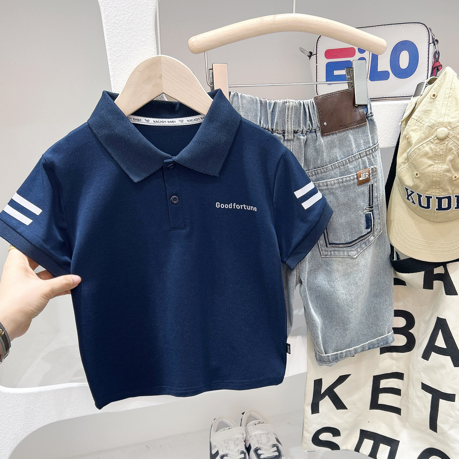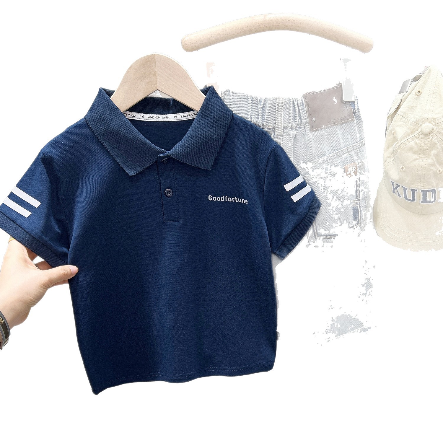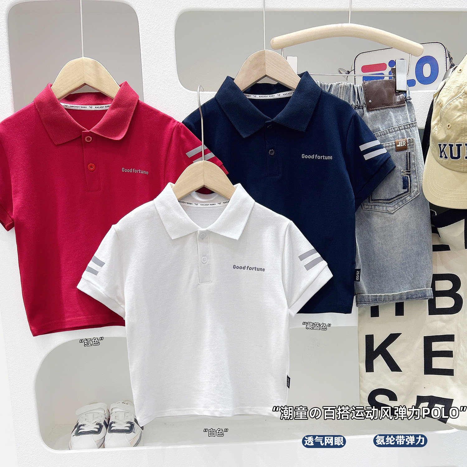 夏季中大童学生T恤衫 儿童英伦风2026夏季新款两条杠短袖POLO衫潮