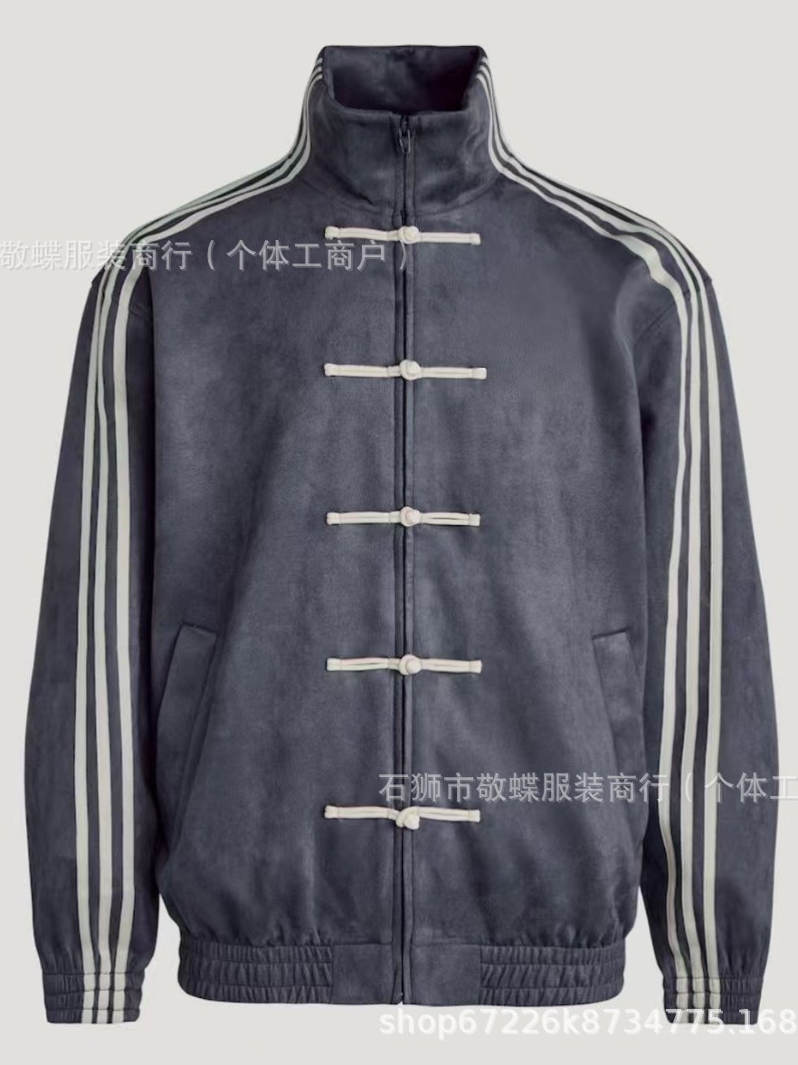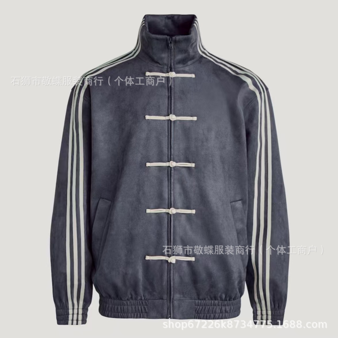 新中式外套运动盘扣复古立领夹克唐装新款三条杠