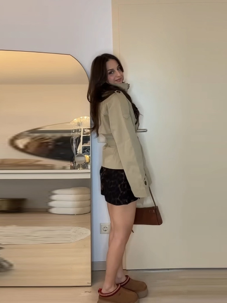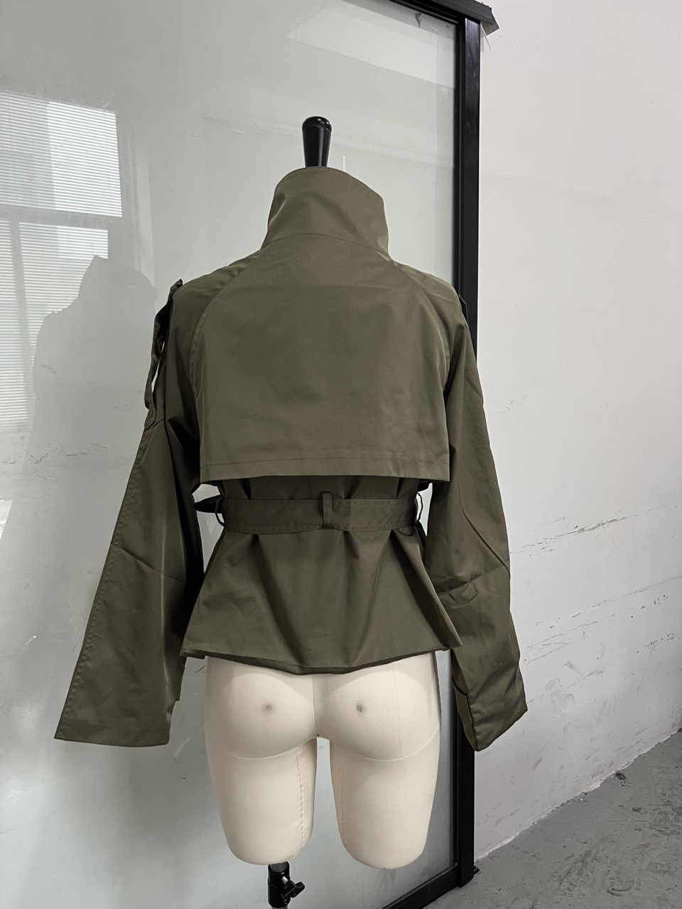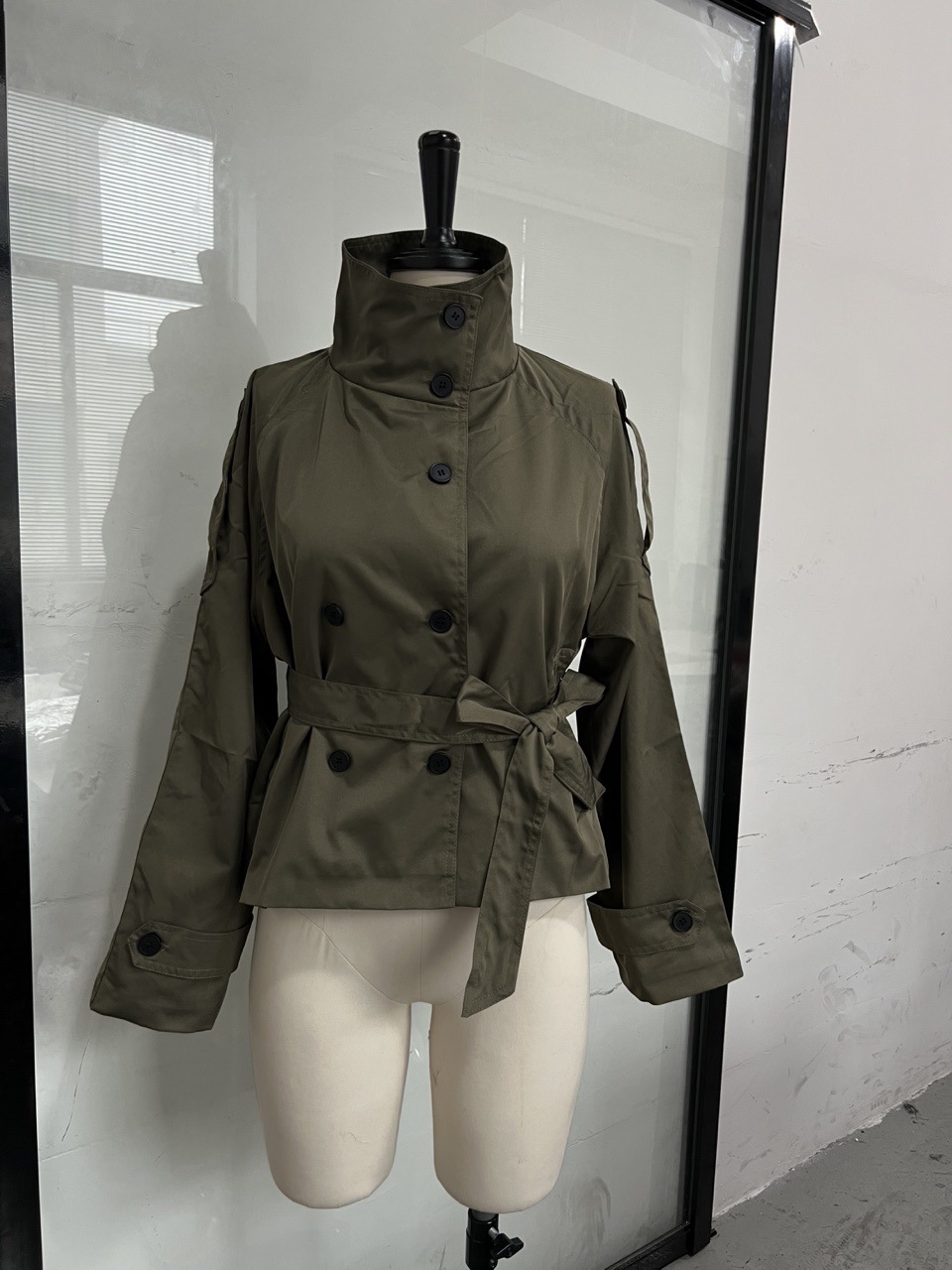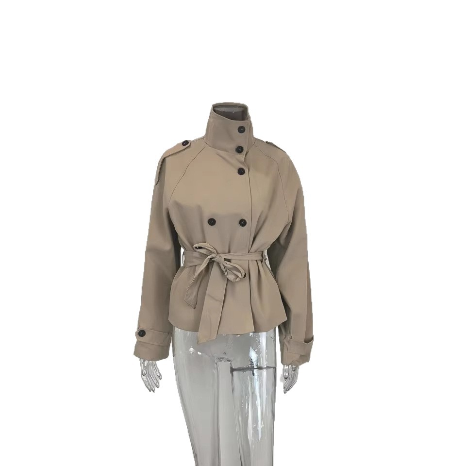 亚马逊外贸2025年秋季新款设计感立领系带双排扣短款风衣外套女