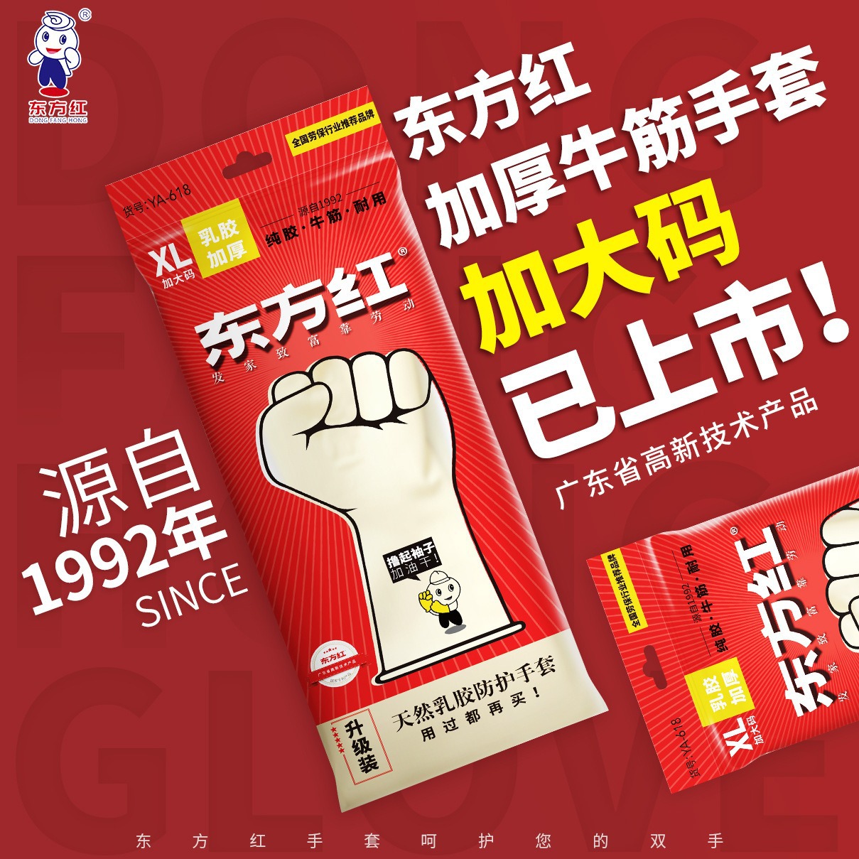 Красные резиновые перчатки Dongfang Резиновые перчатки для мойки автомобилей Чистка Перчатки для мытья посуды Промышленные перчатки из говяжьего сухожилия Утолщенные противоскользящие анти-кислоты и щелочи