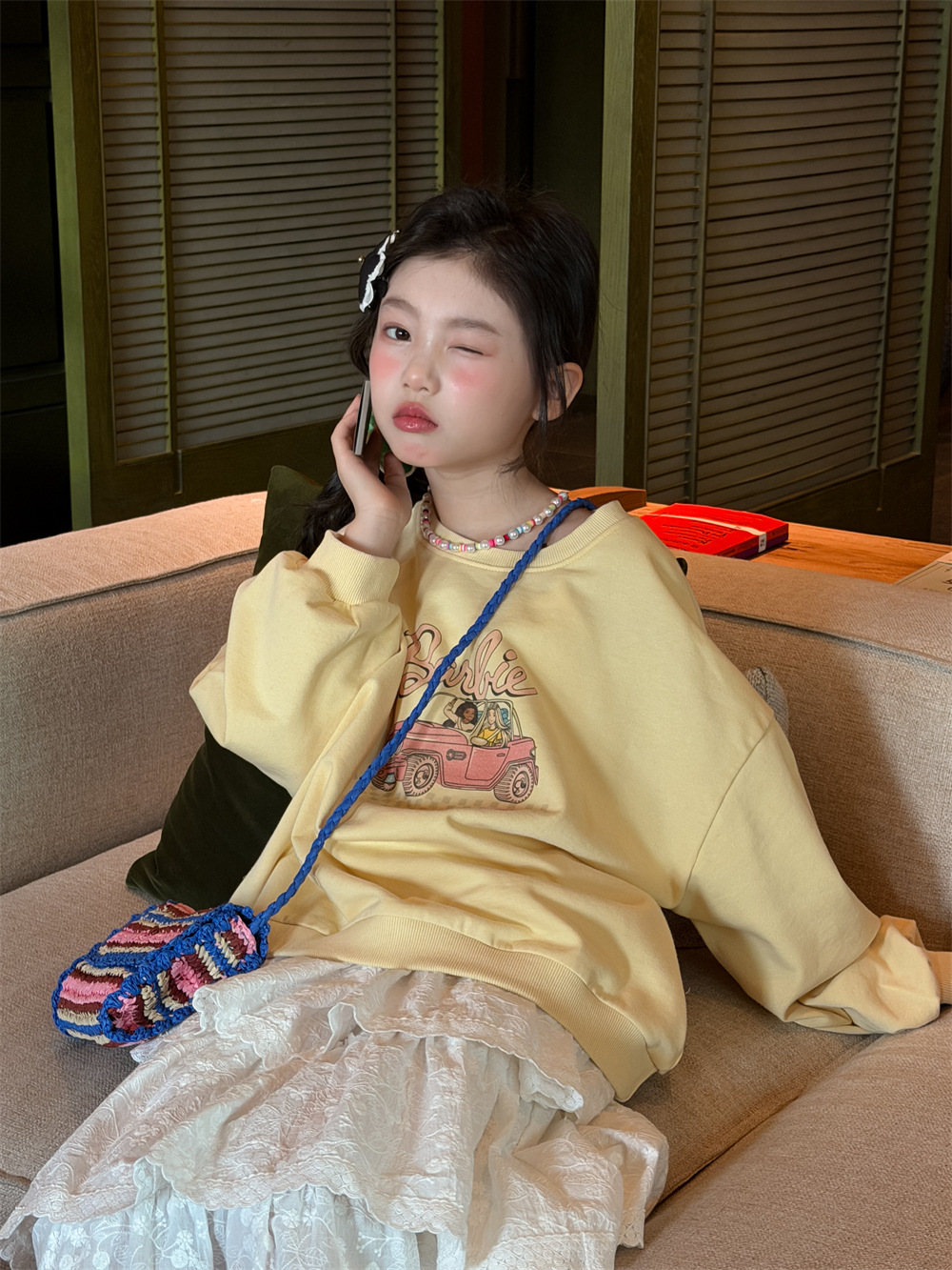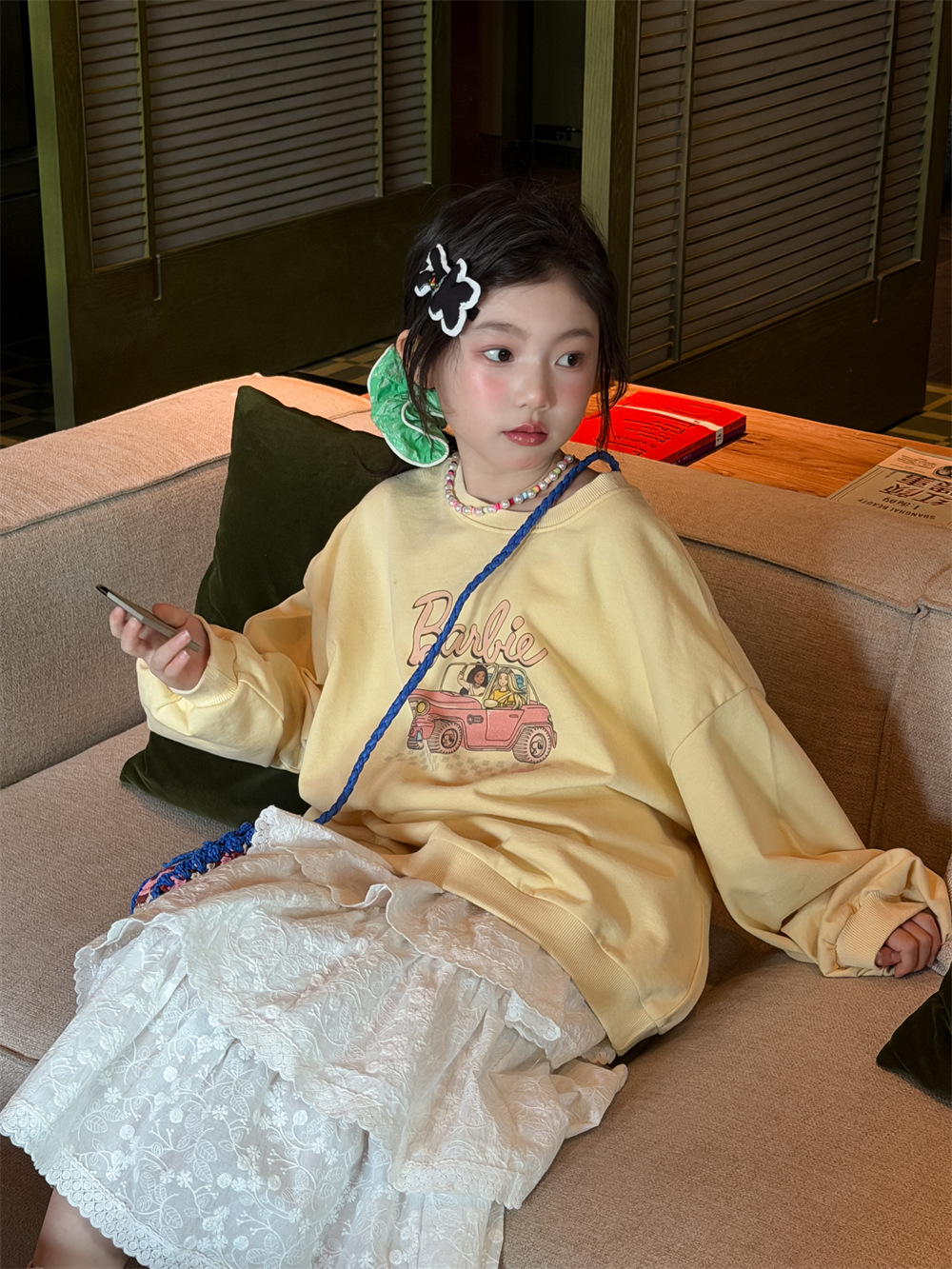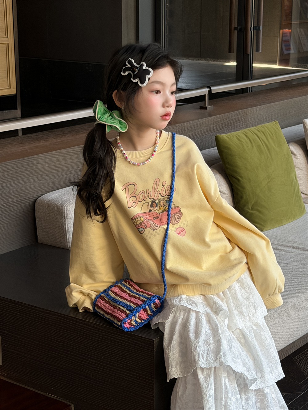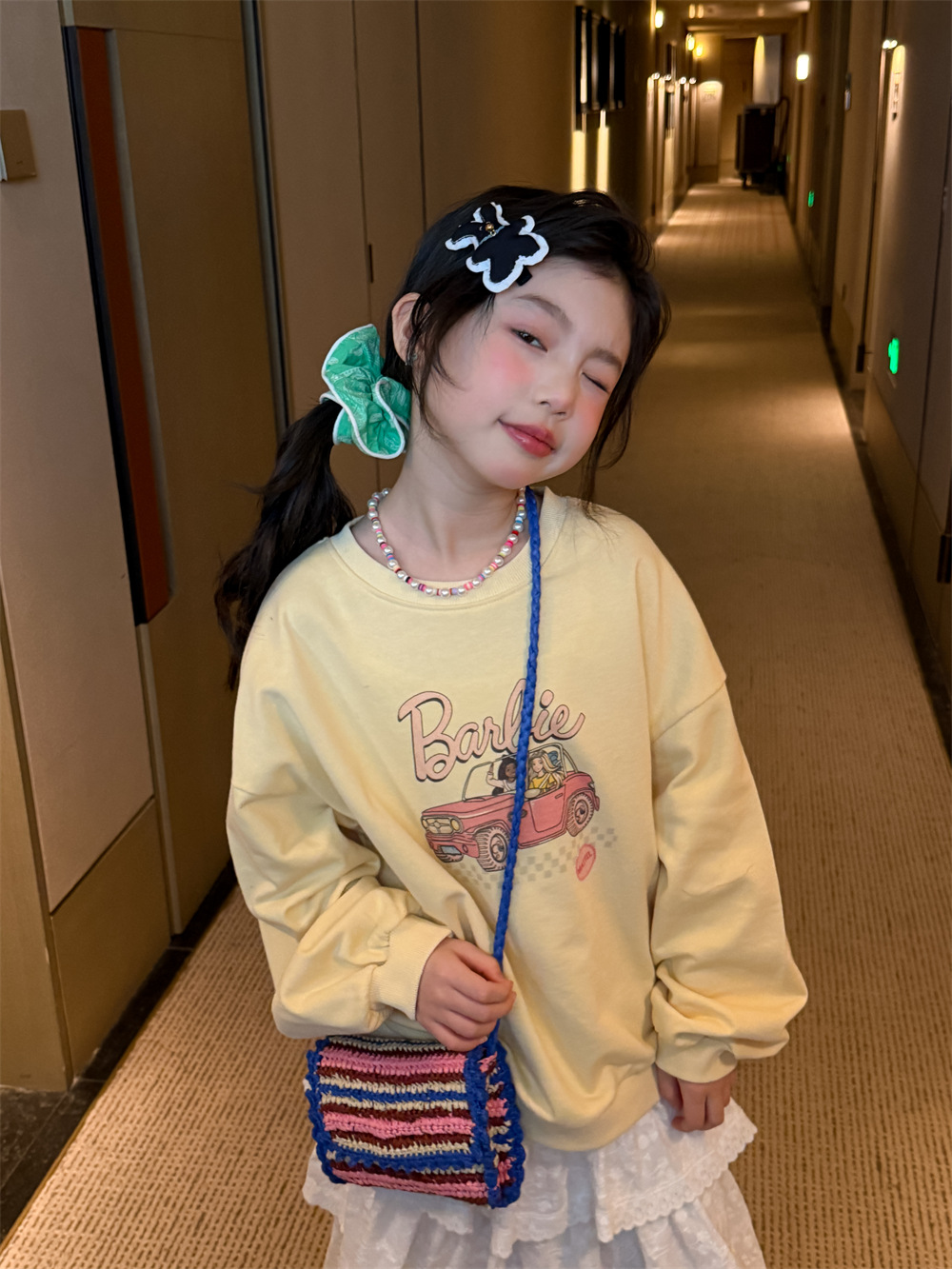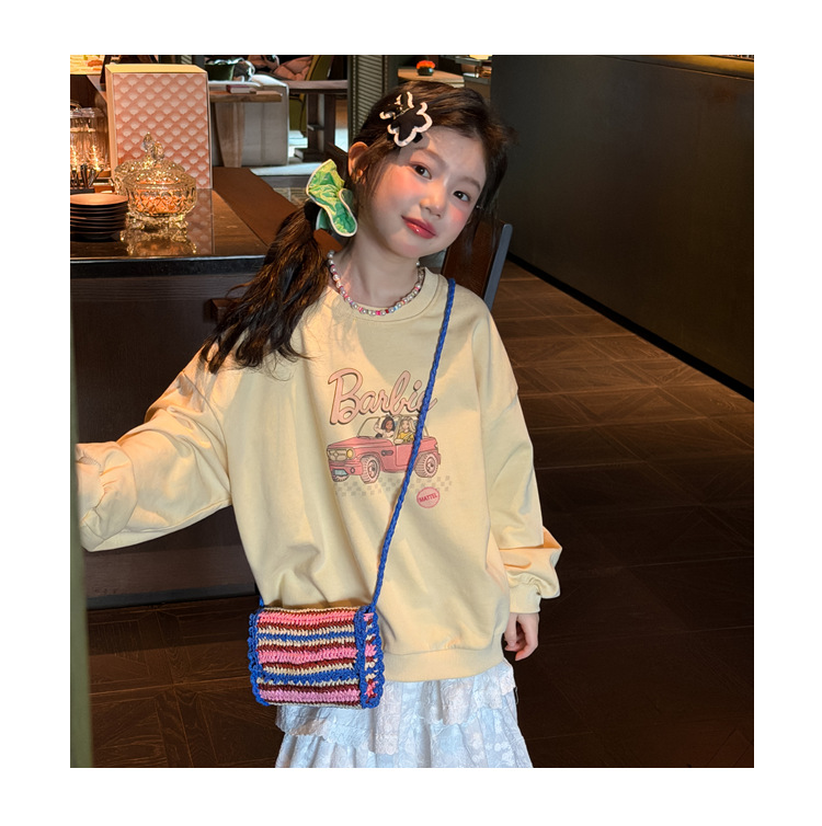 花与寻童装女童卫衣2026年春款芭比印花软糯亲肤宽松休闲百搭上衣