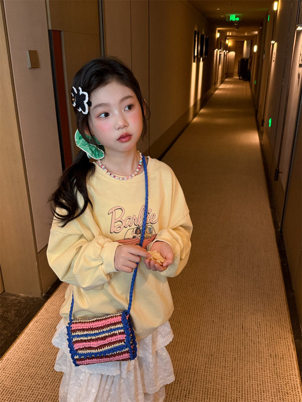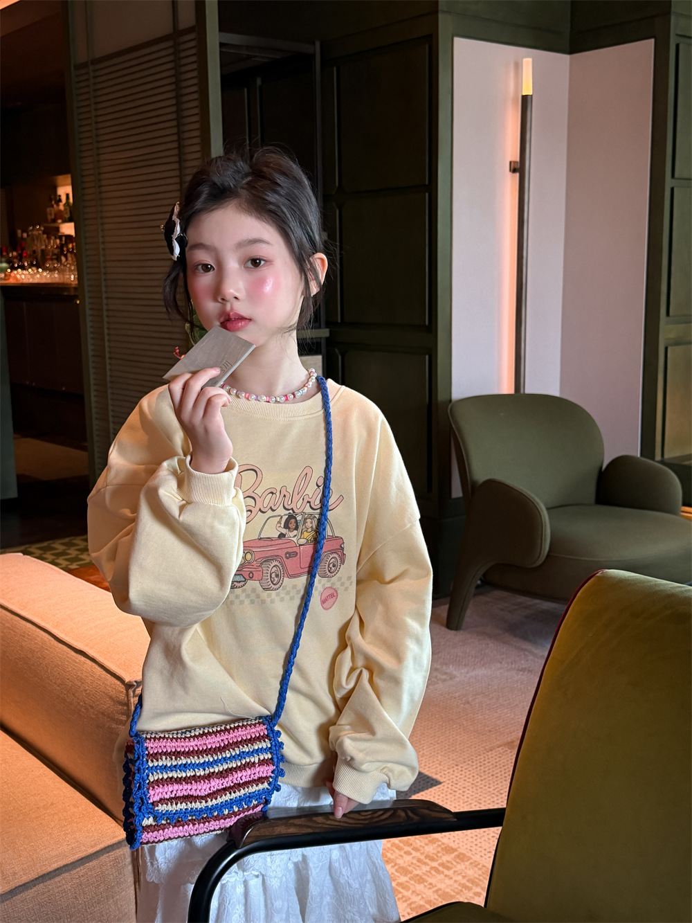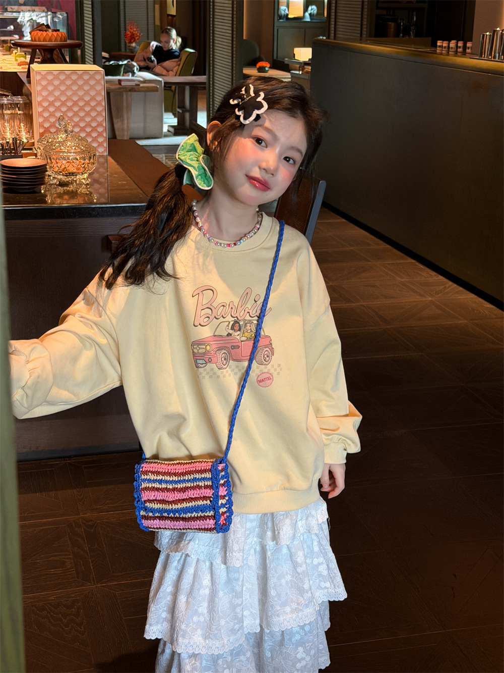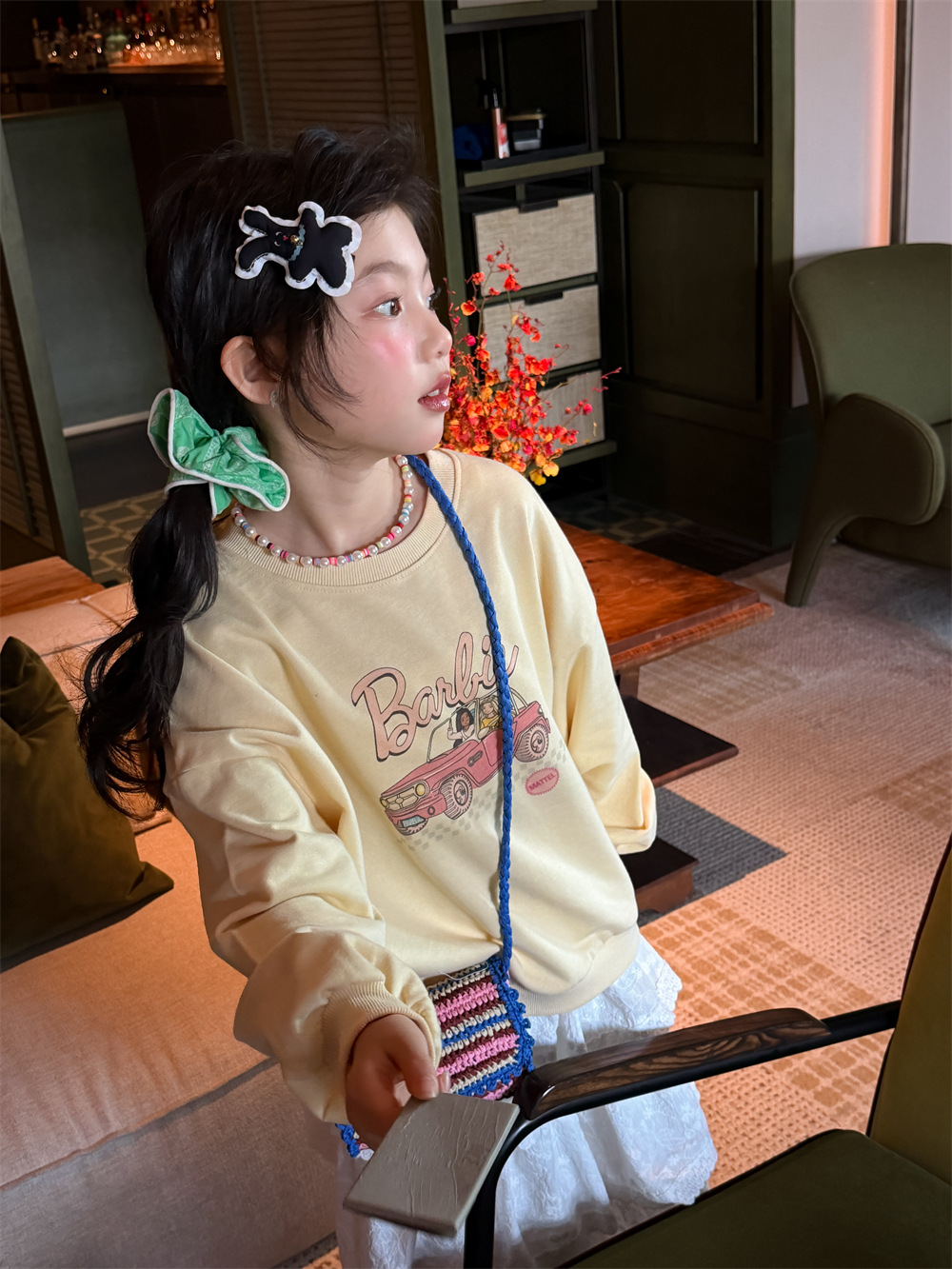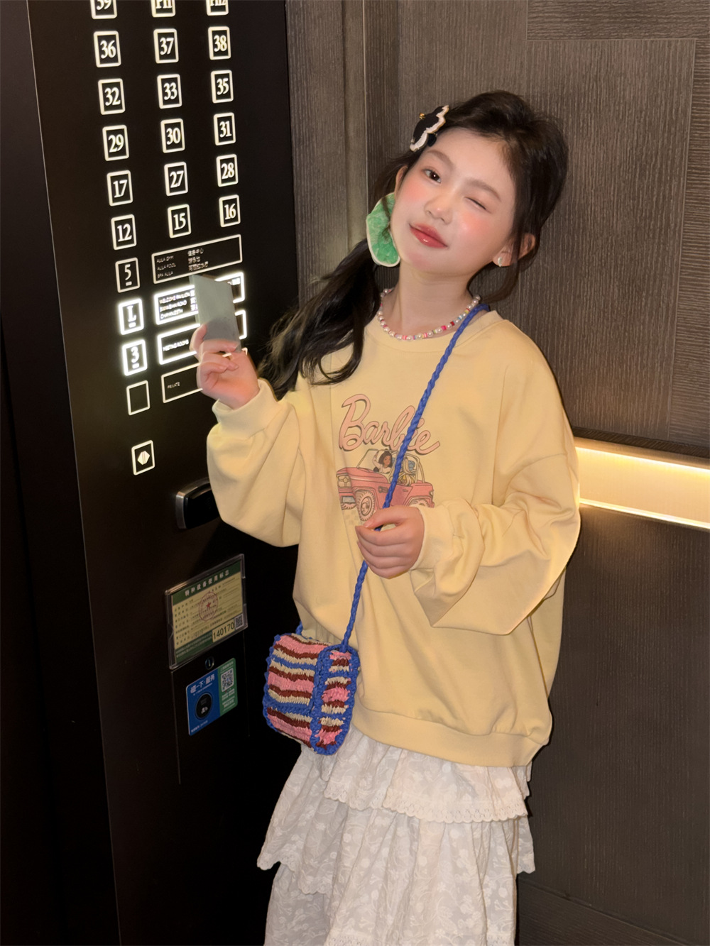花与寻童装女童卫衣2026年春款芭比印花软糯亲肤宽松休闲百搭上衣