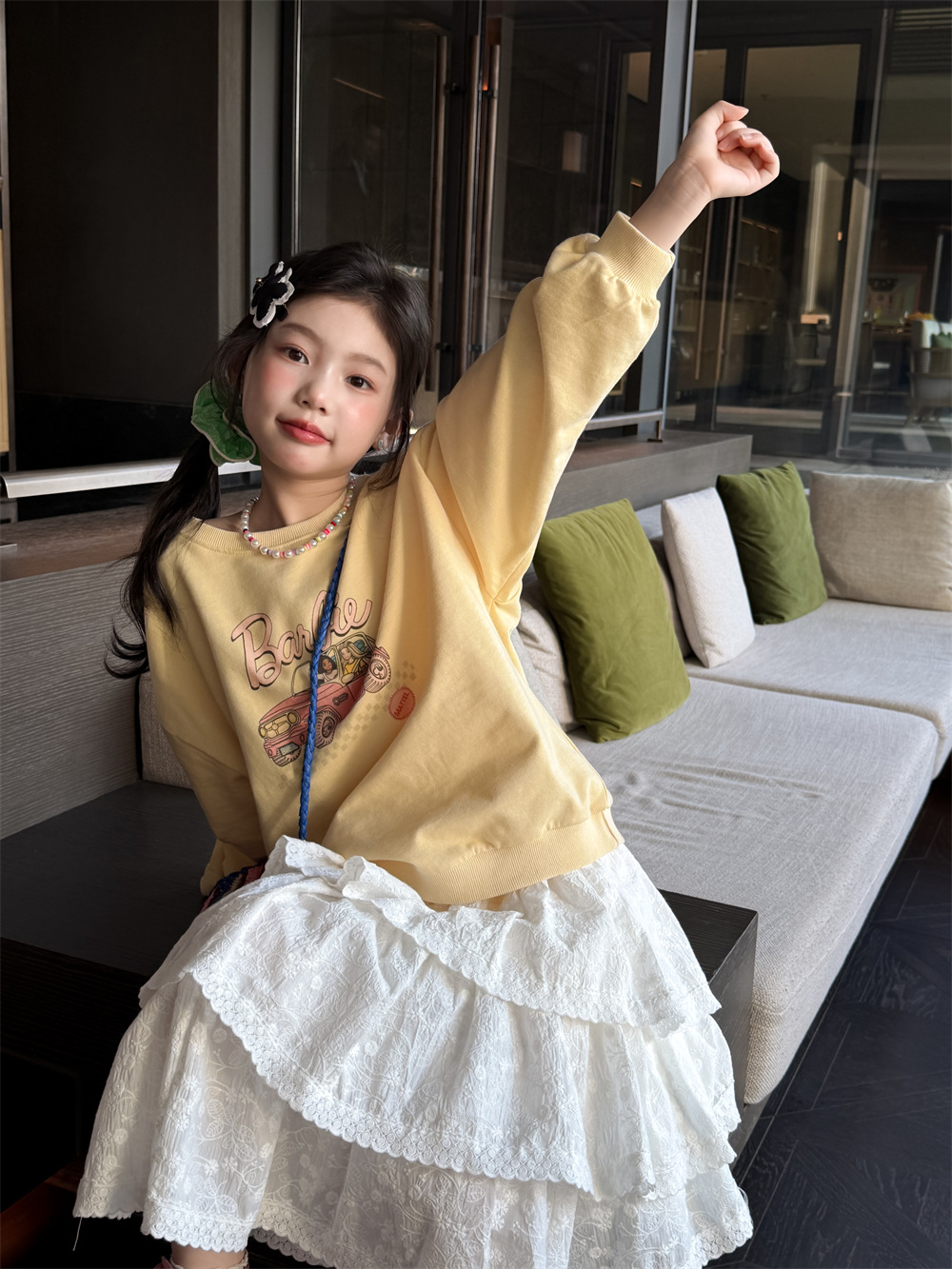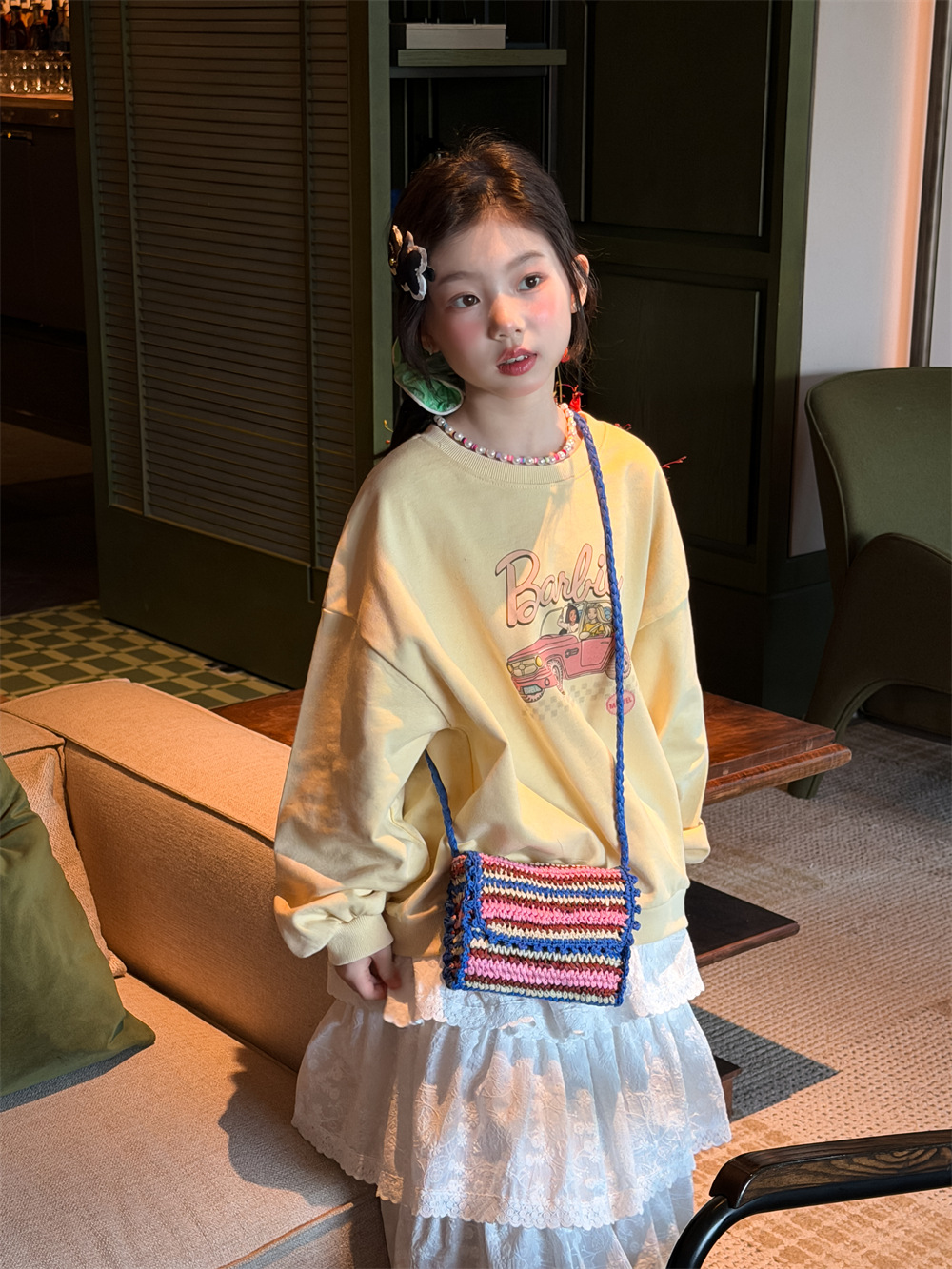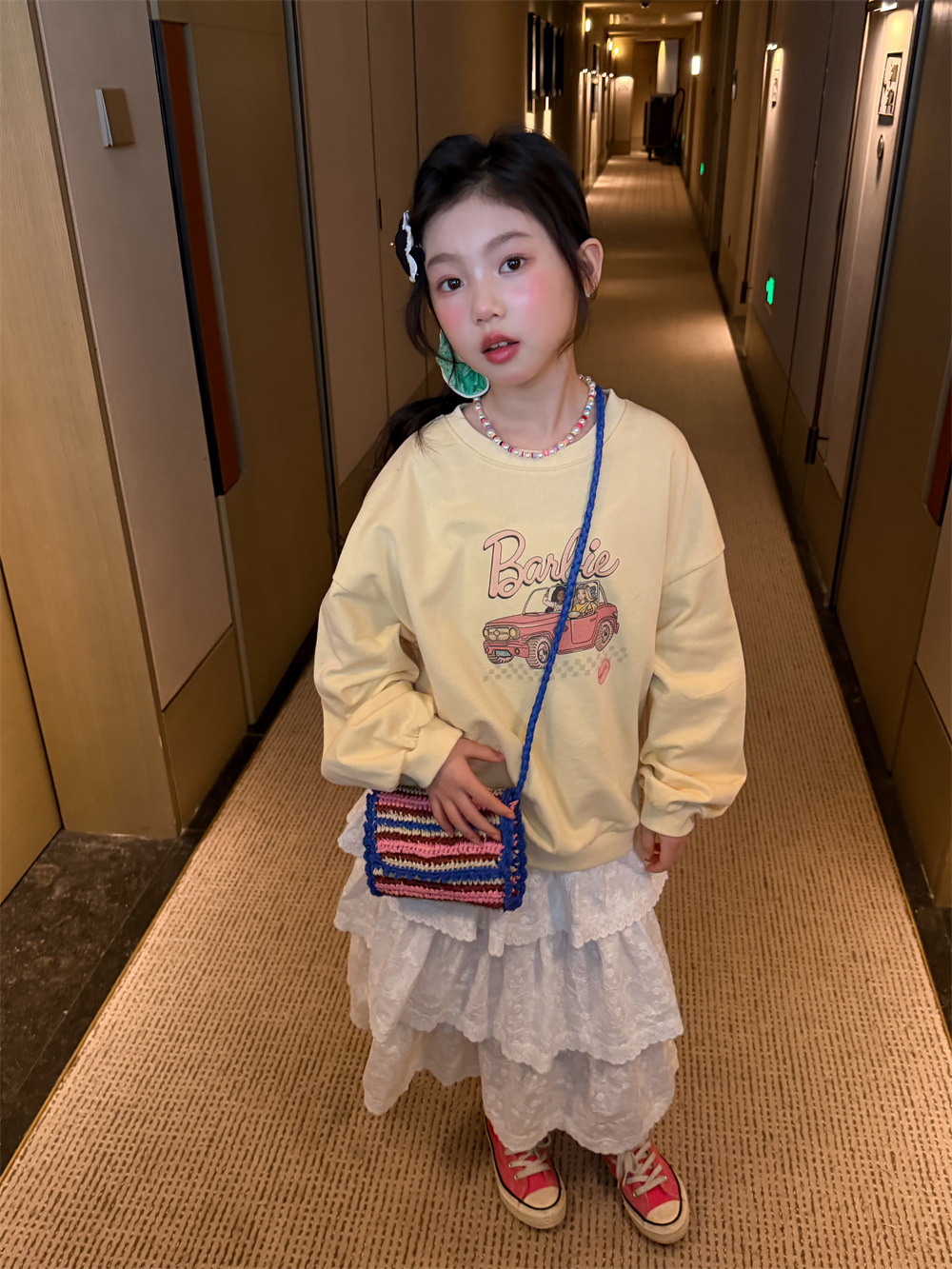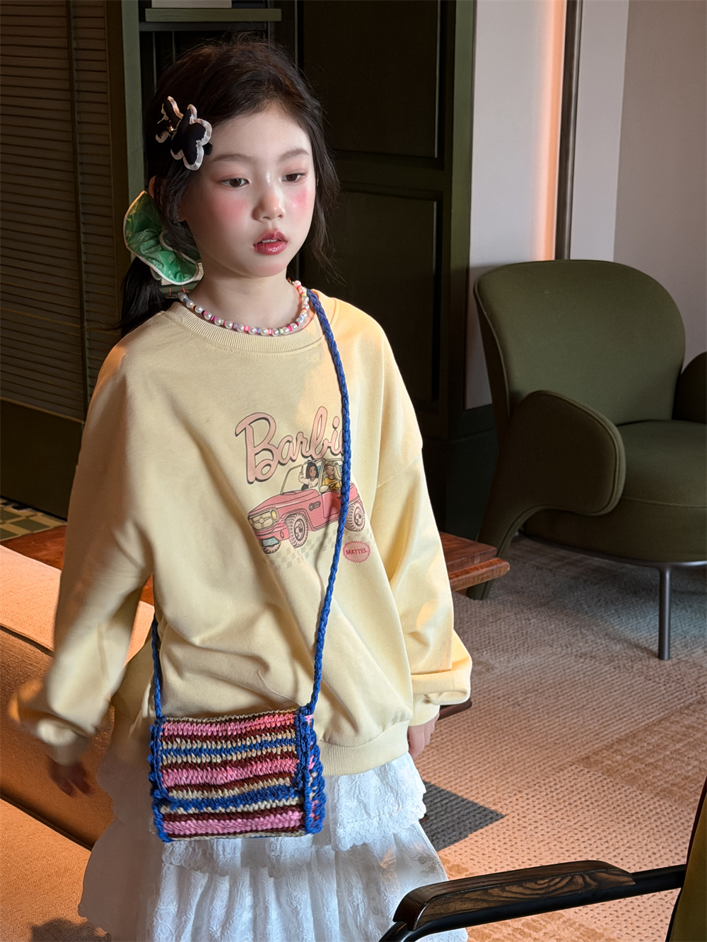 花与寻童装女童卫衣2026年春款芭比印花软糯亲肤宽松休闲百搭上衣