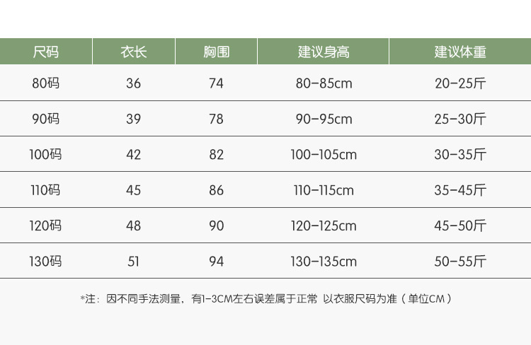80cm; 90cm; 100cm; 110cm; 120cm; 130cm