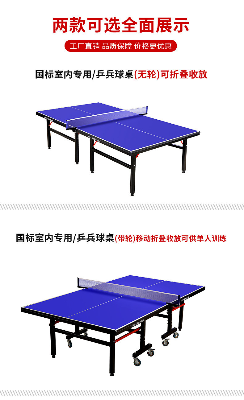 乒乓球桌室内可折叠带轮移动比赛乒乓球台家用成人标准球台案