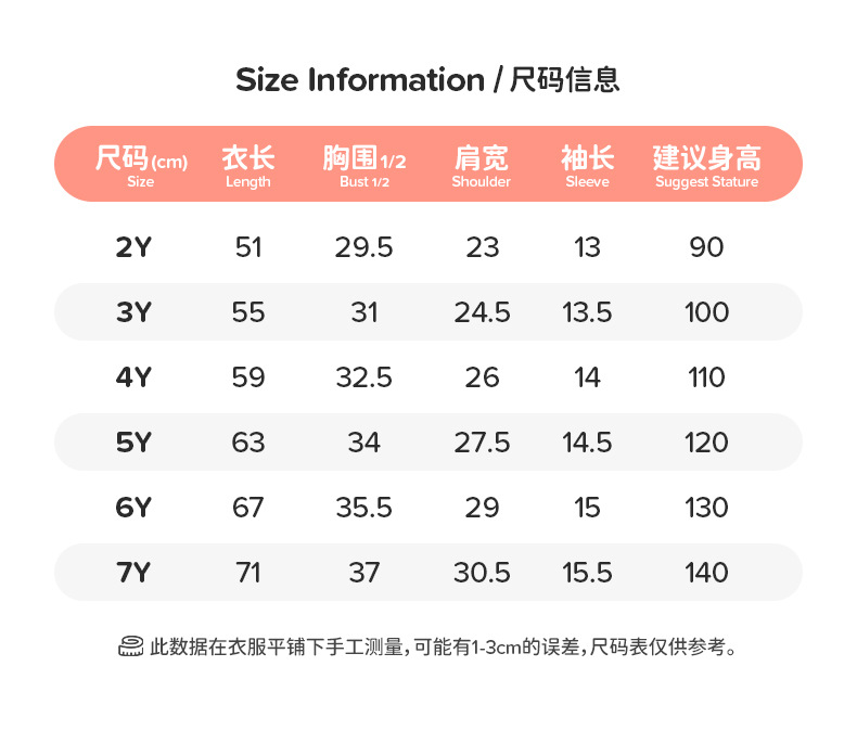 2Y(90cm); 3Y(100cm); 4Y(110cm); 5Y(120cm); 6Y(130cm); 7Y(140cm)