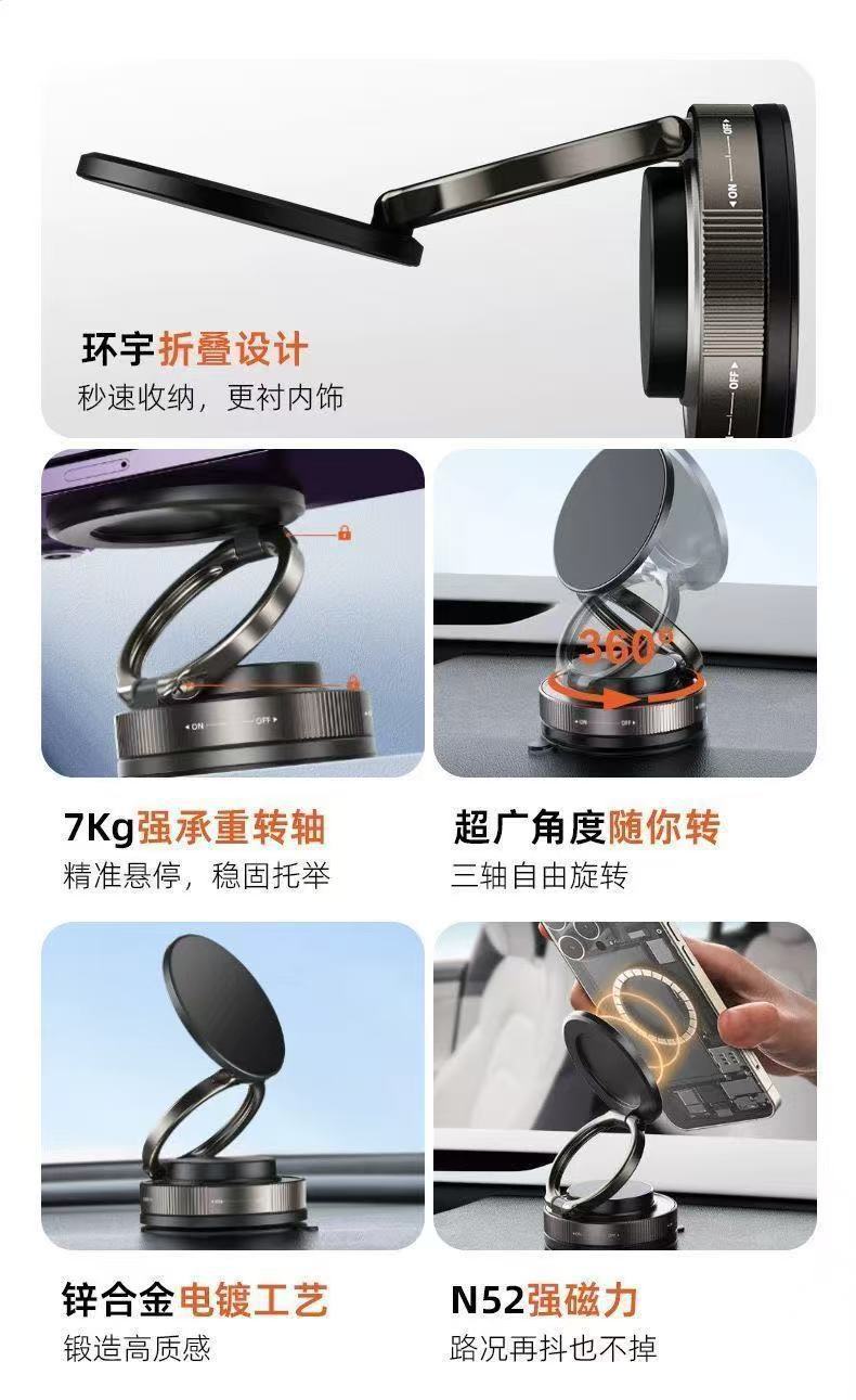 真空吸附车载手机支架磁吸汽车导航支架车载支架手机导航手机支架