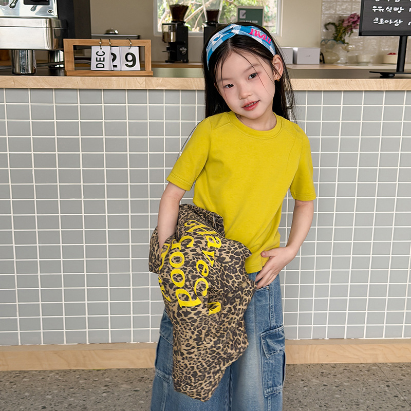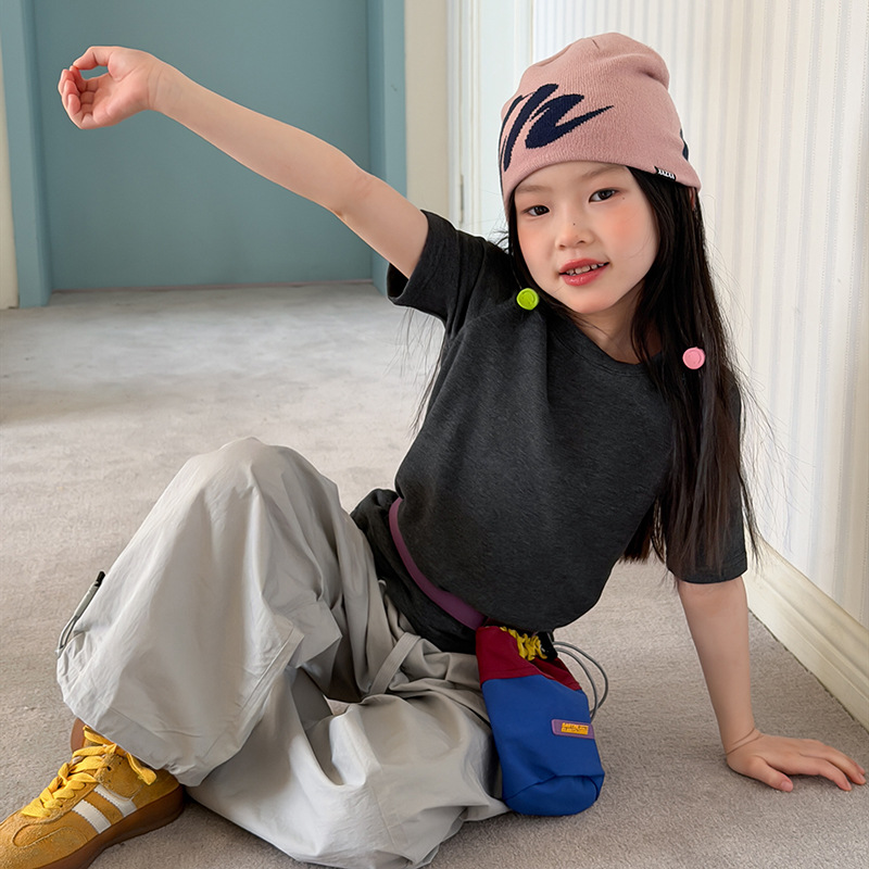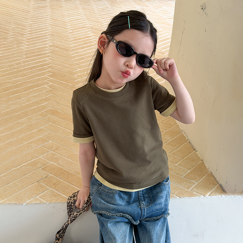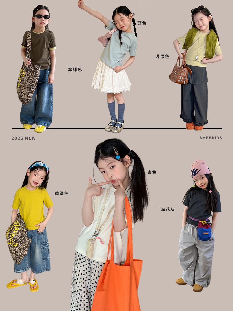 童装儿童短袖2026夏女童韩系洋气后背小字母印花纯色基础T恤