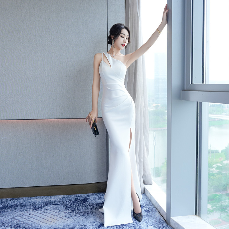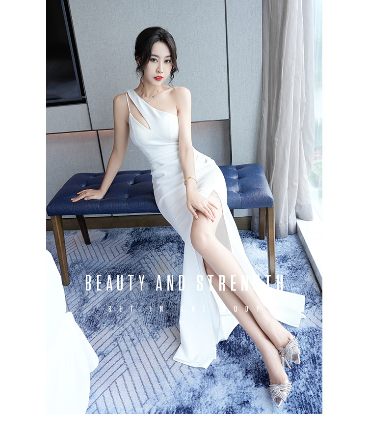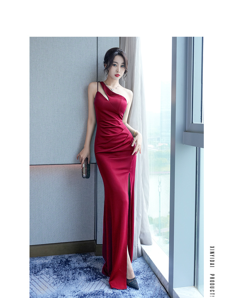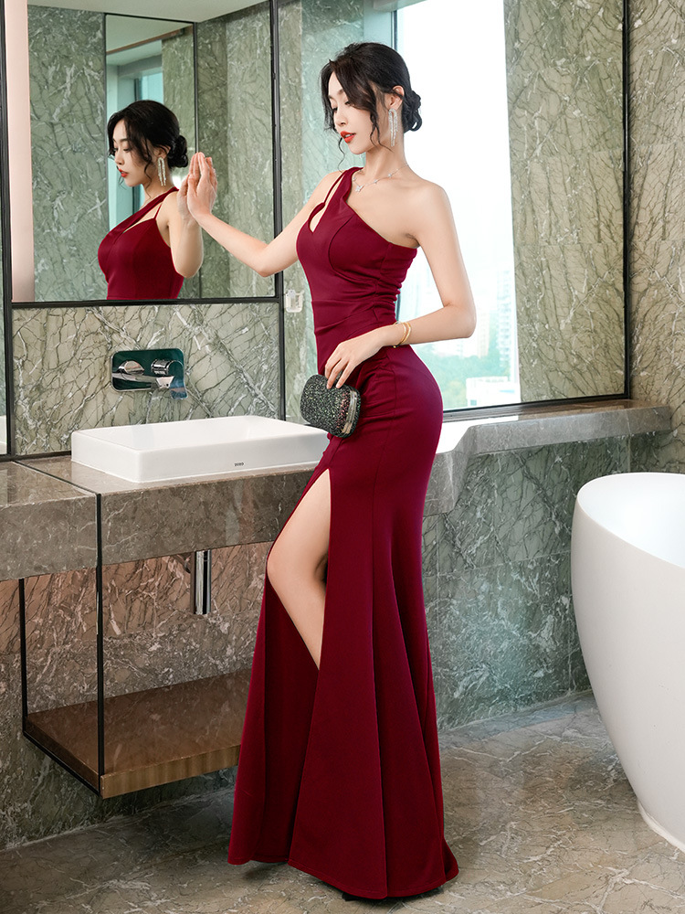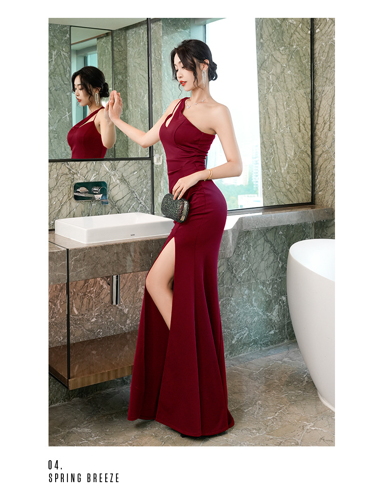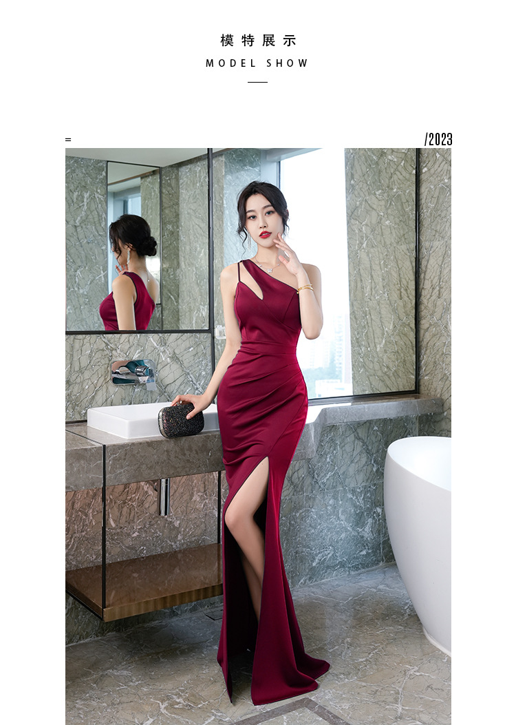 晚礼服轻奢小众设计感气质包臀斜肩ktv会所佳丽长裙夜场上班衣服