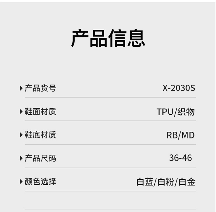 2030白粉(标准运动鞋尺码); 2030白金(标准运动鞋尺码); 2030白绿(标准运动鞋尺码)