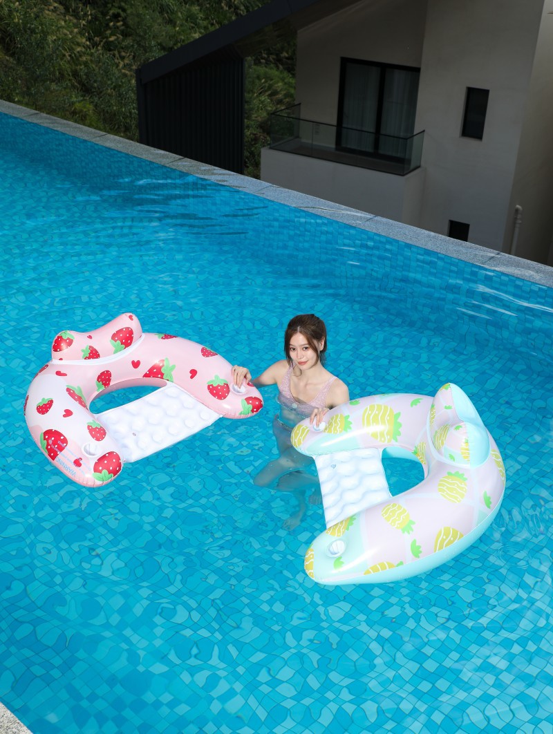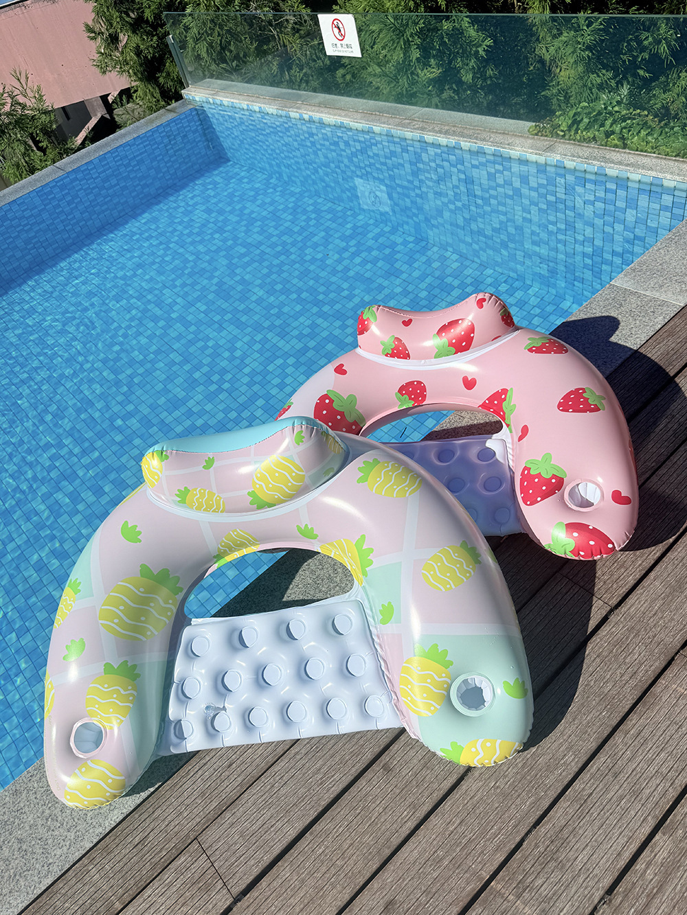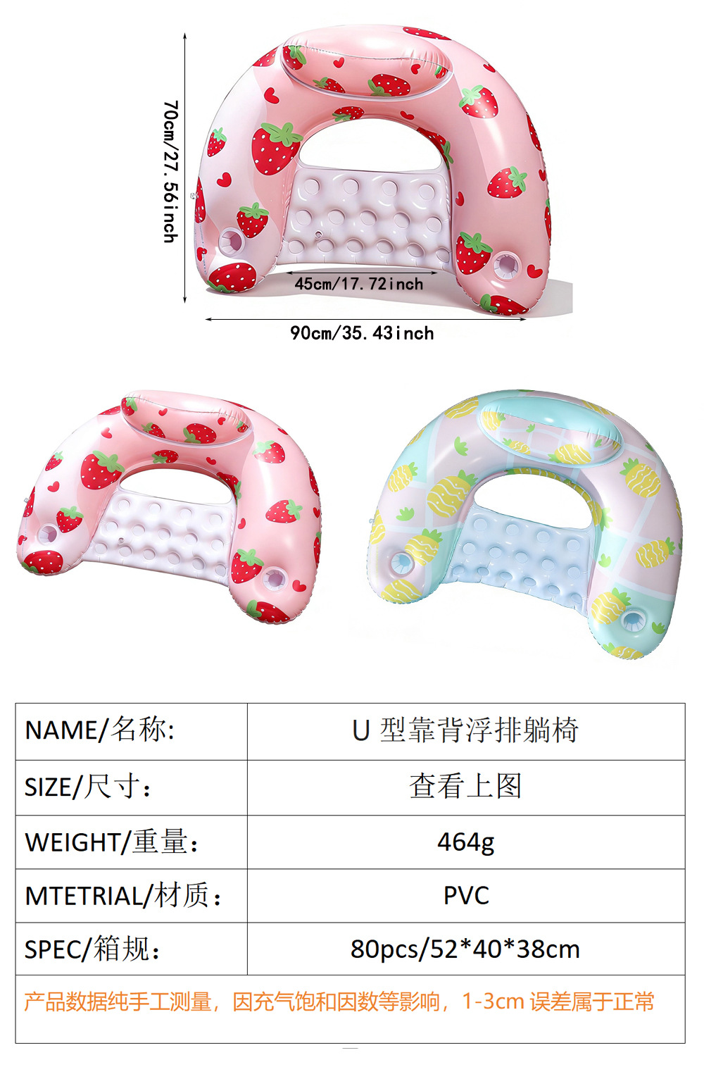 畅游 ins泳池充气浮床菠萝草莓U型躺椅充气浮排网红游泳圈躺椅