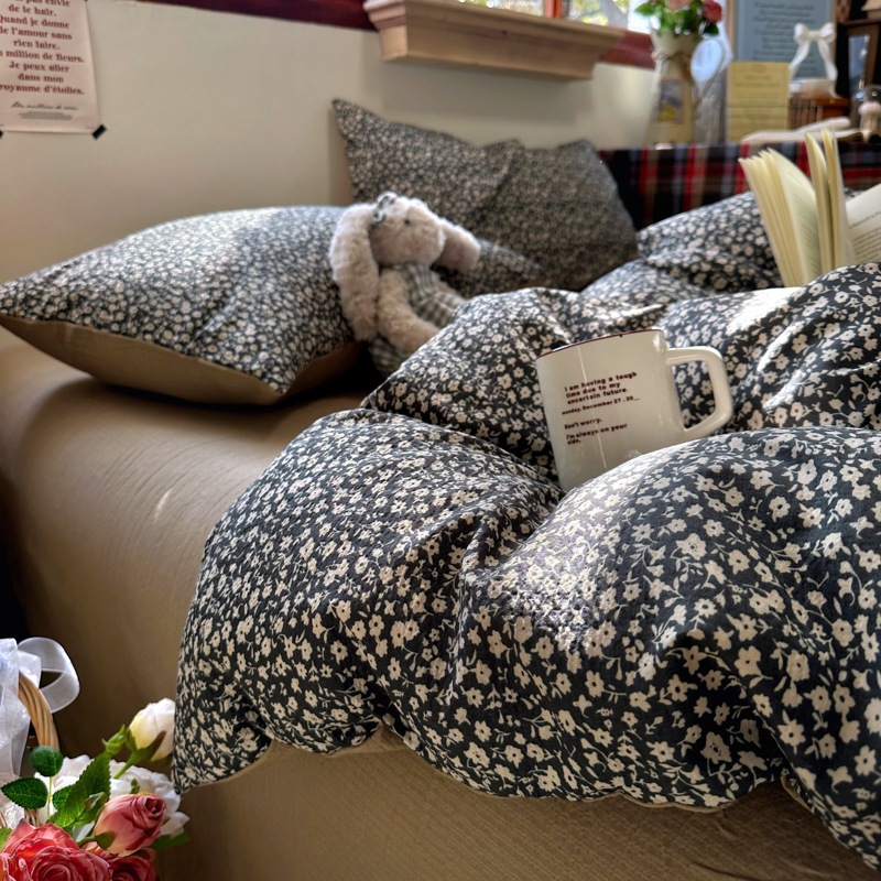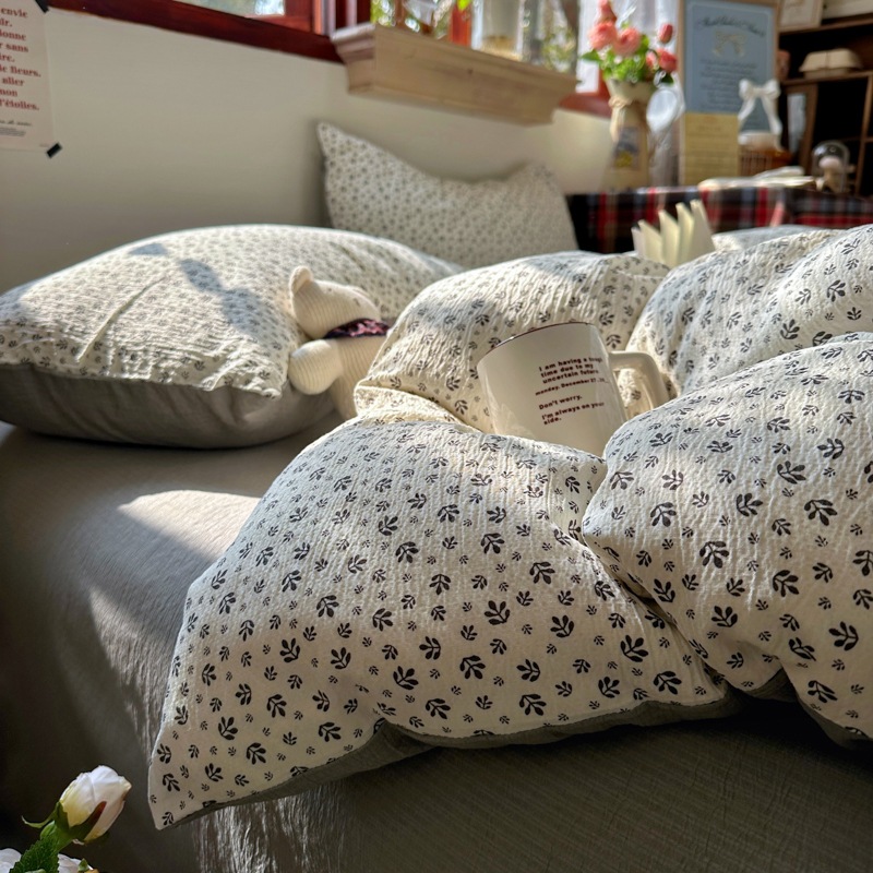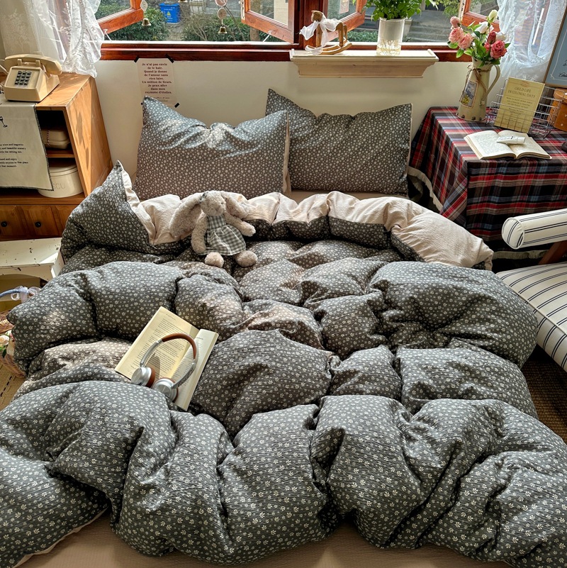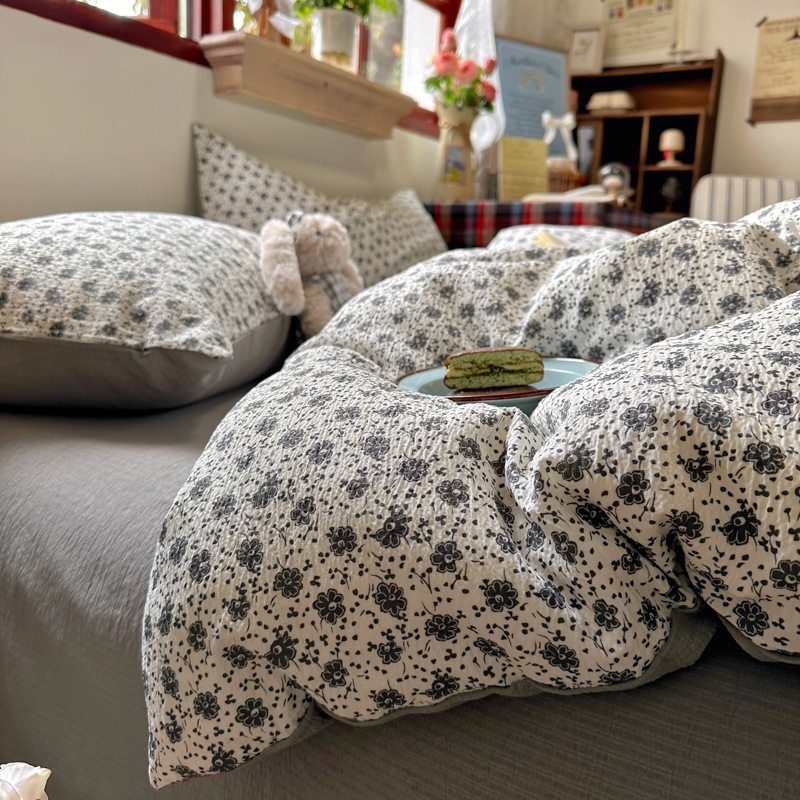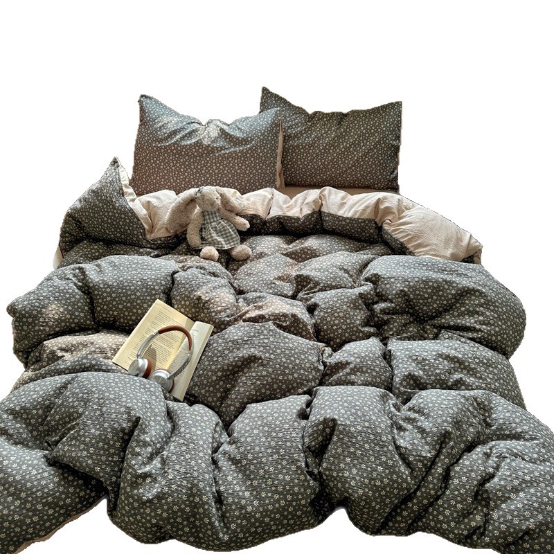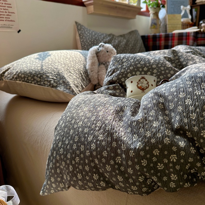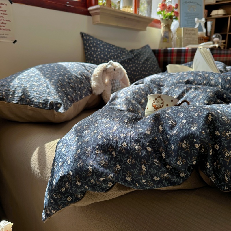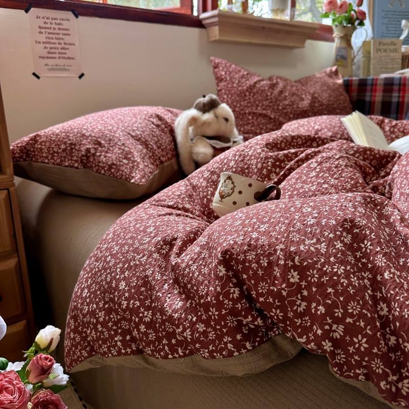 全棉韩系复古小碎花床上四件套a类母婴裸睡纯棉床单笠被罩宿舍三