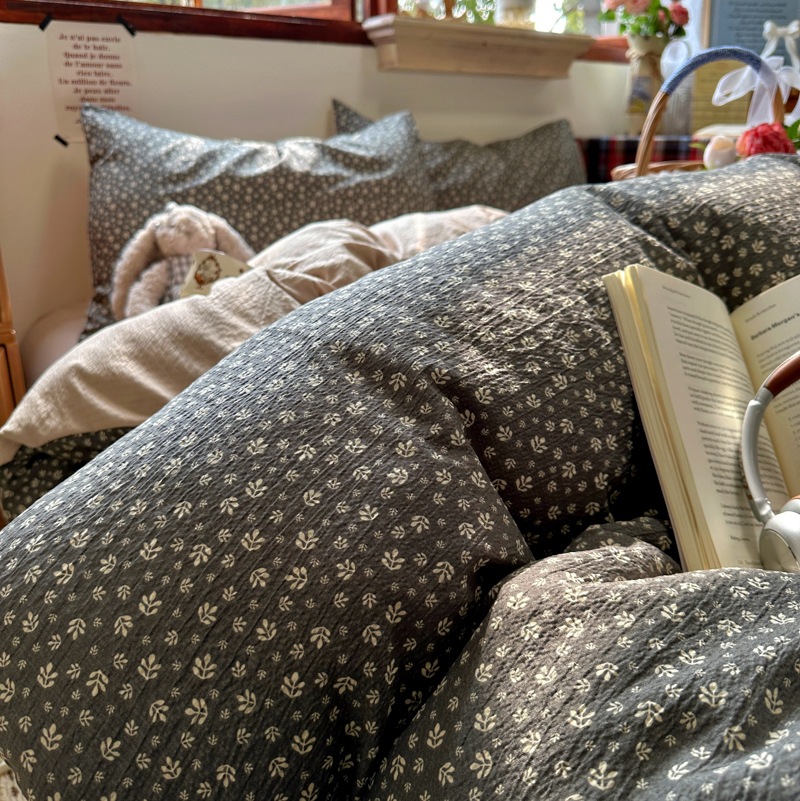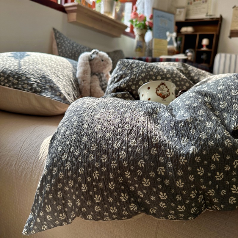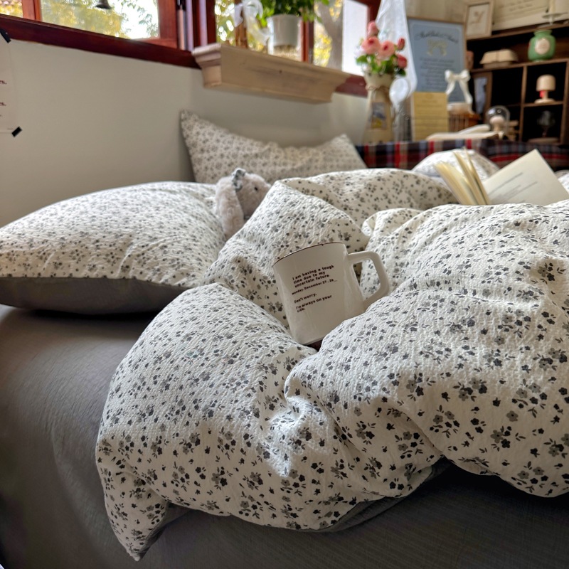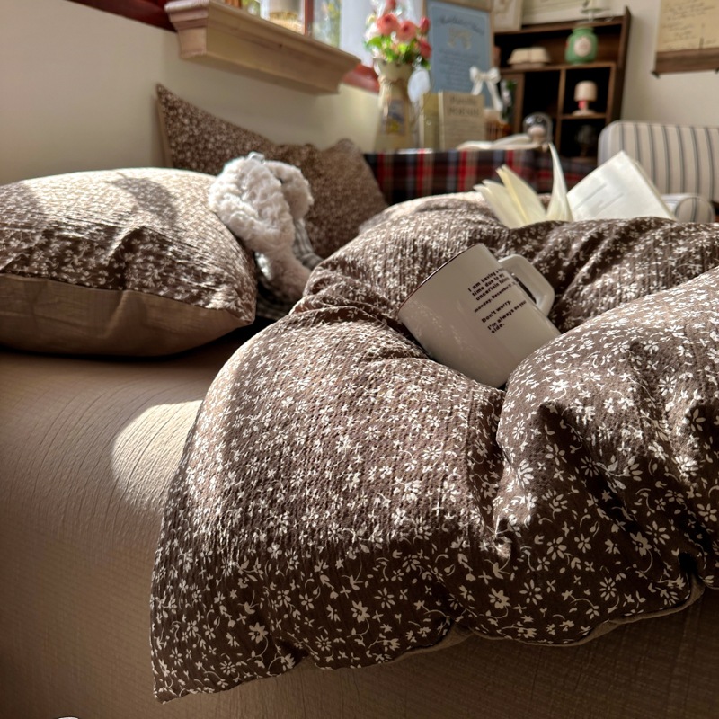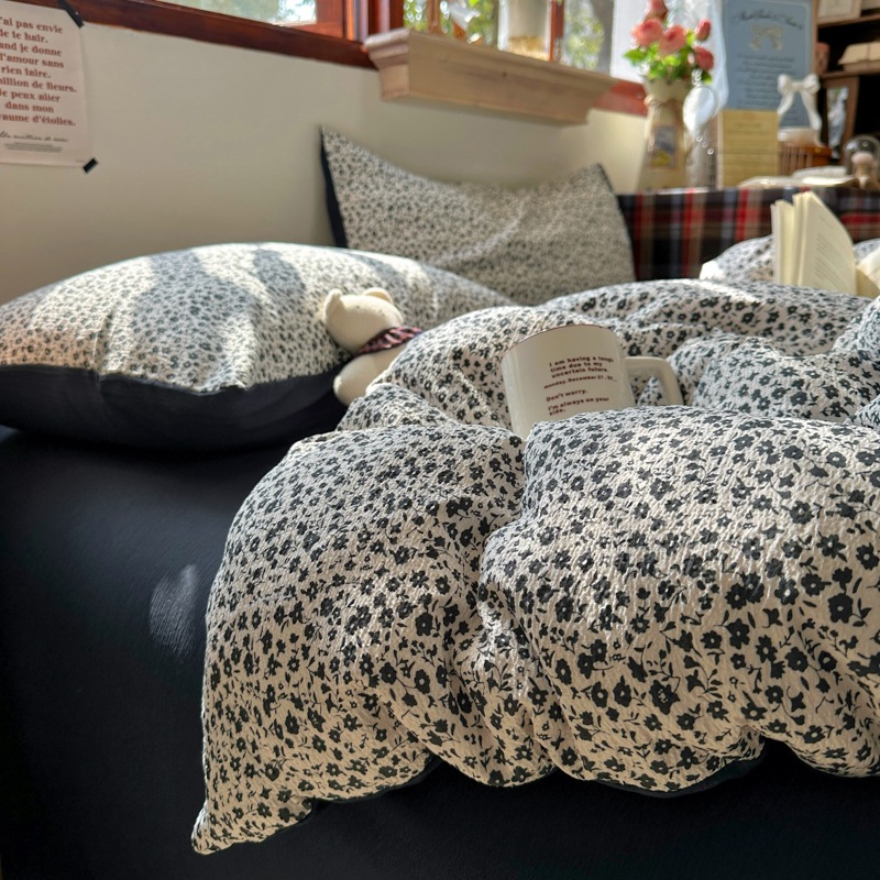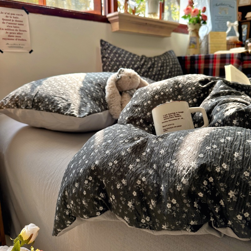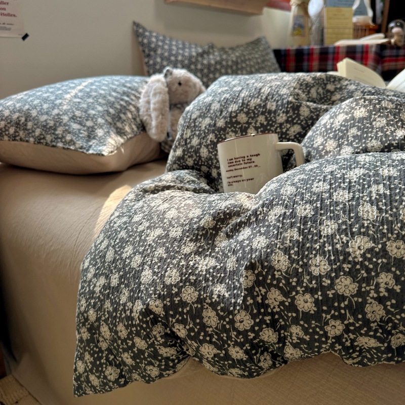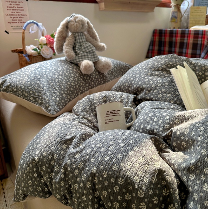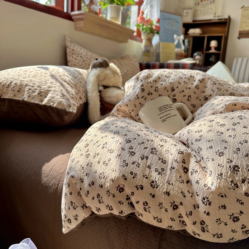 全棉韩系复古小碎花床上四件套a类母婴裸睡纯棉床单笠被罩宿舍三