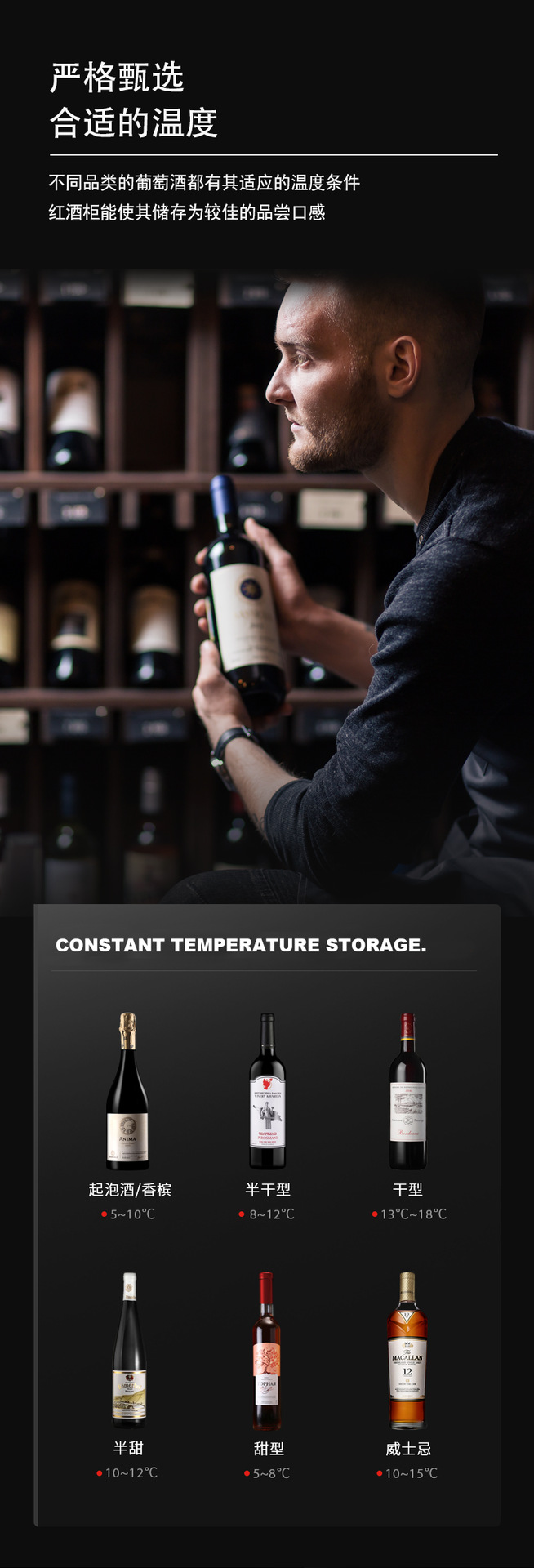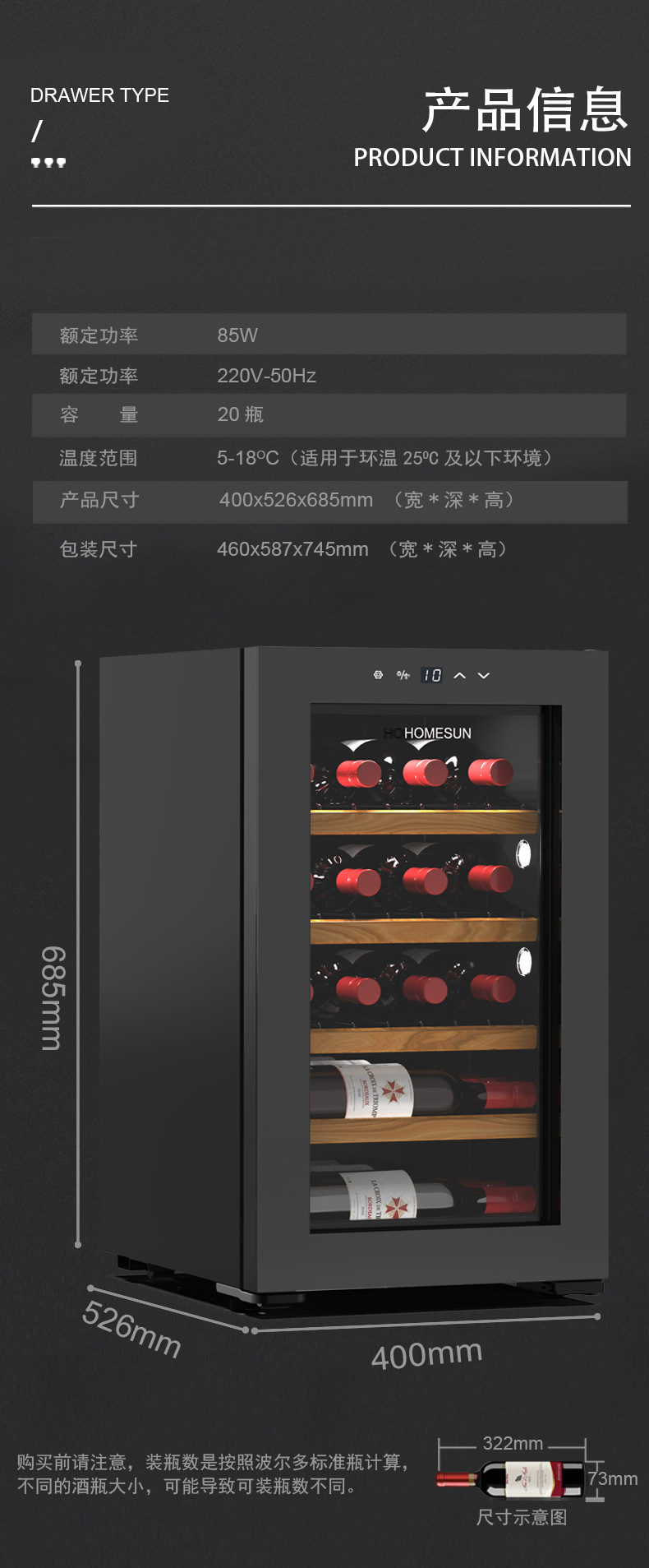 JC-43/15瓶/345X450X690MM 红酒柜; JC-53/18瓶/345X450X770MM 红酒柜; JC-65/20瓶/400X526X685MM红酒柜