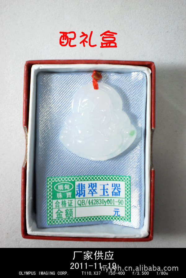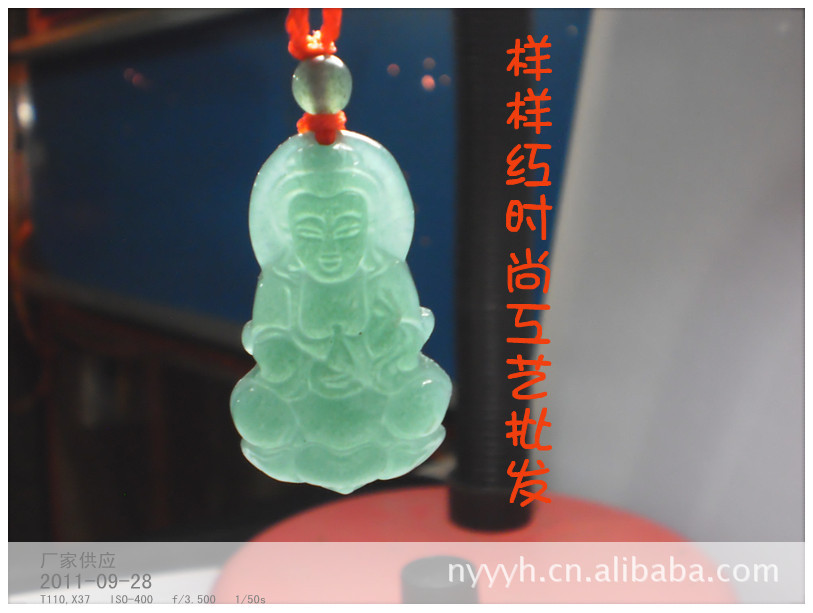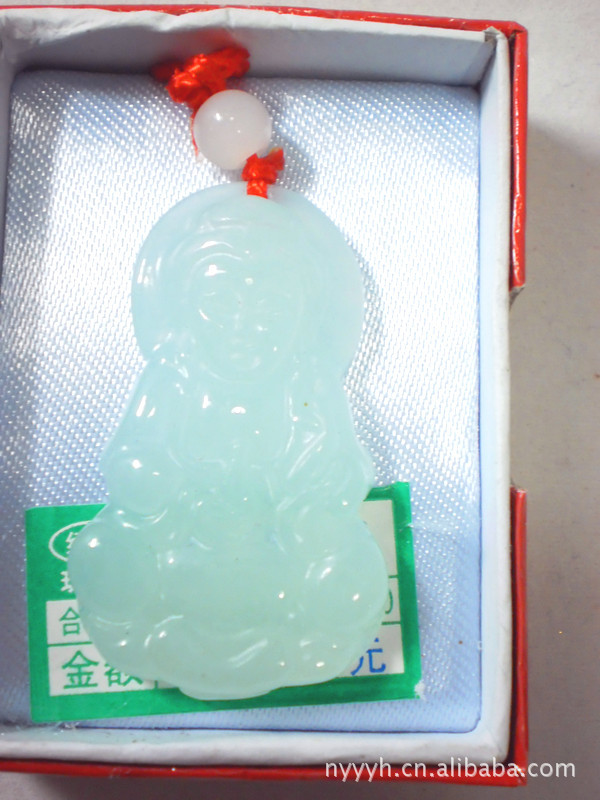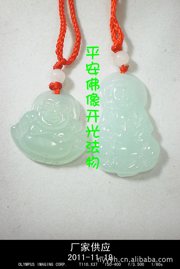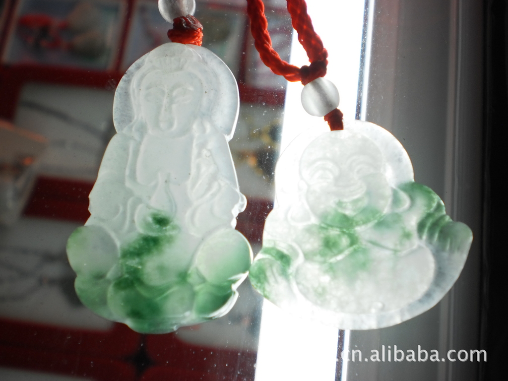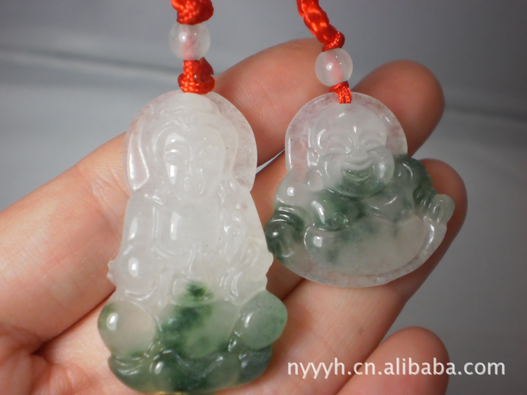 此款为B料翡翠玉,弥勒佛、观音。颜色为翠、深、浅绿色,有专门的包装盒,项绳可以拉长缩短,携带方便,款式美观大方,切莫错失良机!欢迎光临本档!http://nyyyh.cn.alibaba.com/观音(4*2.5cm);弥勒佛(3*2.8cm)男配观音女配佛!低于成本价!配礼盒的价格!需要多的盒子另外拍。