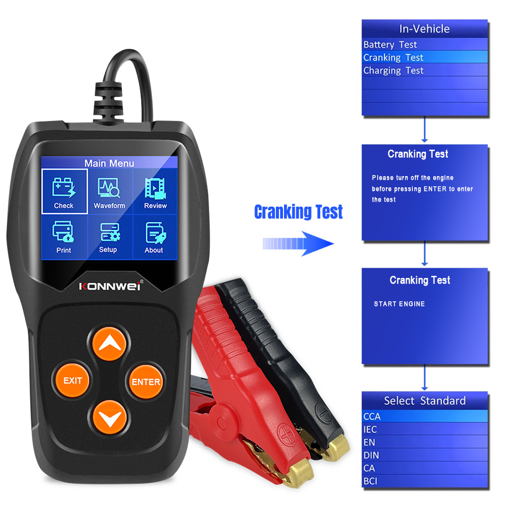 Product Description:KONNWEI KW600 is the newest battery tester upgraded from the old classic backlit tester in the market, aiming at check battery health fast and accurately, as well as check the alternator working status. It's a professional vehicle diagnostic tool for checking your battery system issues by using the graphing voltage monitoring tool, with its color screen and unique pattern design, life time free update service, the KONNWEI KW600 is a perfect battery testing tool for your job and the family.