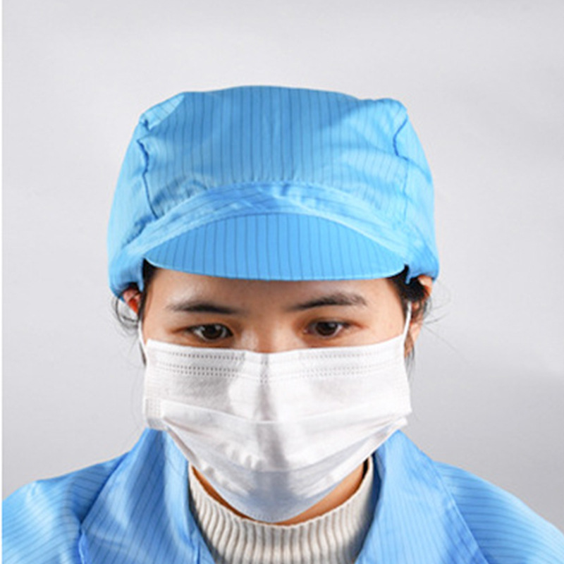 Антистатическая кепка Shuncai с синими полосами, для чистых помещений и безпыльных цехов